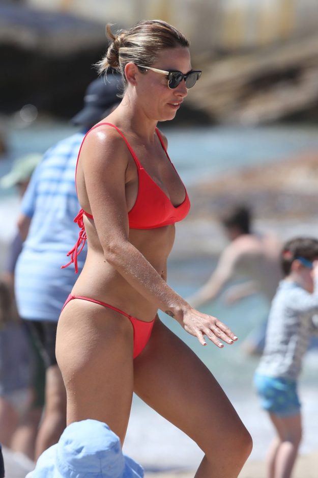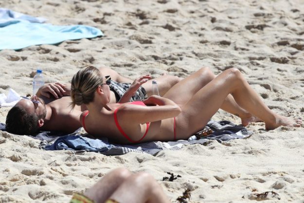 Former “Big Brother” contestant Lisa Clark was pictured enjoying a seashore outing in a purple bikini with a male mate in Sydney, 11/11/2018.