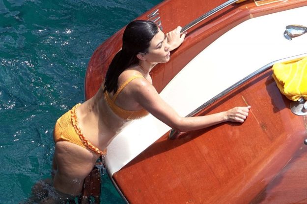 Kourtney Kardashian and her boyfriend Younes Bendjima was seen on vacation in Capri, 06/22/2018. The 39-yr-old truth Tv set star relished the sunny day in an orange bikini.