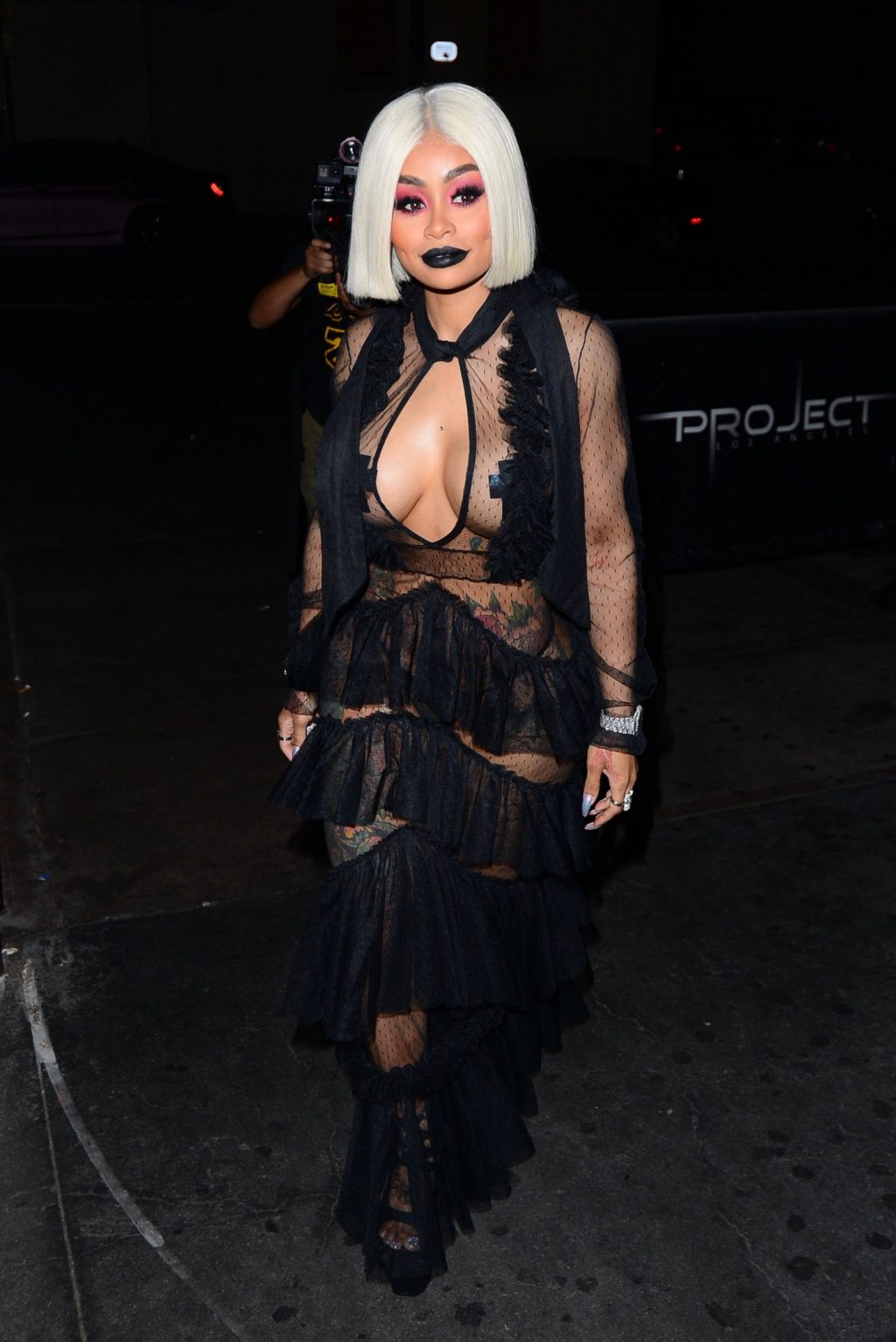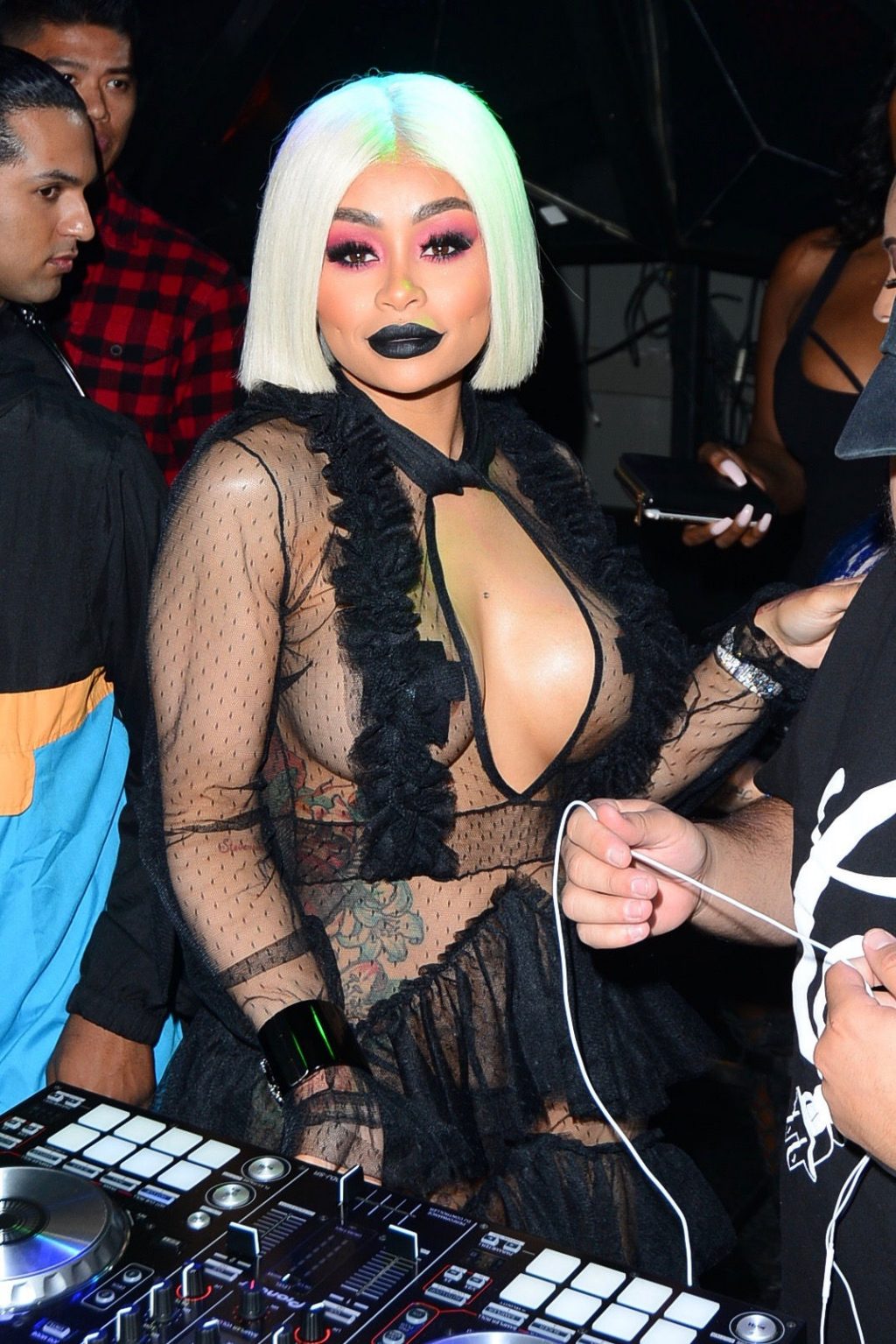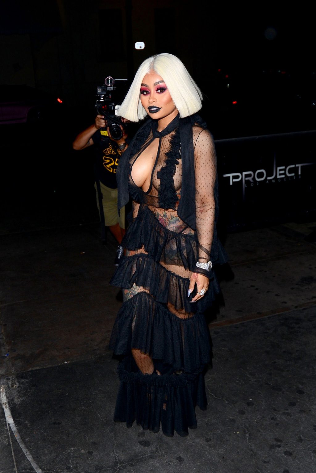 Blac Chyna (30) wears a quite revealing lace costume as she is viewed arriving at Challenge Club in Los Angele, 08/15/2018.