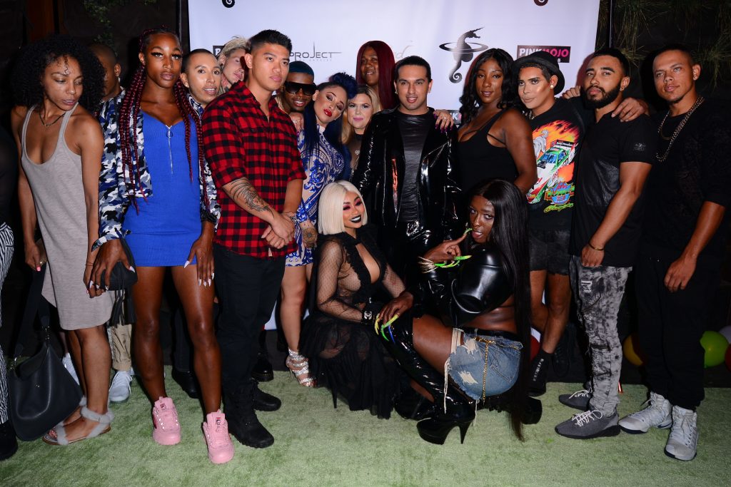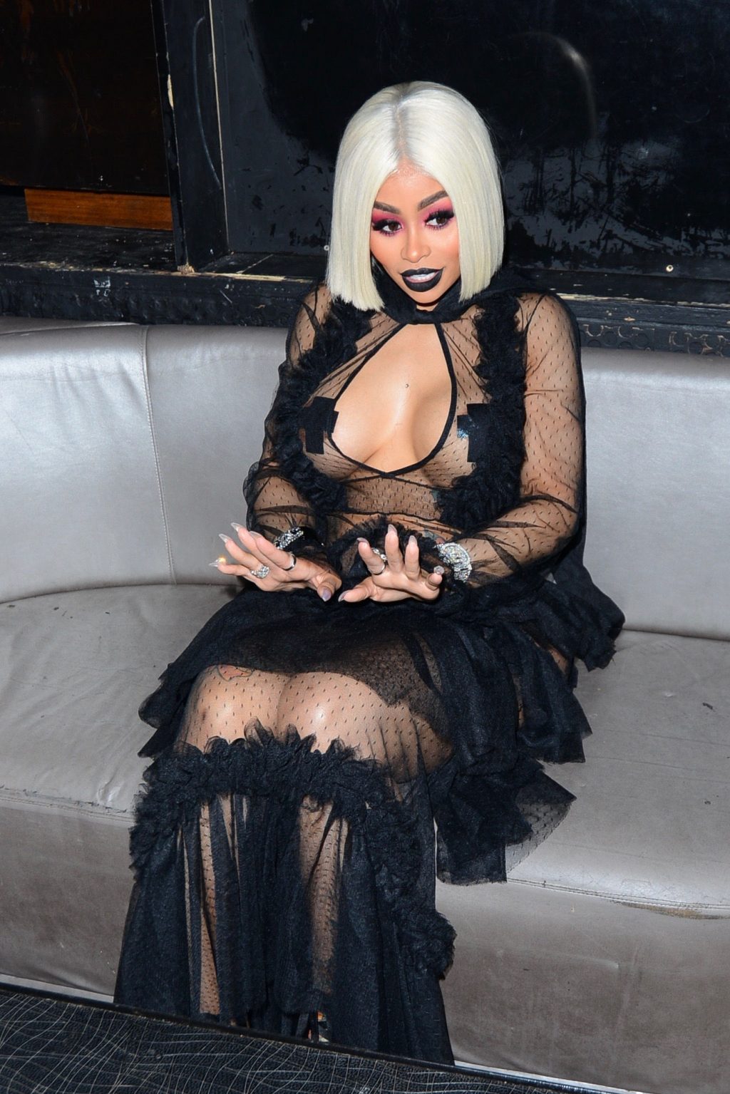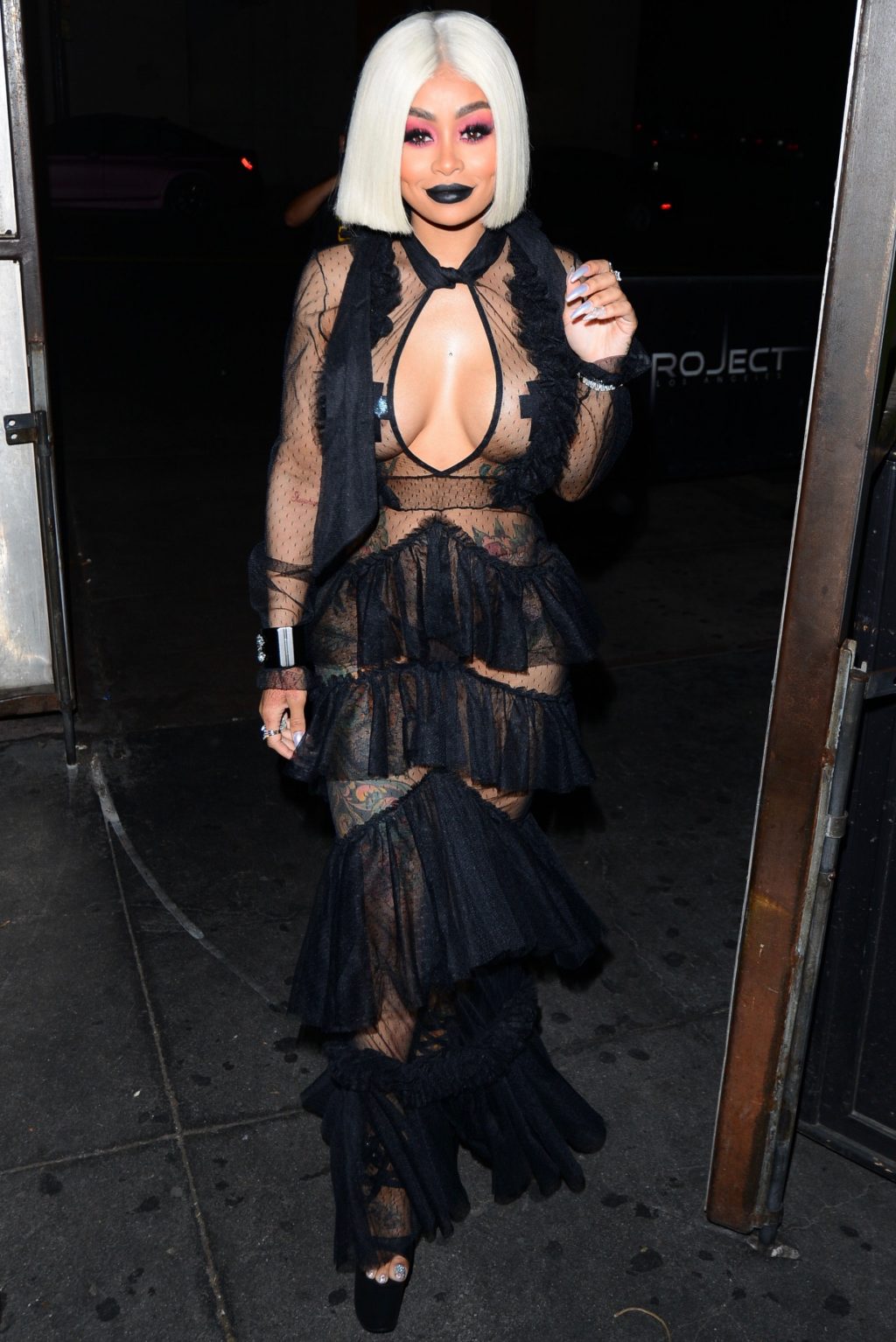Blac Chyna (30) wears a quite revealing lace costume as she is viewed arriving at Challenge Club in Los Angele, 08/15/2018.