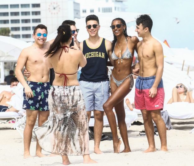 Products Lais Ribeiro and Jasmine Tookes chill out and sunbath in tiny bikinis at the seaside in Miami, 02/20/2018.