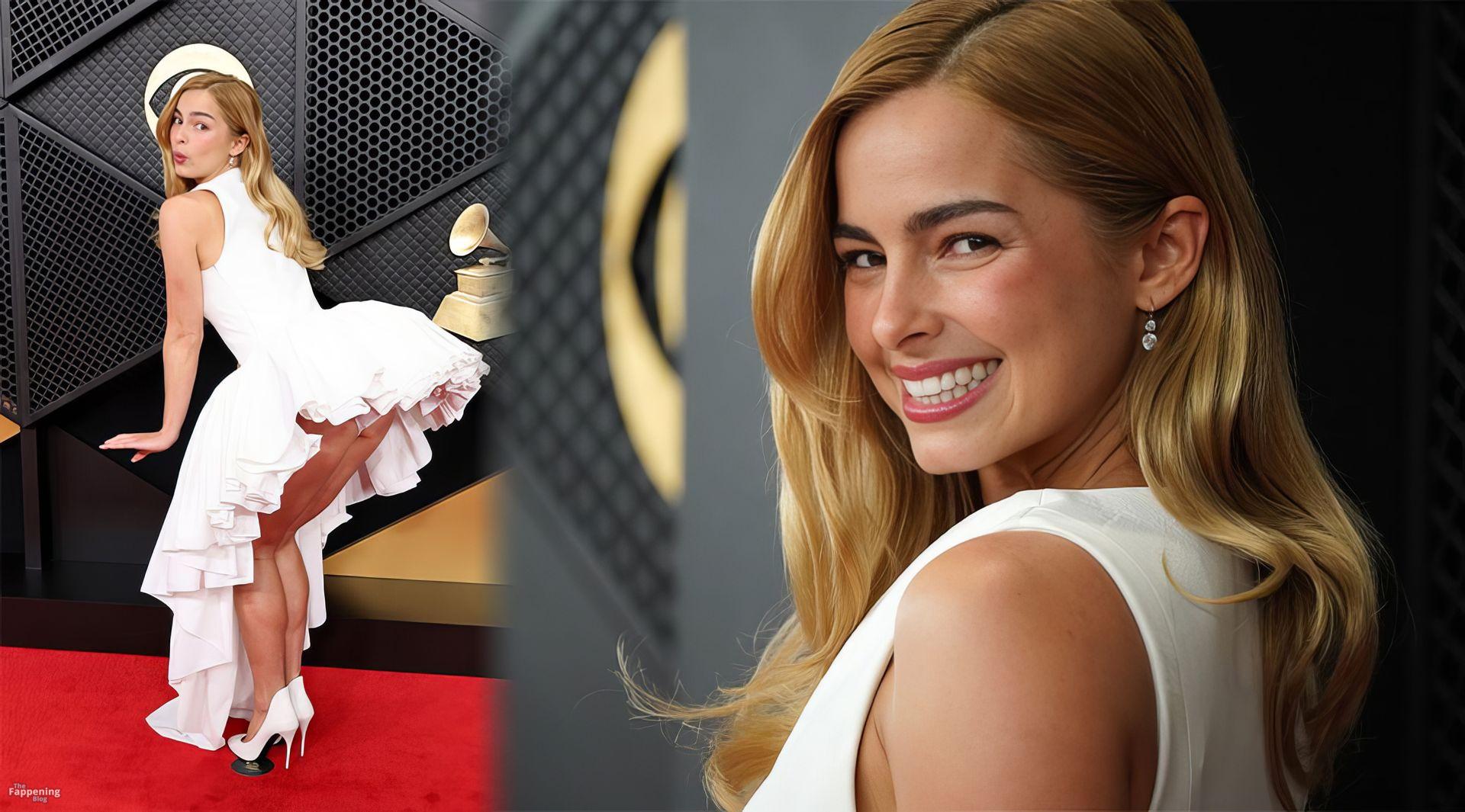 TikTok star and singer Addison Rae displays her butt and white panties, wearin’ a white dress at the 68th Annual Grammy Awards at Crypto.com Arena in Los Angeles,
