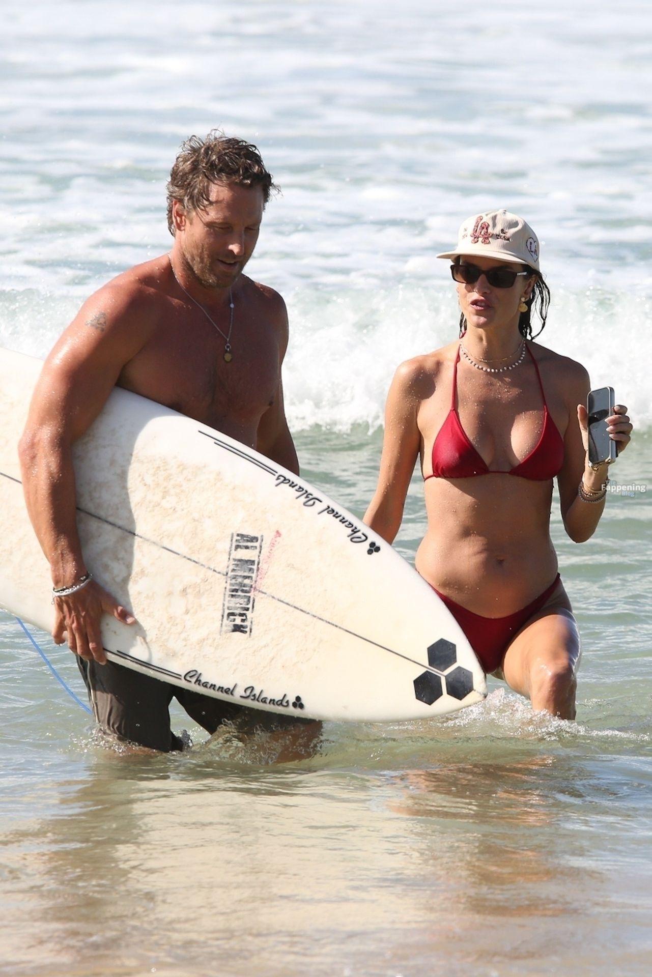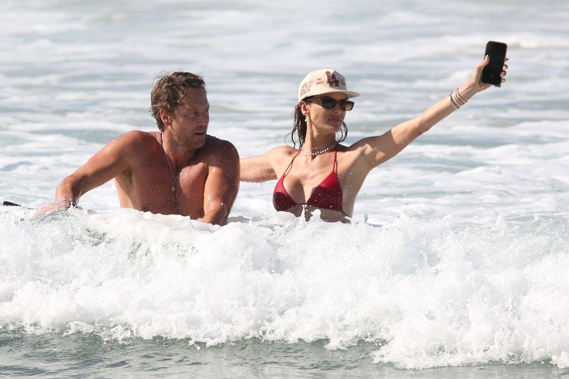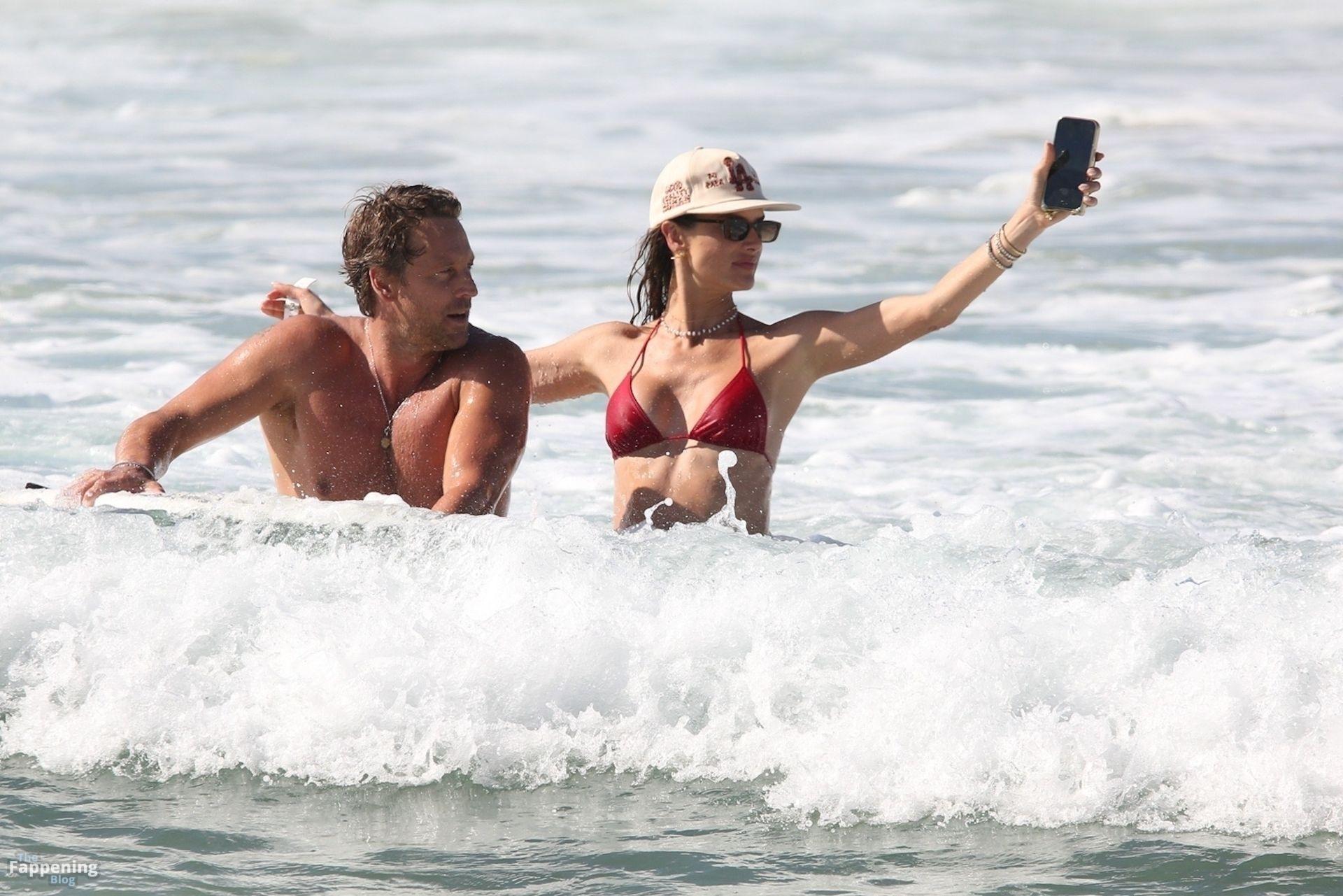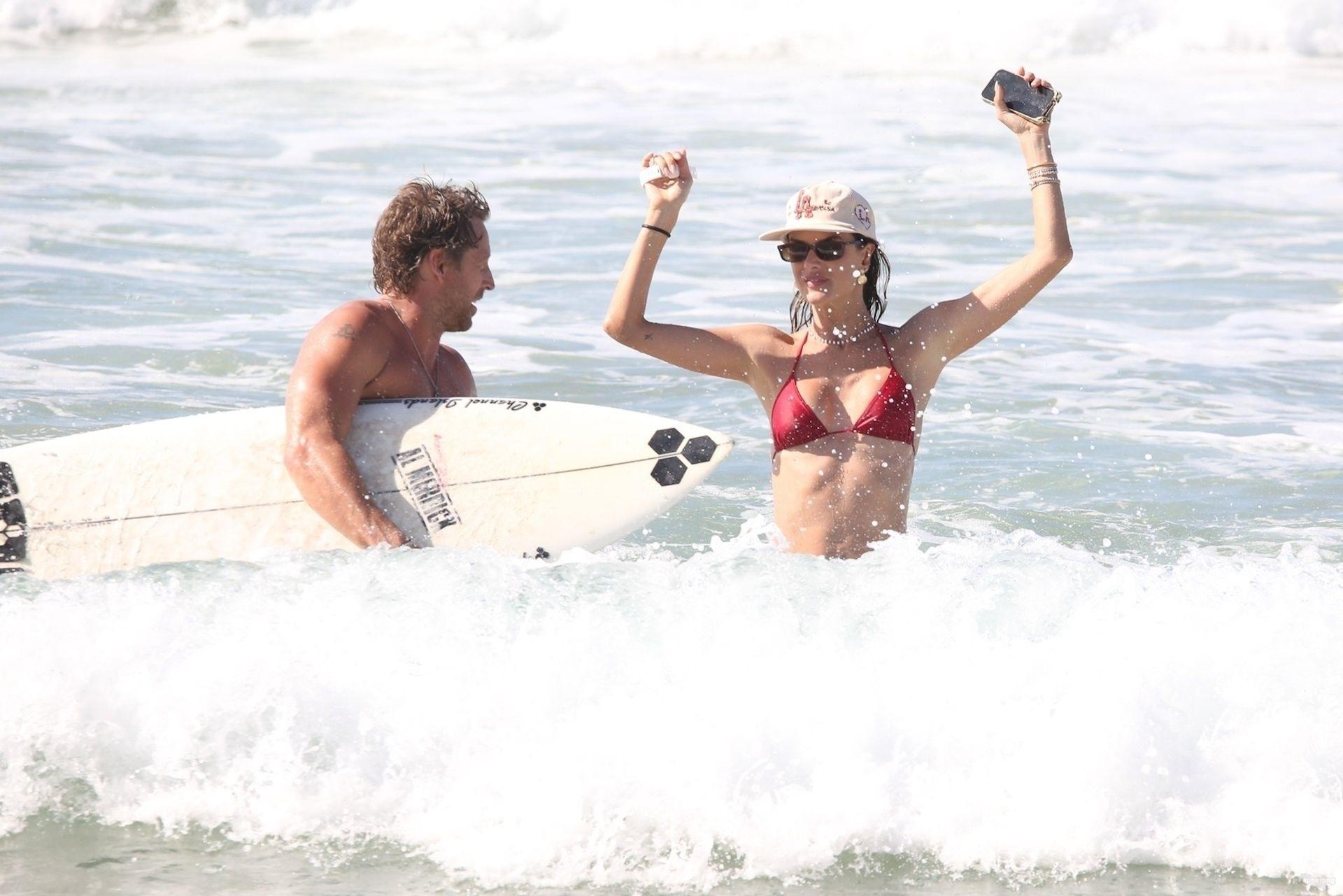 Alessandra Ambrosio stunned in a red bikini as she enjoyed a sun-soaked beach day with boyfriend Buck Palmer on Conceição Beach. The couple looked relaxed and playful while splashing in the waves, embracing island life in Brazil’s tropical paradise.
