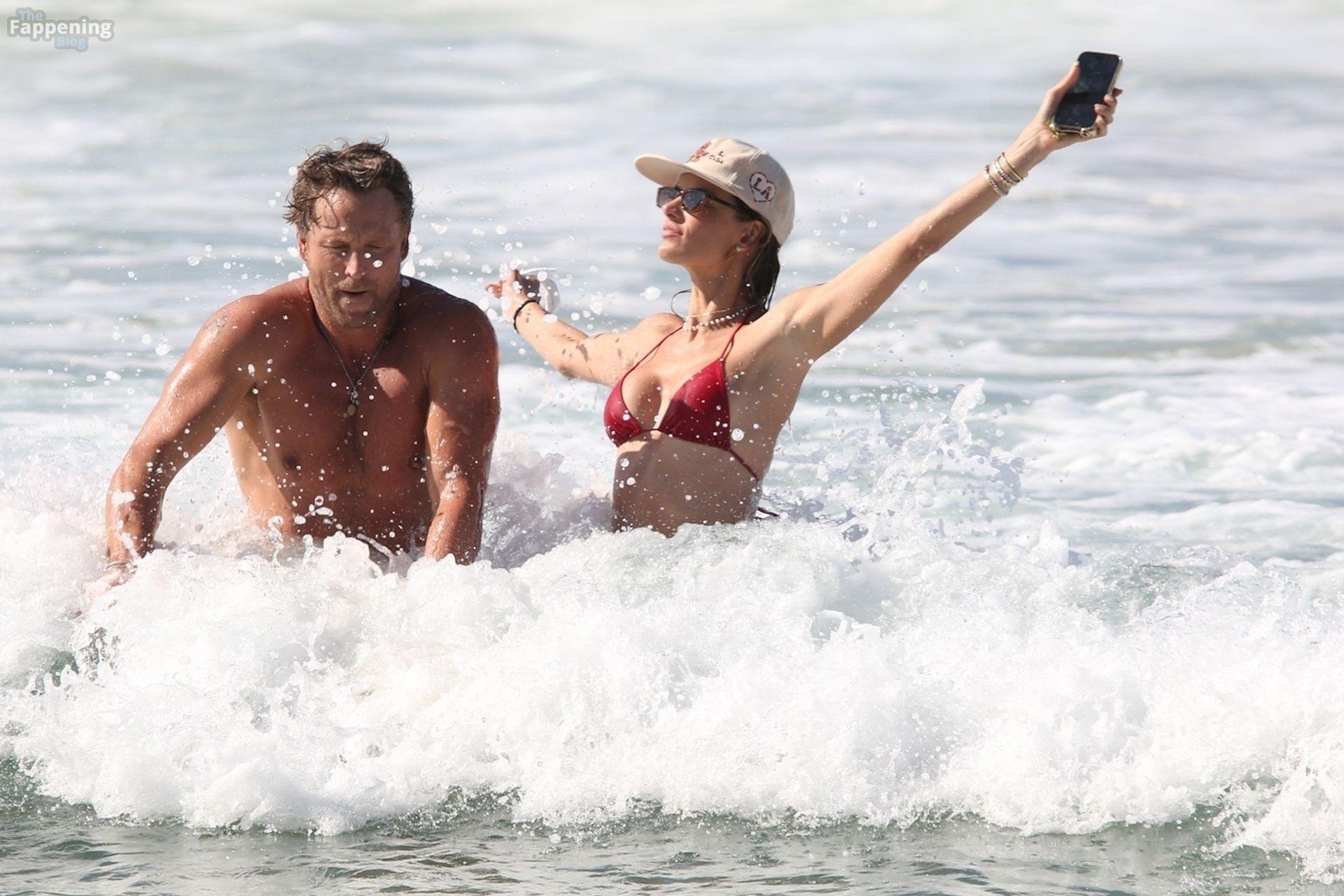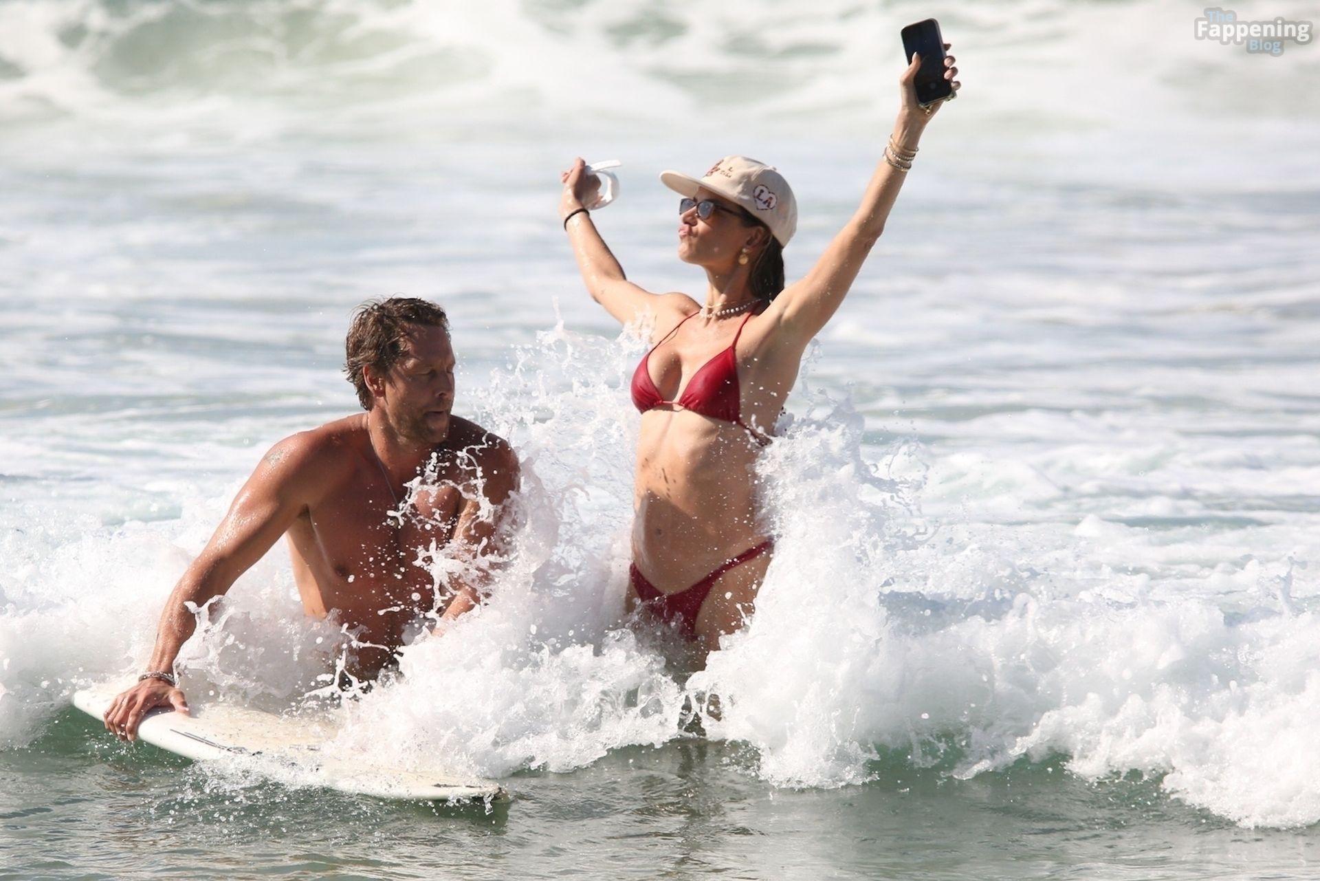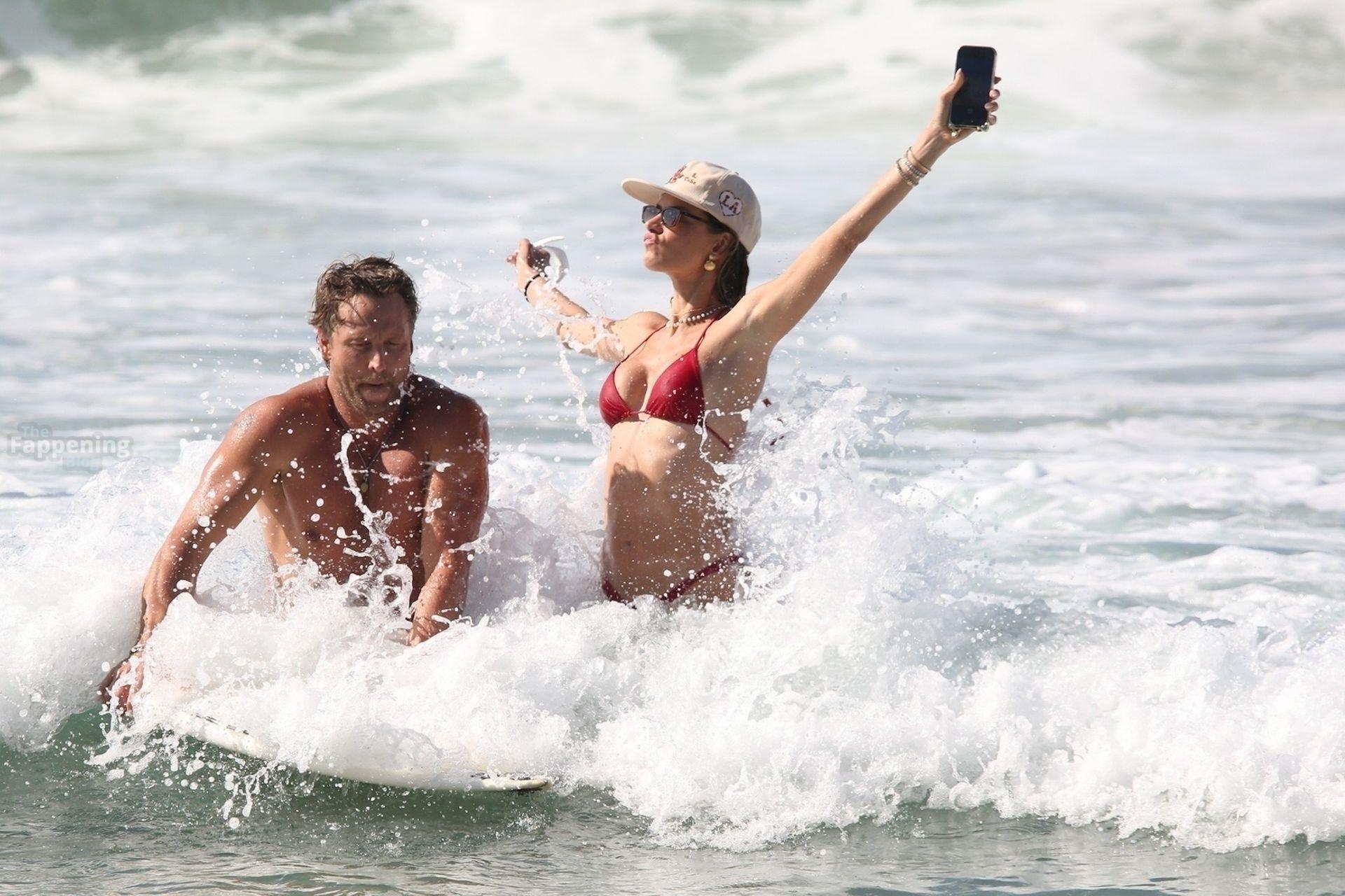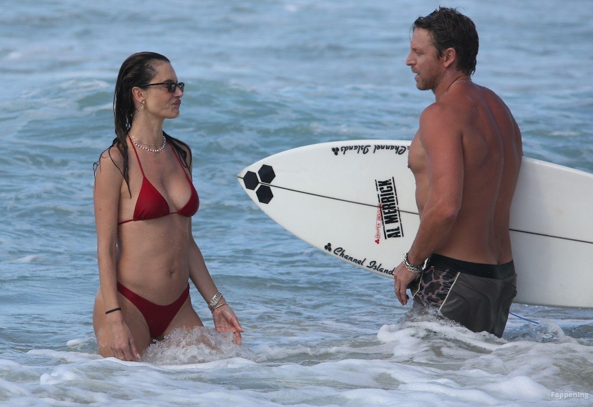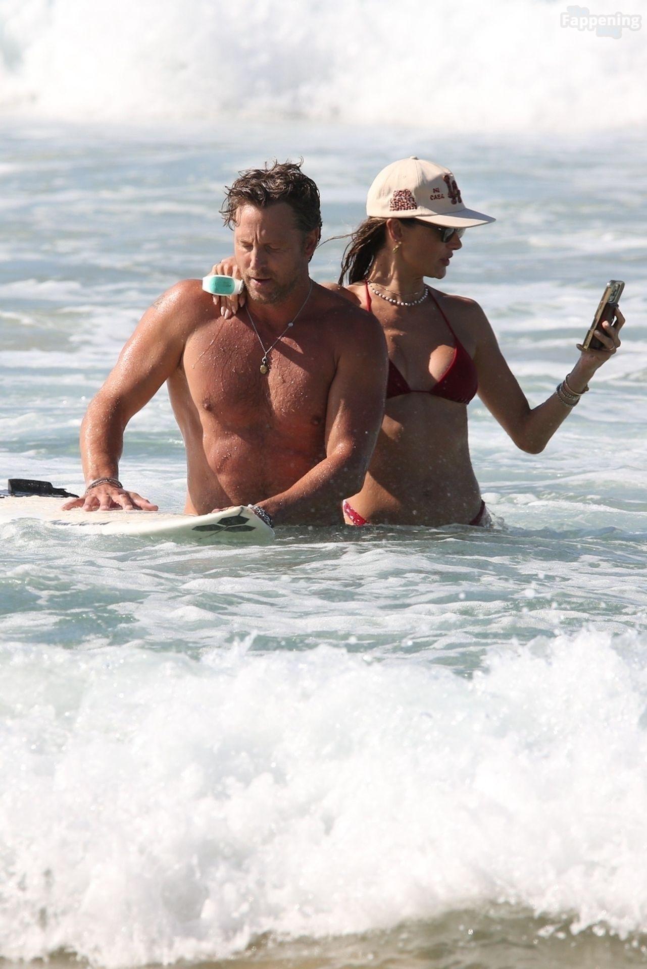 Alessandra Ambrosio stunned in a red bikini as she enjoyed a sun-soaked beach day with boyfriend Buck Palmer on Conceição Beach. The couple looked relaxed and playful while splashing in the waves, embracing island life in Brazil’s tropical paradise.