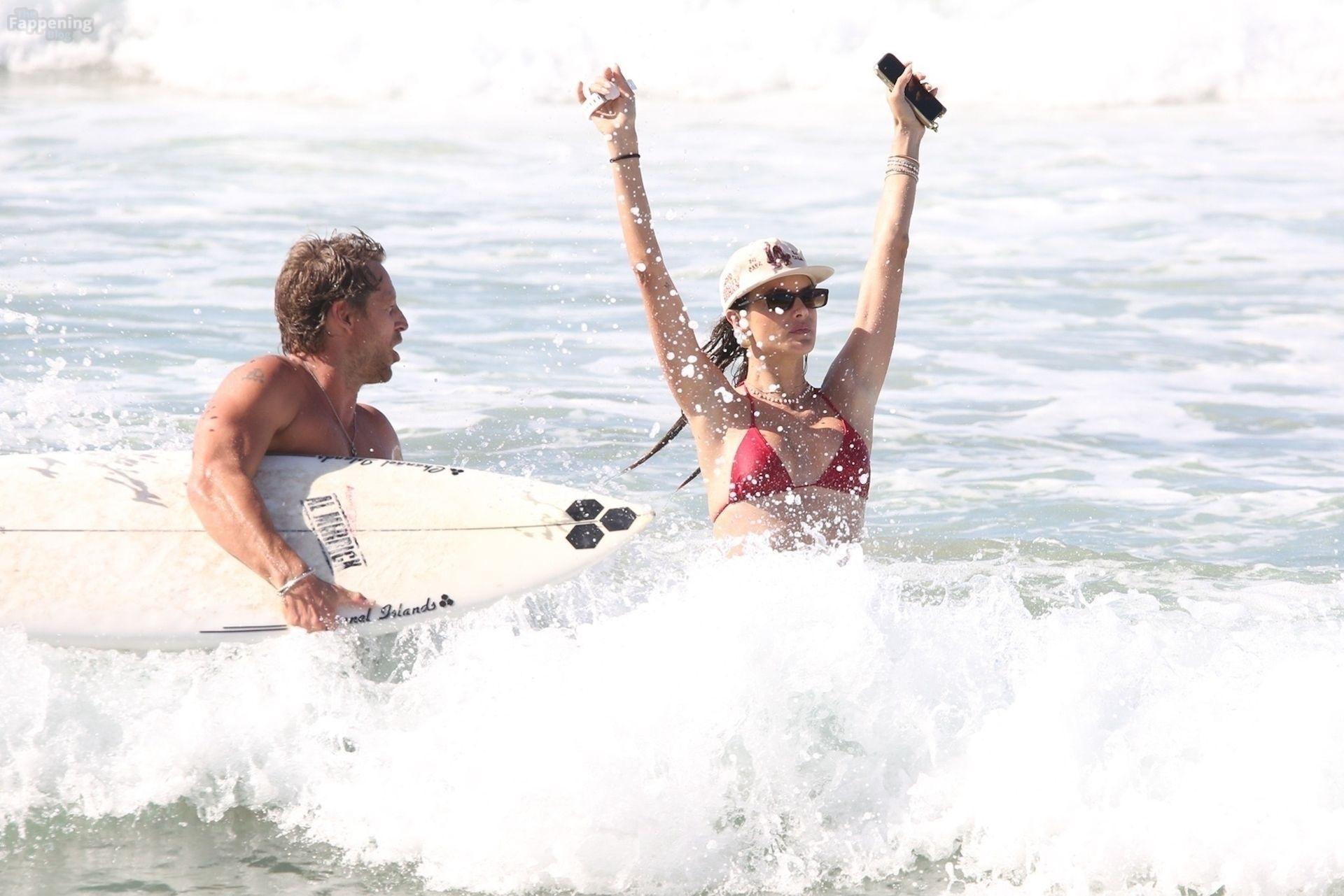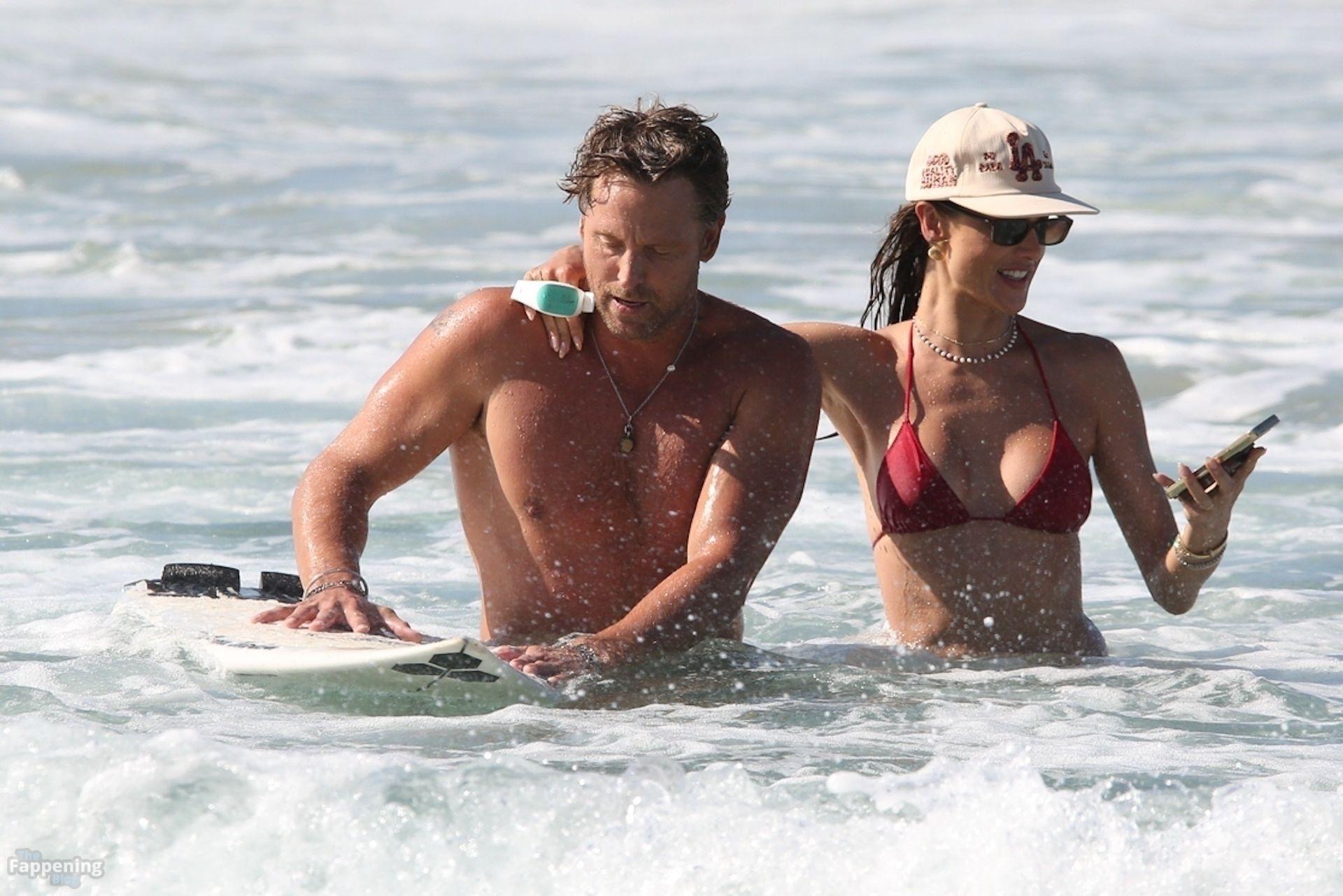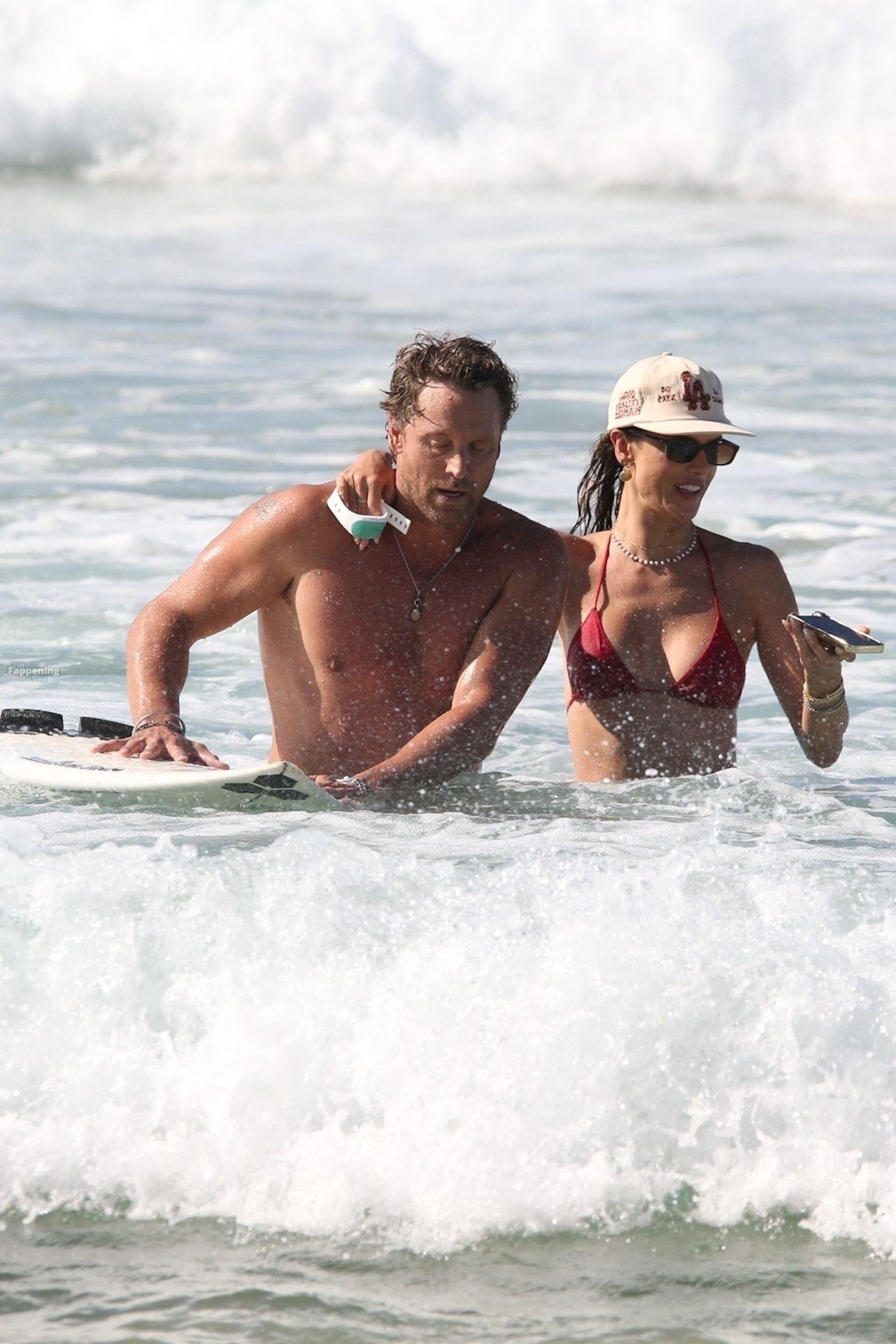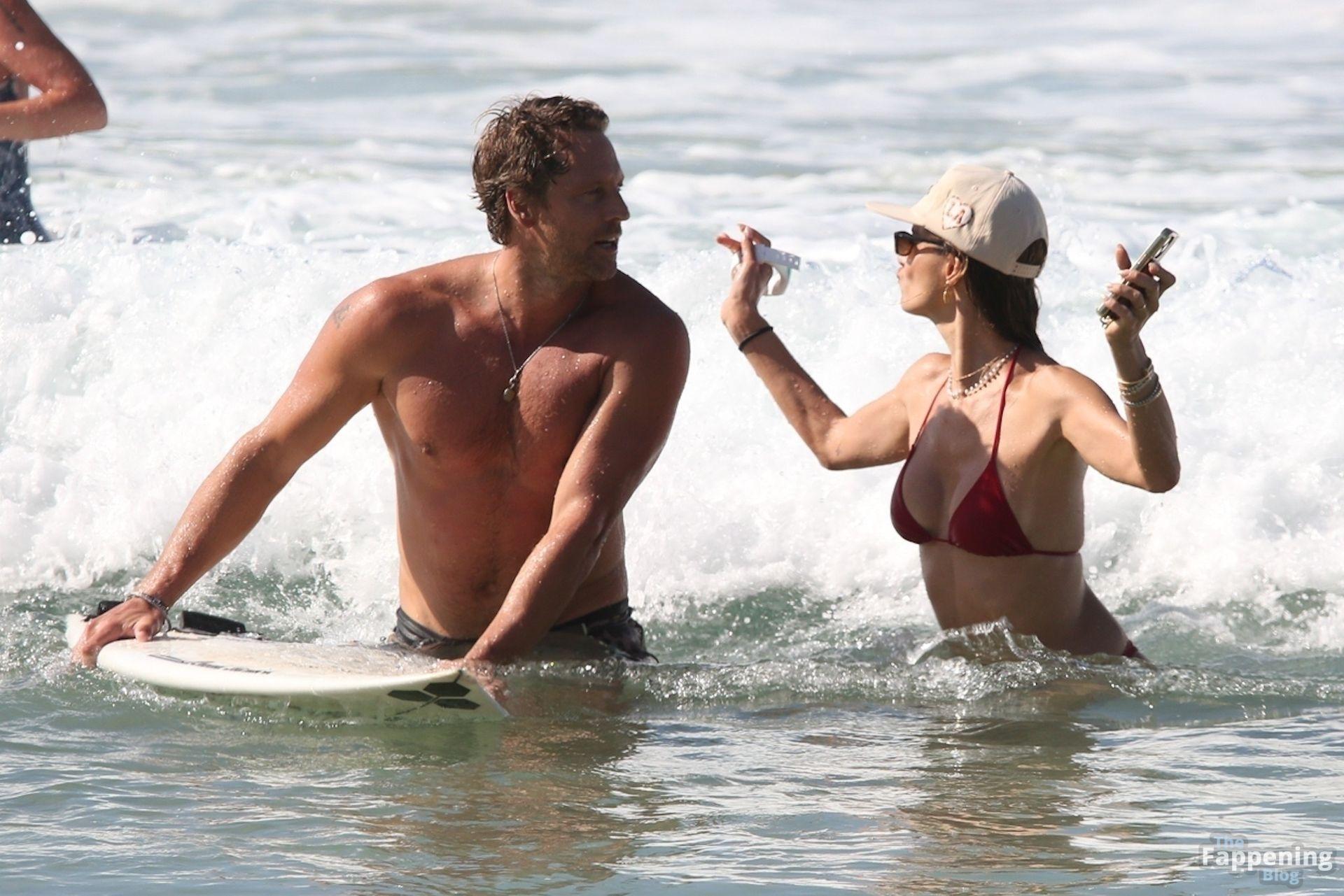 Alessandra Ambrosio stunned in a red bikini as she enjoyed a sun-soaked beach day with boyfriend Buck Palmer on Conceição Beach. The couple looked relaxed and playful while splashing in the waves, embracing island life in Brazil’s tropical paradise.