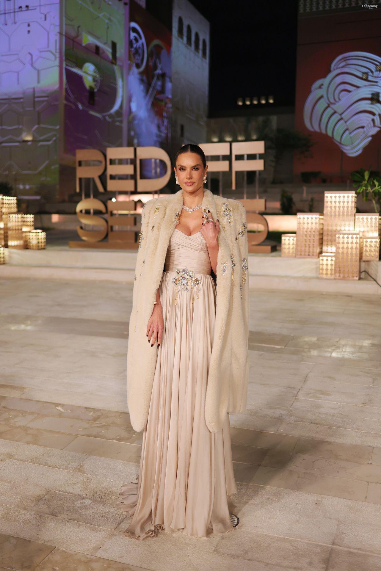 Alessandra Ambrosio looks sexy at the Red Sea Film Festival closing night in Jeddah, Saudi Arabia with a strapless gown.
