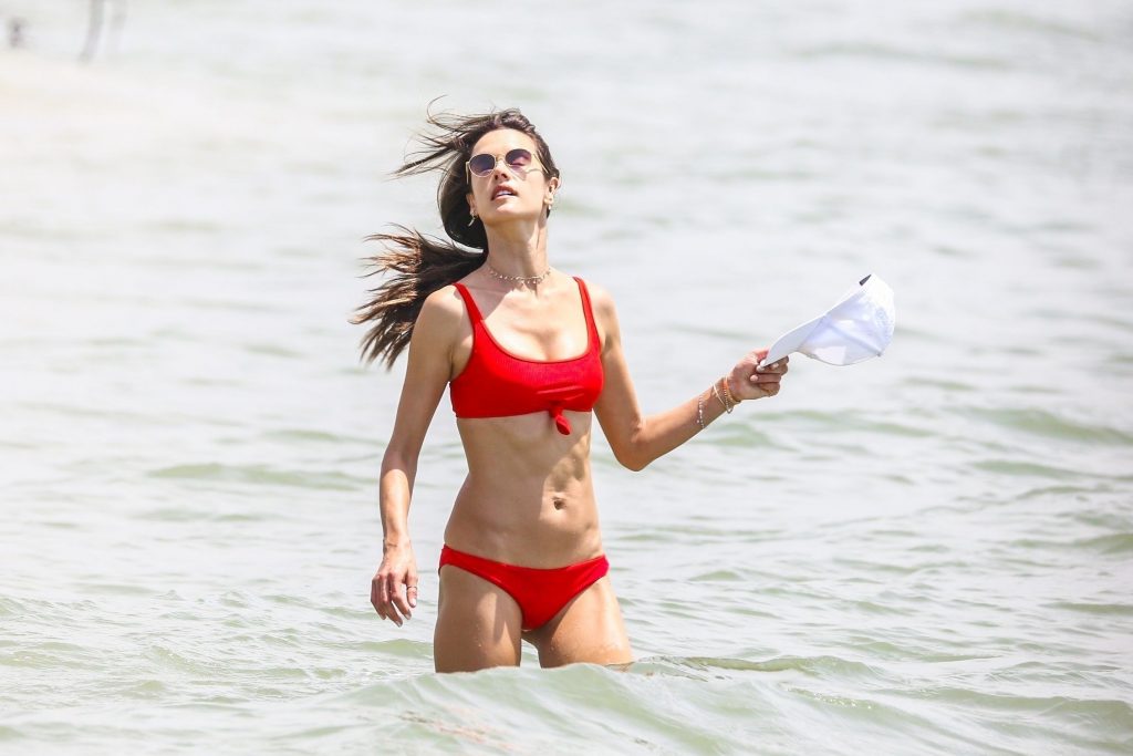 Supermodel Alessandra Ambrosio (36) was spotted exhibiting off her famed figure in a purple bikini on the seaside in Florianopolis, Brazil, 12/17/2017.