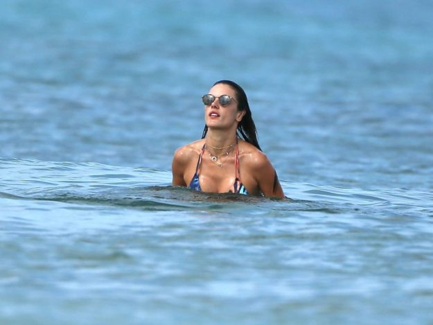 Alessandra Ambrosio (36) enjoys a working day on the beach in Ibiza, 07/08/2017. Alessandra Ambrosio is a Brazilian supermodel, actress.