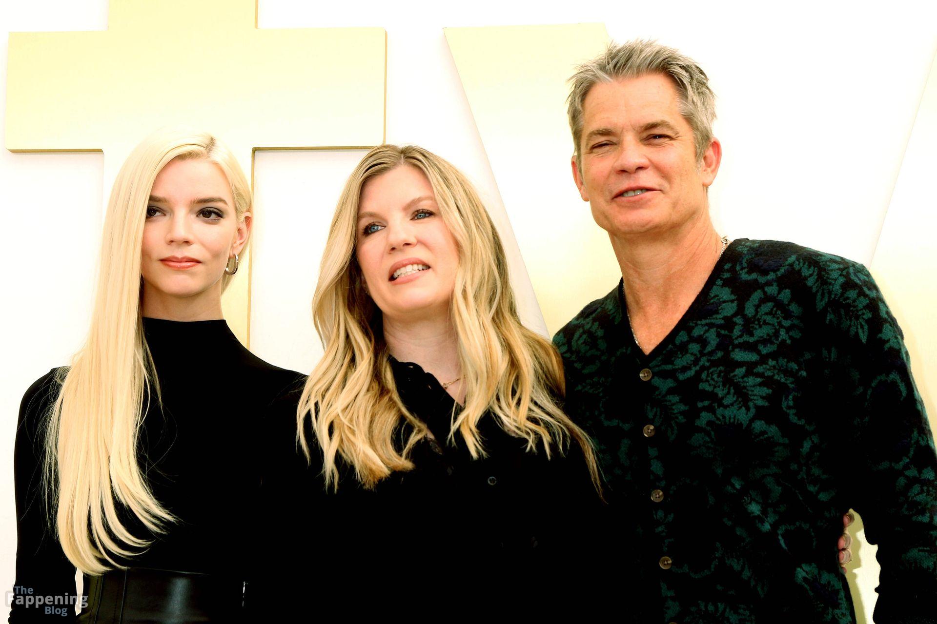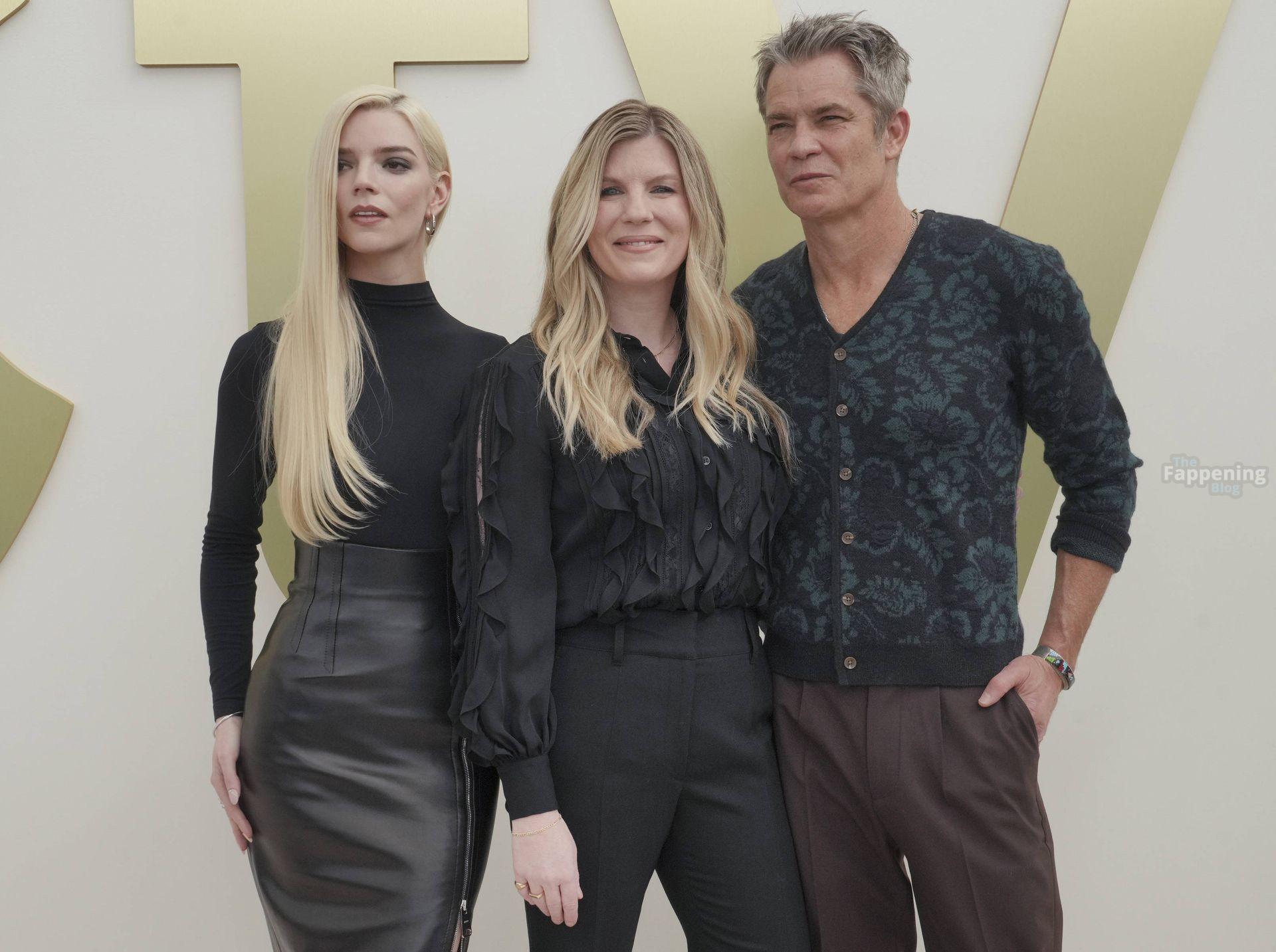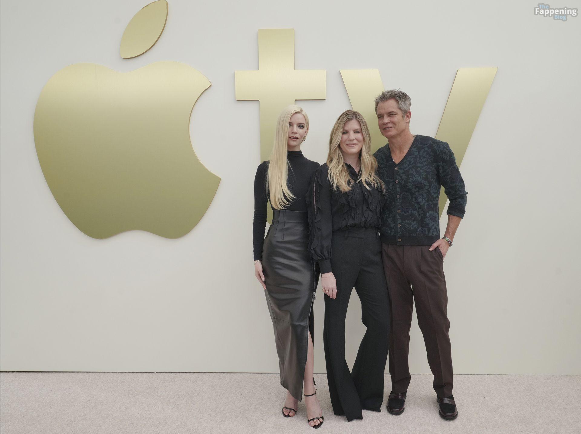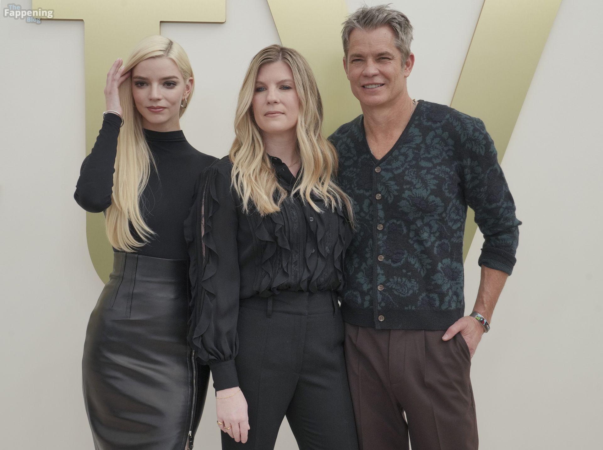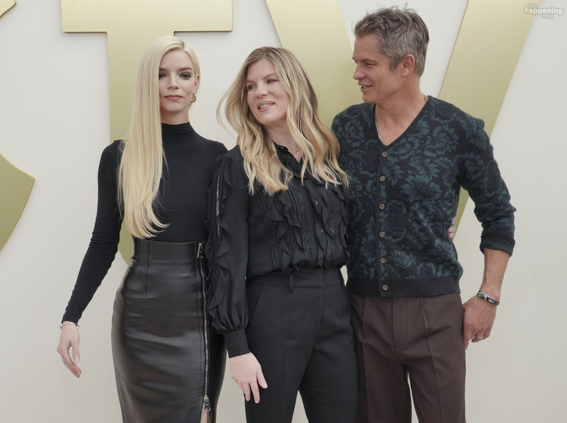 Anya Taylor-Joy attends the Apple TV Press Day held at Barker Hangar in Los Angeles. The actress stuns on the red carpet, wearin’ a black bodysuit and zipper leather skirt.