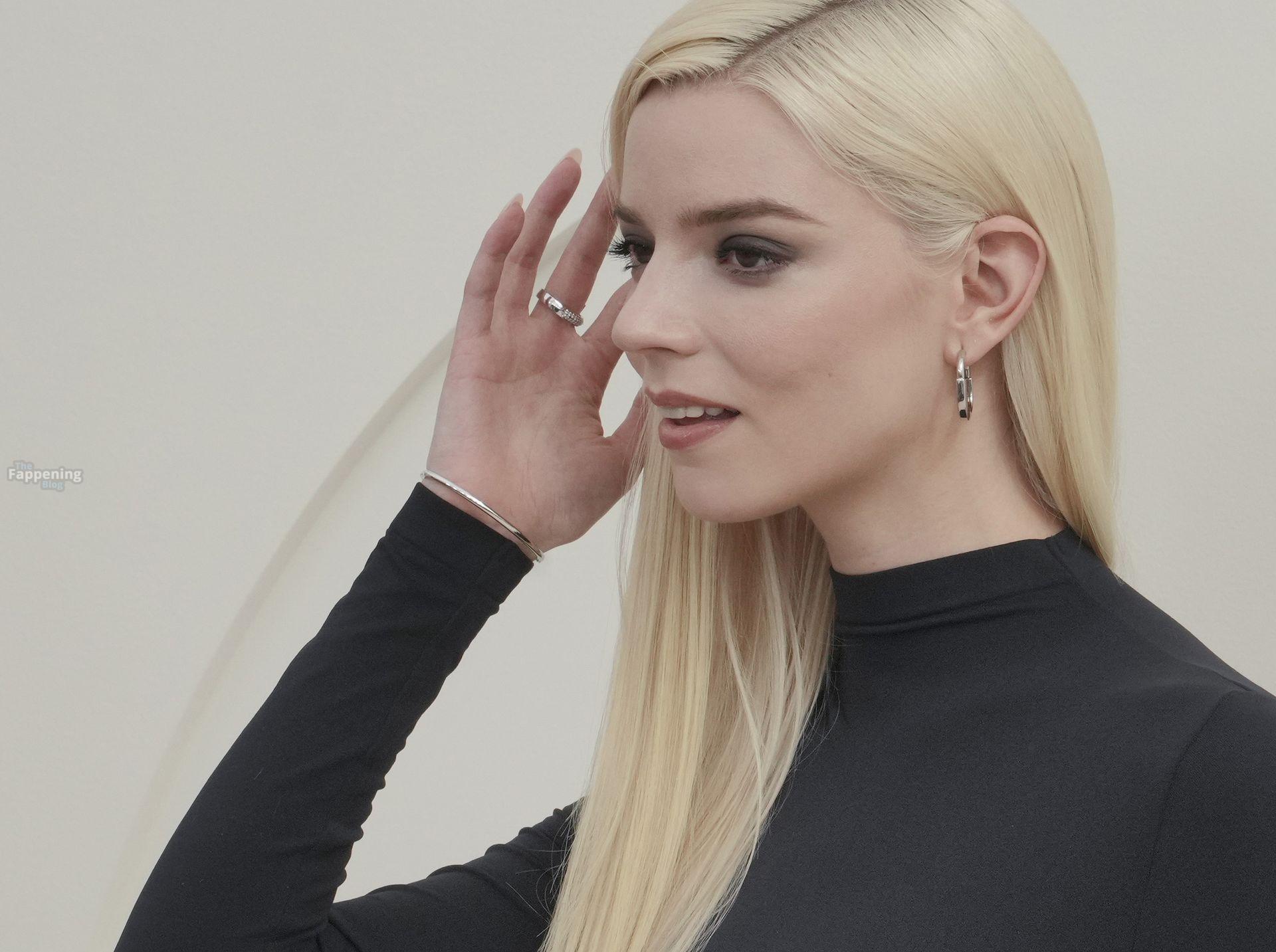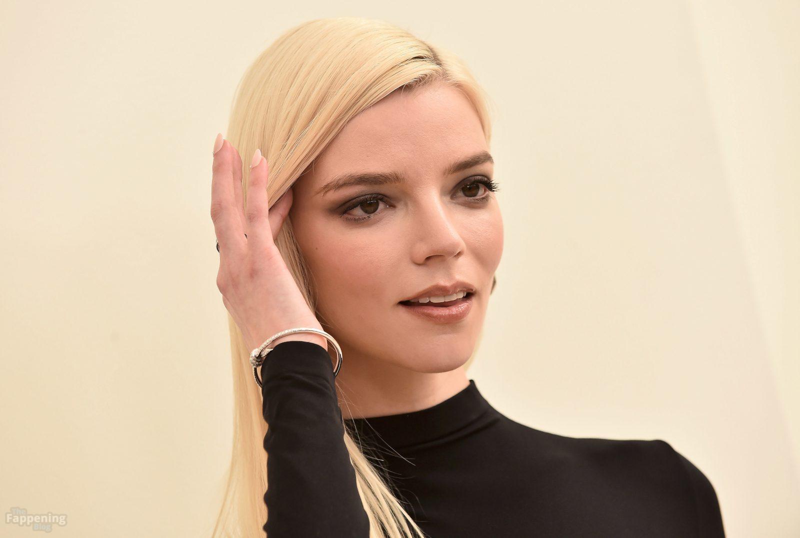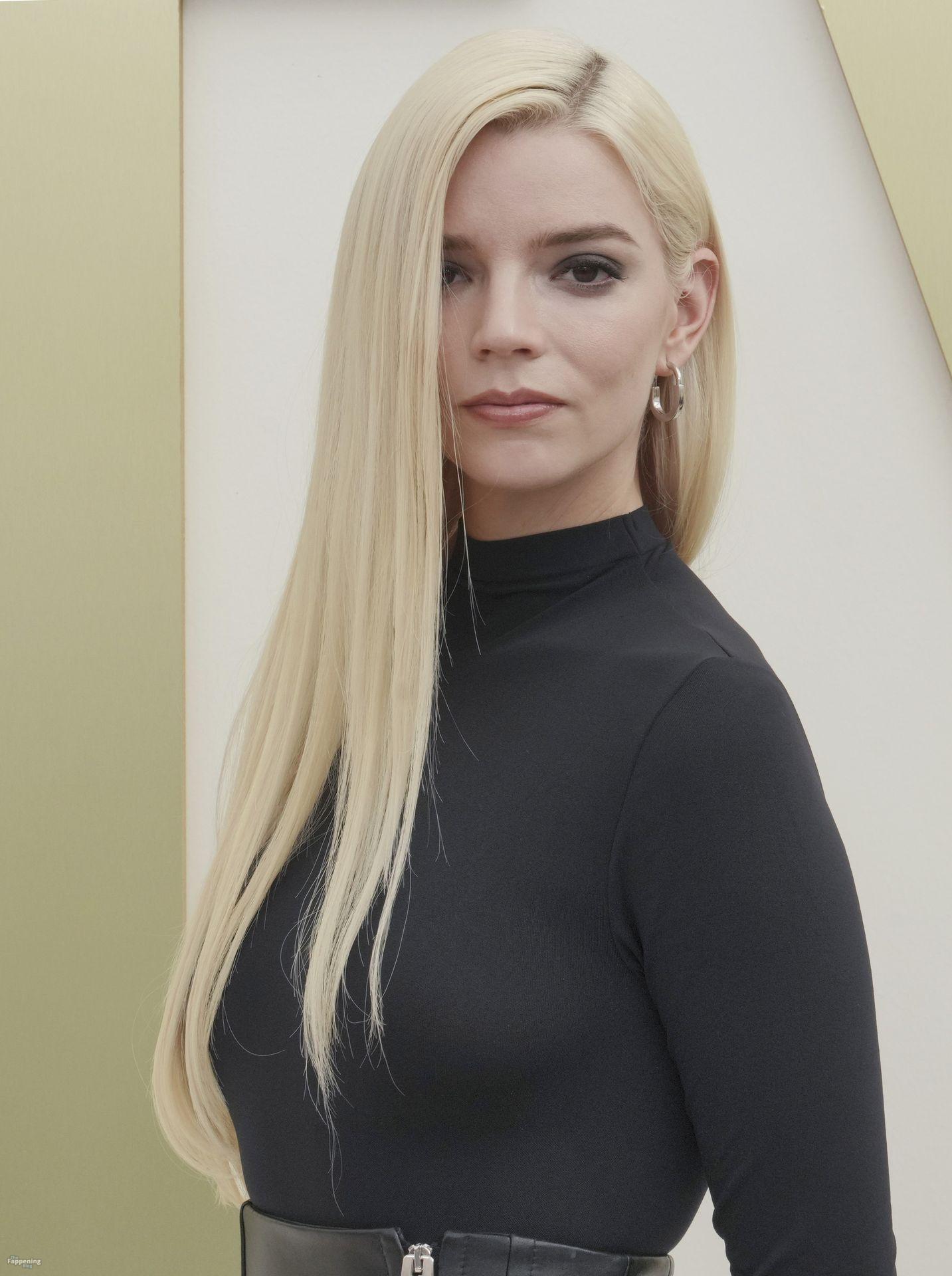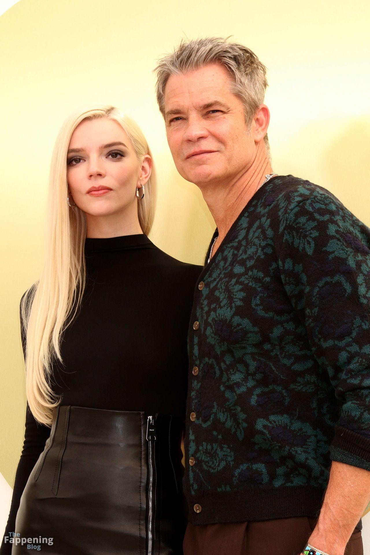 Anya Taylor-Joy attends the Apple TV Press Day held at Barker Hangar in Los Angeles. The actress stuns on the red carpet, wearin’ a black bodysuit and zipper leather skirt.