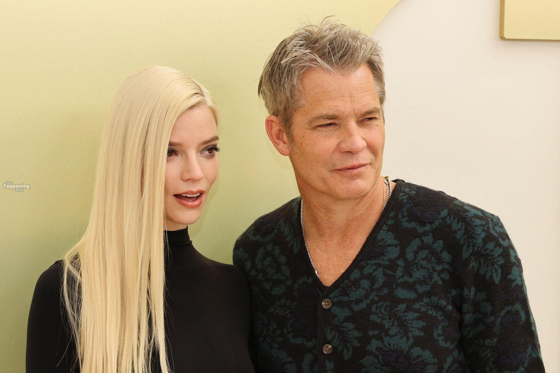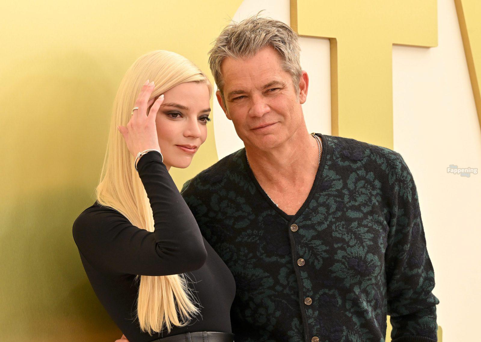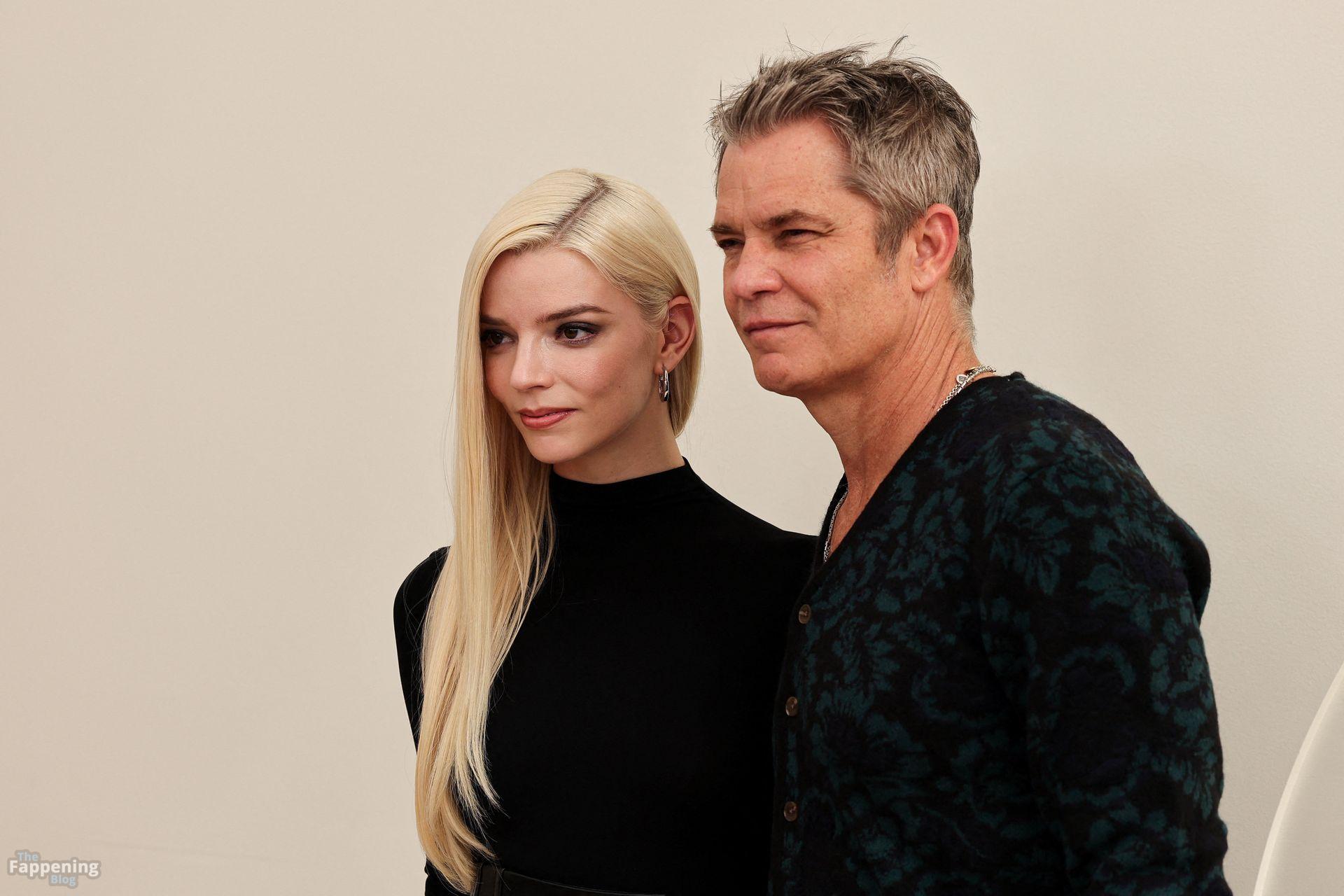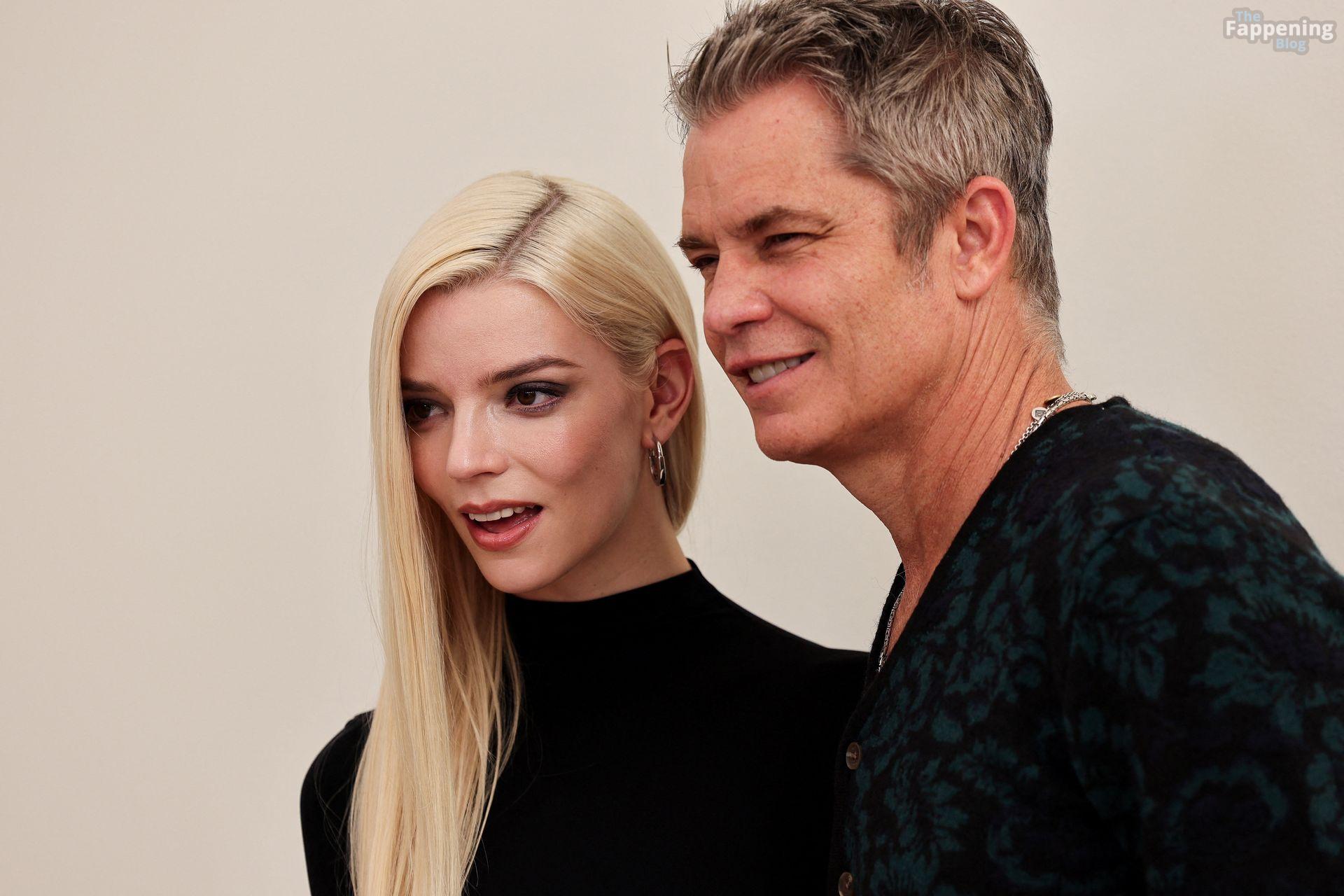 Anya Taylor-Joy attends the Apple TV Press Day held at Barker Hangar in Los Angeles. The actress stuns on the red carpet, wearin’ a black bodysuit and zipper leather skirt.