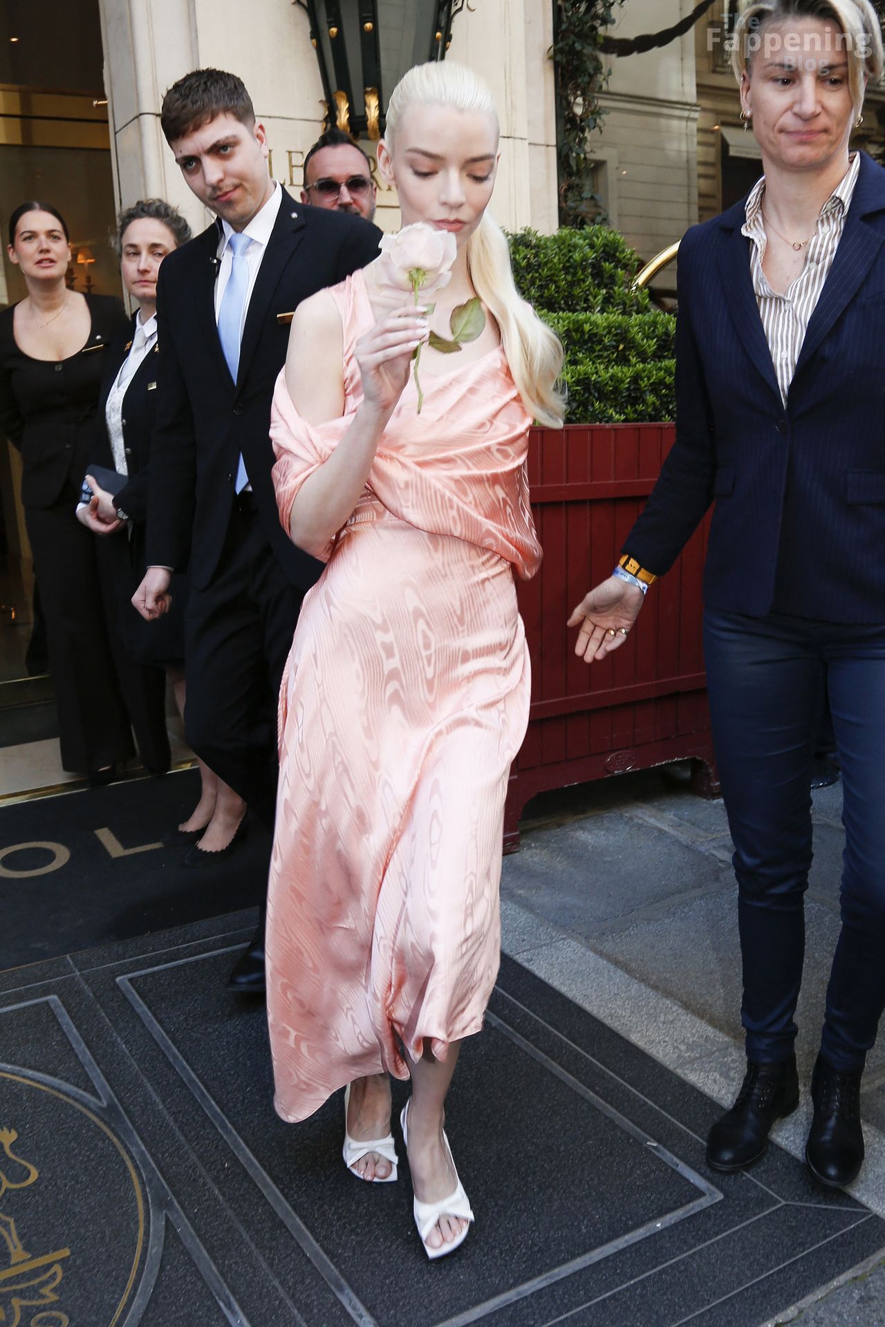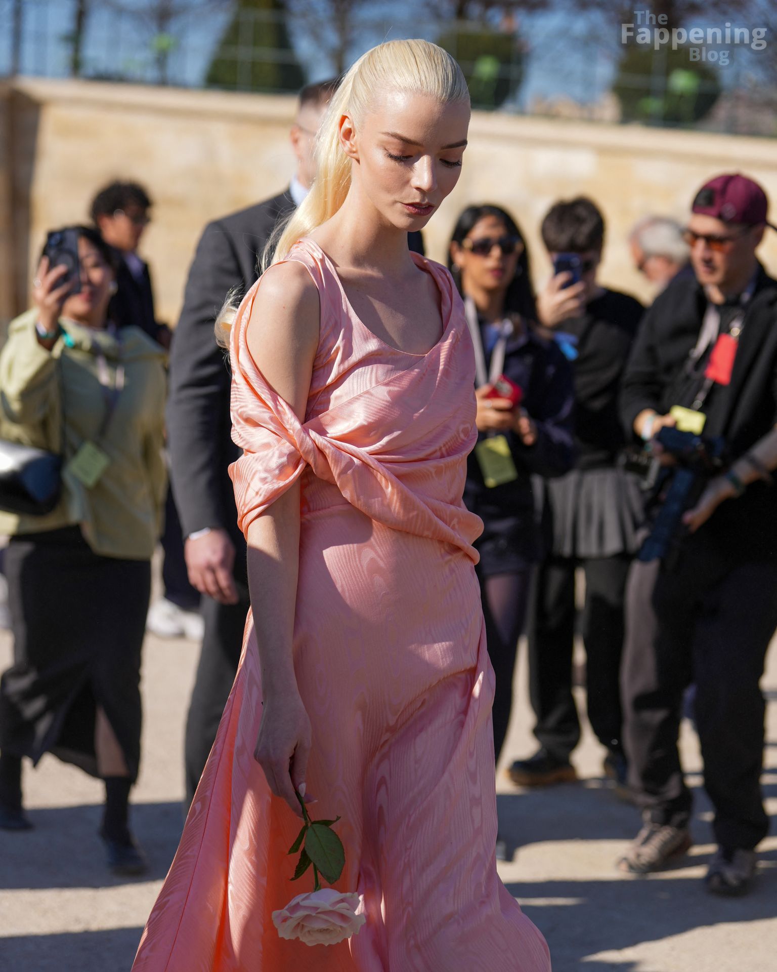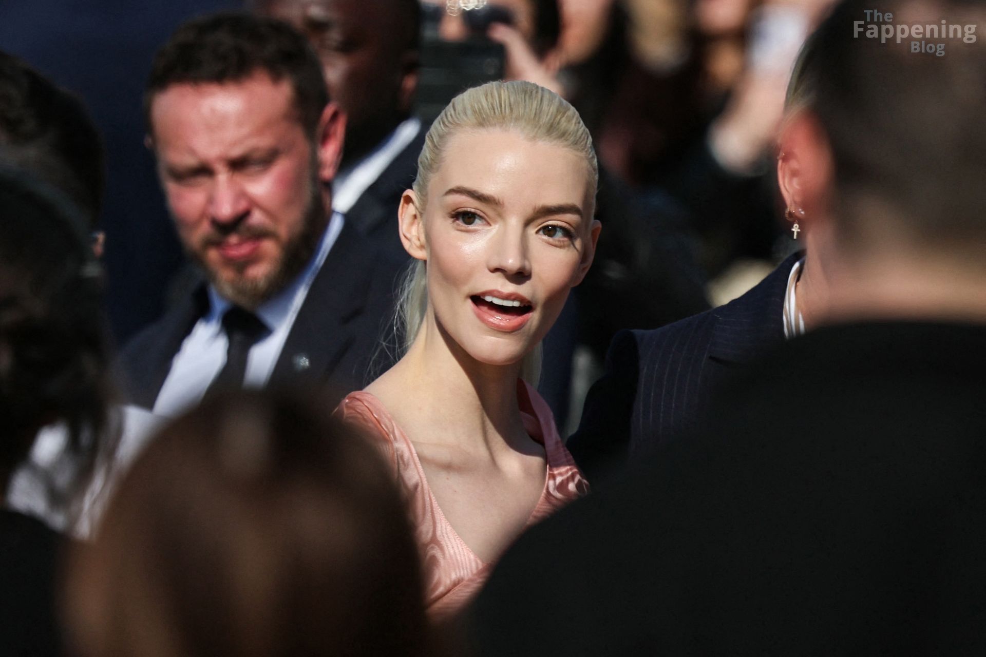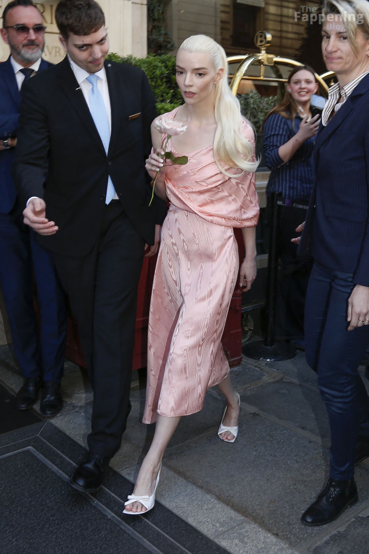 Anya Taylor-Joy looked dainty and feminine in pink as she was seen leaving her hotel to attend the Dior show during Fashion Week. The actress embraced soft, romantic glamour, perfectly complementing the elegance of the highly anticipated runway event.