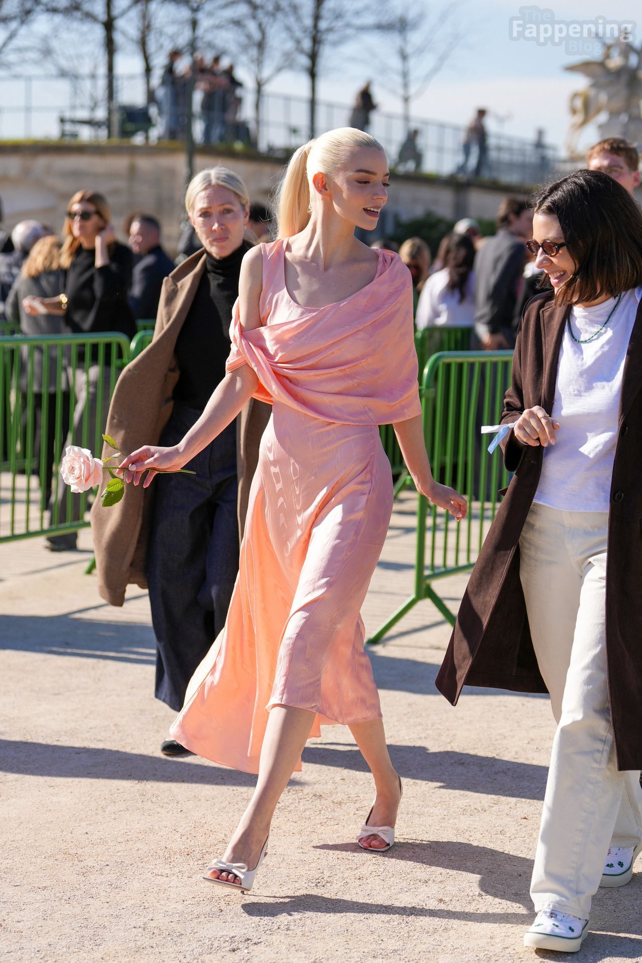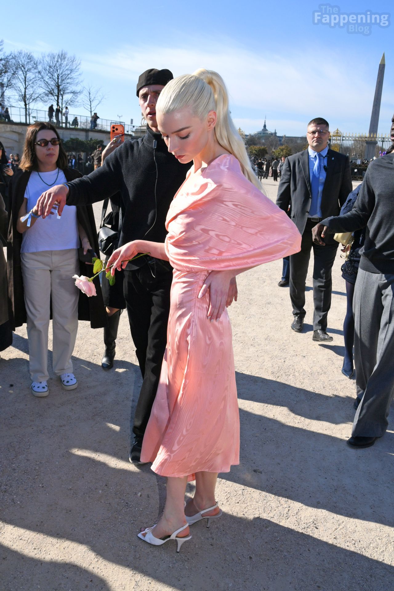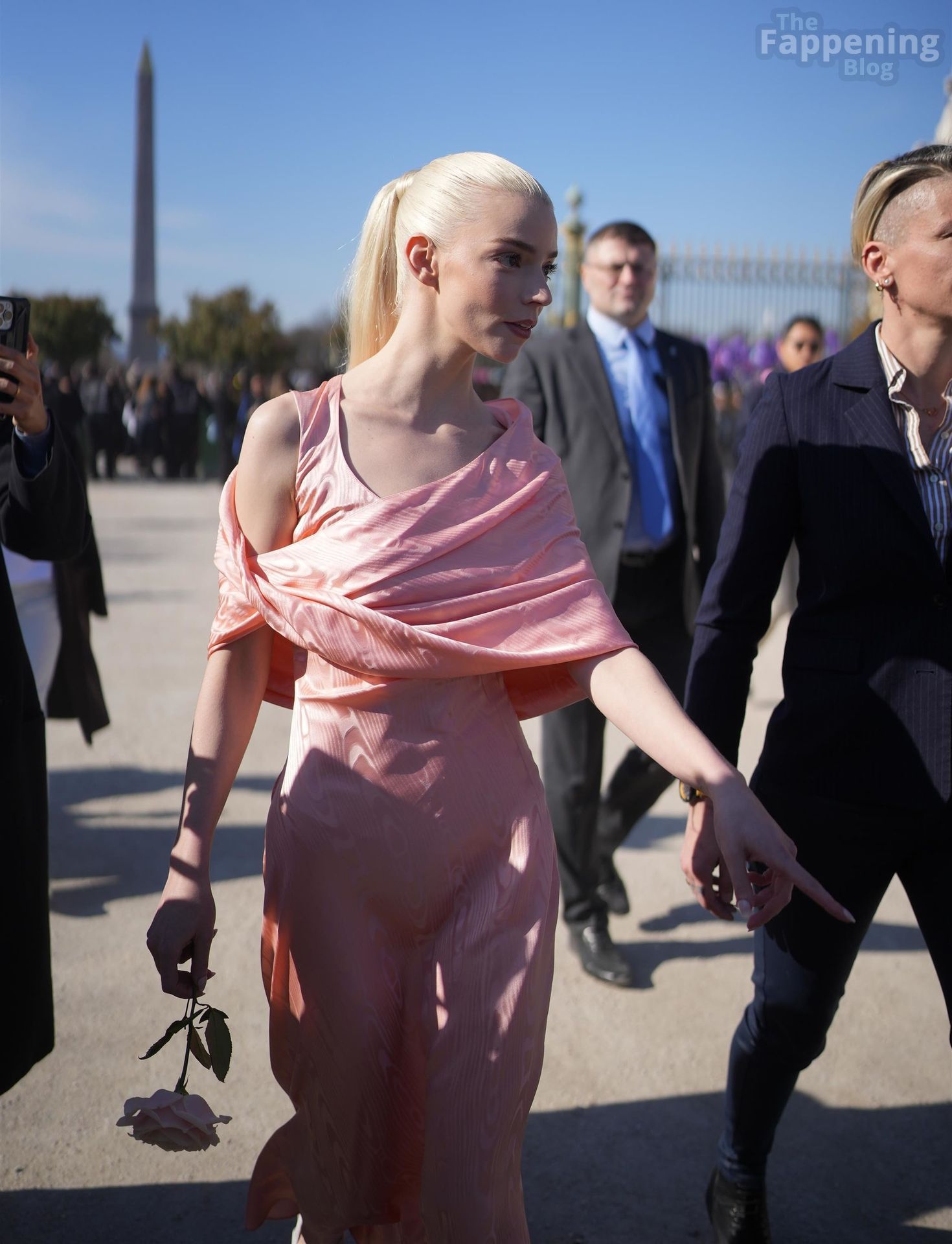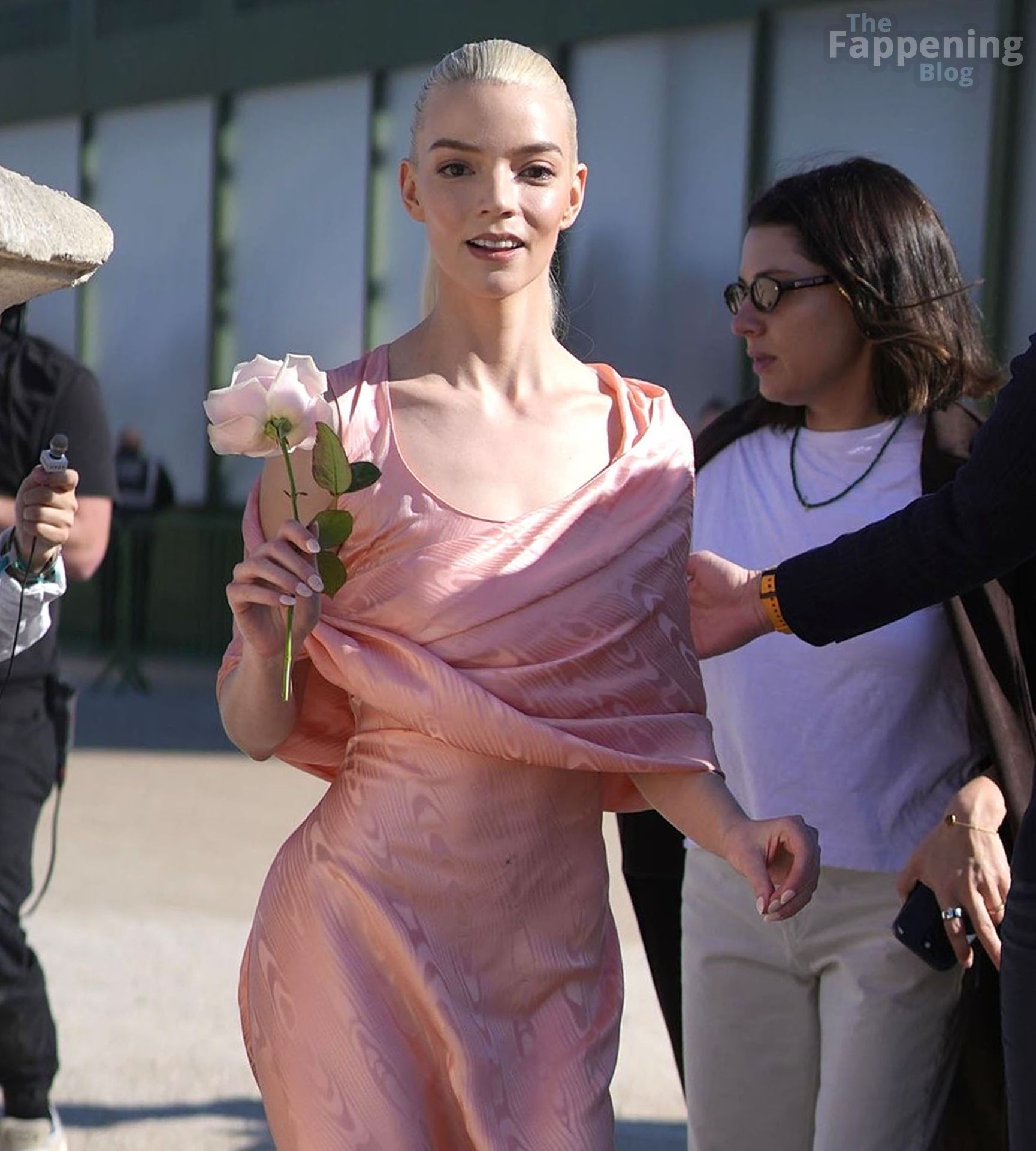 Anya Taylor-Joy looked dainty and feminine in pink as she was seen leaving her hotel to attend the Dior show during Fashion Week. The actress embraced soft, romantic glamour, perfectly complementing the elegance of the highly anticipated runway event.