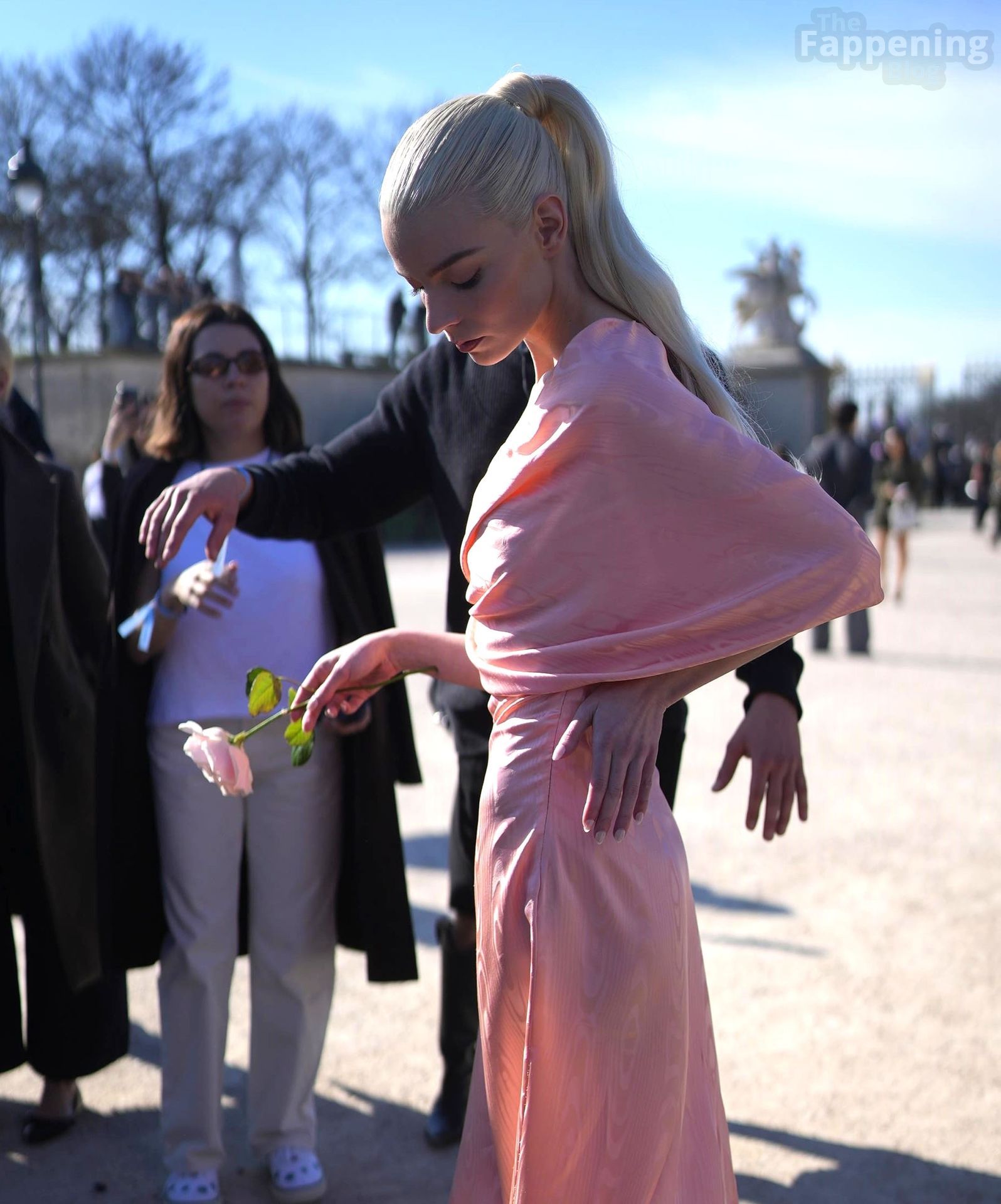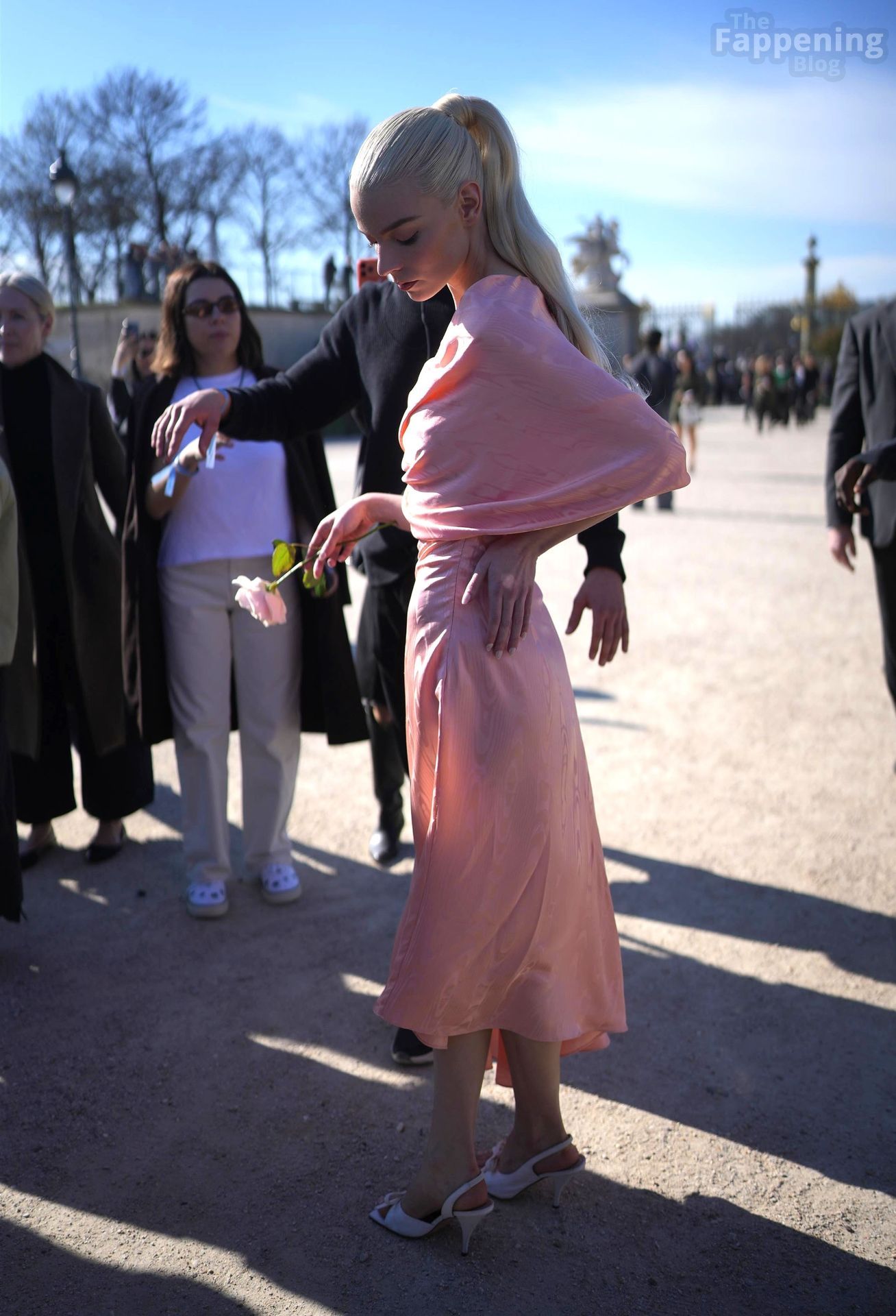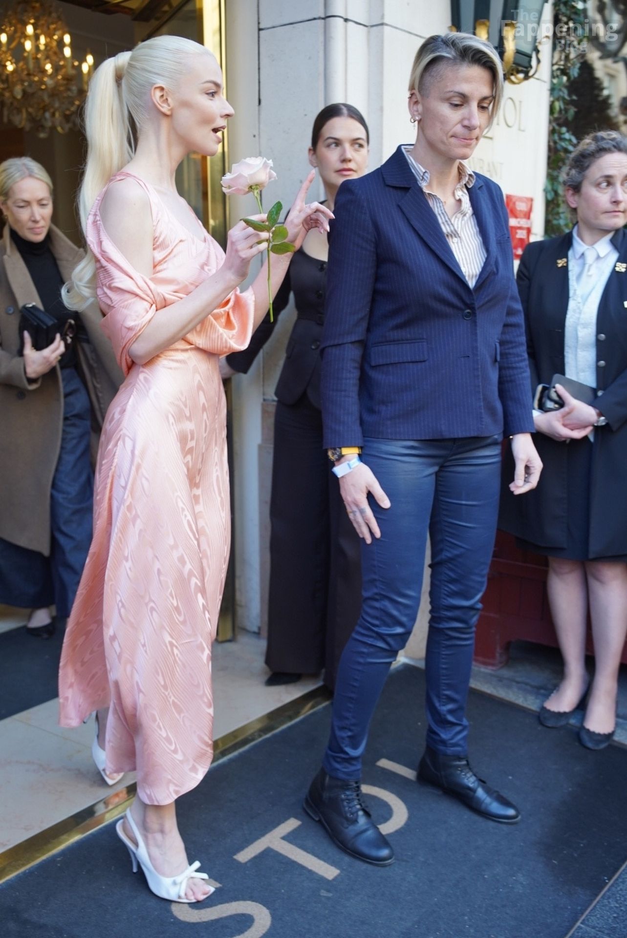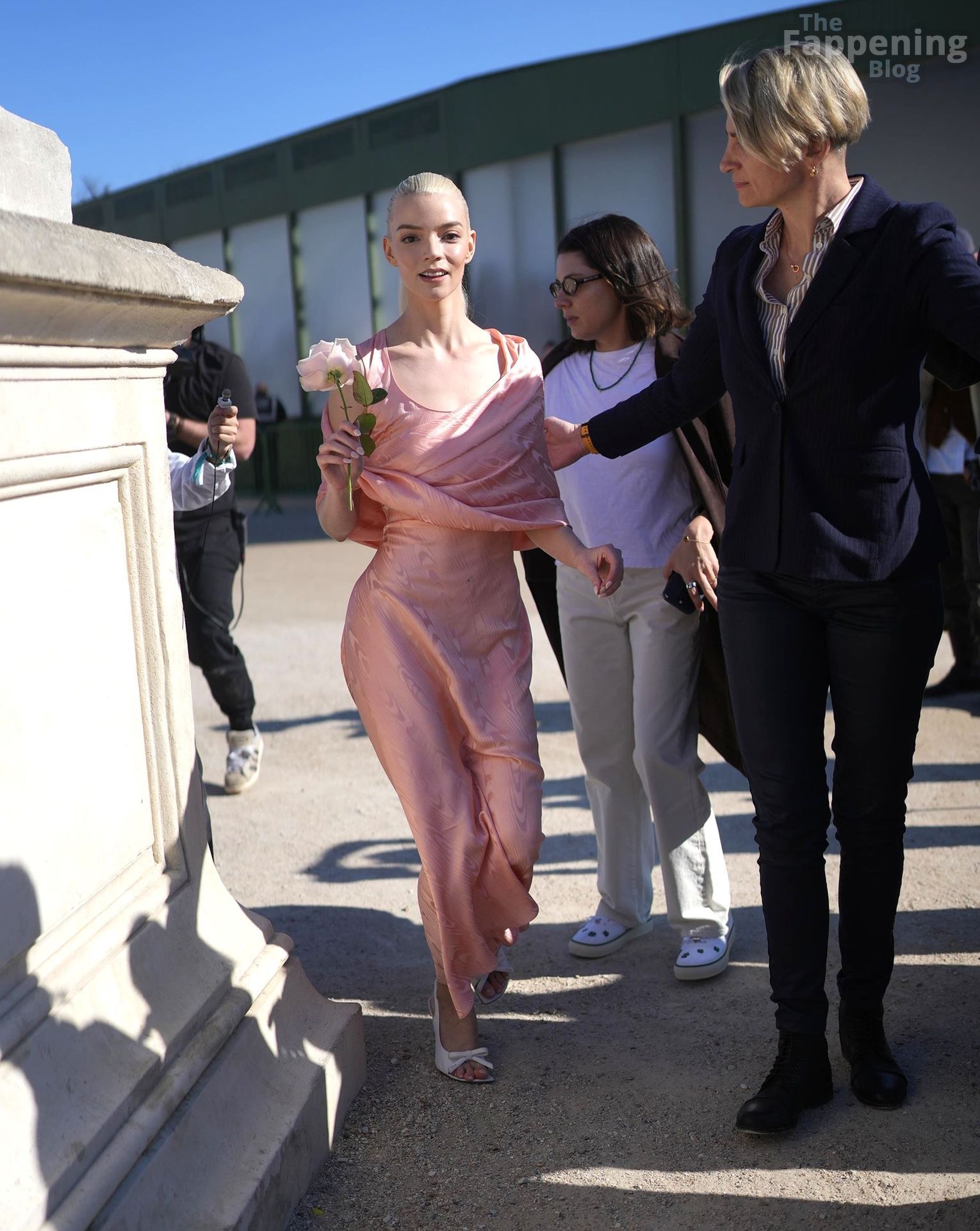 Anya Taylor-Joy looked dainty and feminine in pink as she was seen leaving her hotel to attend the Dior show during Fashion Week. The actress embraced soft, romantic glamour, perfectly complementing the elegance of the highly anticipated runway event.