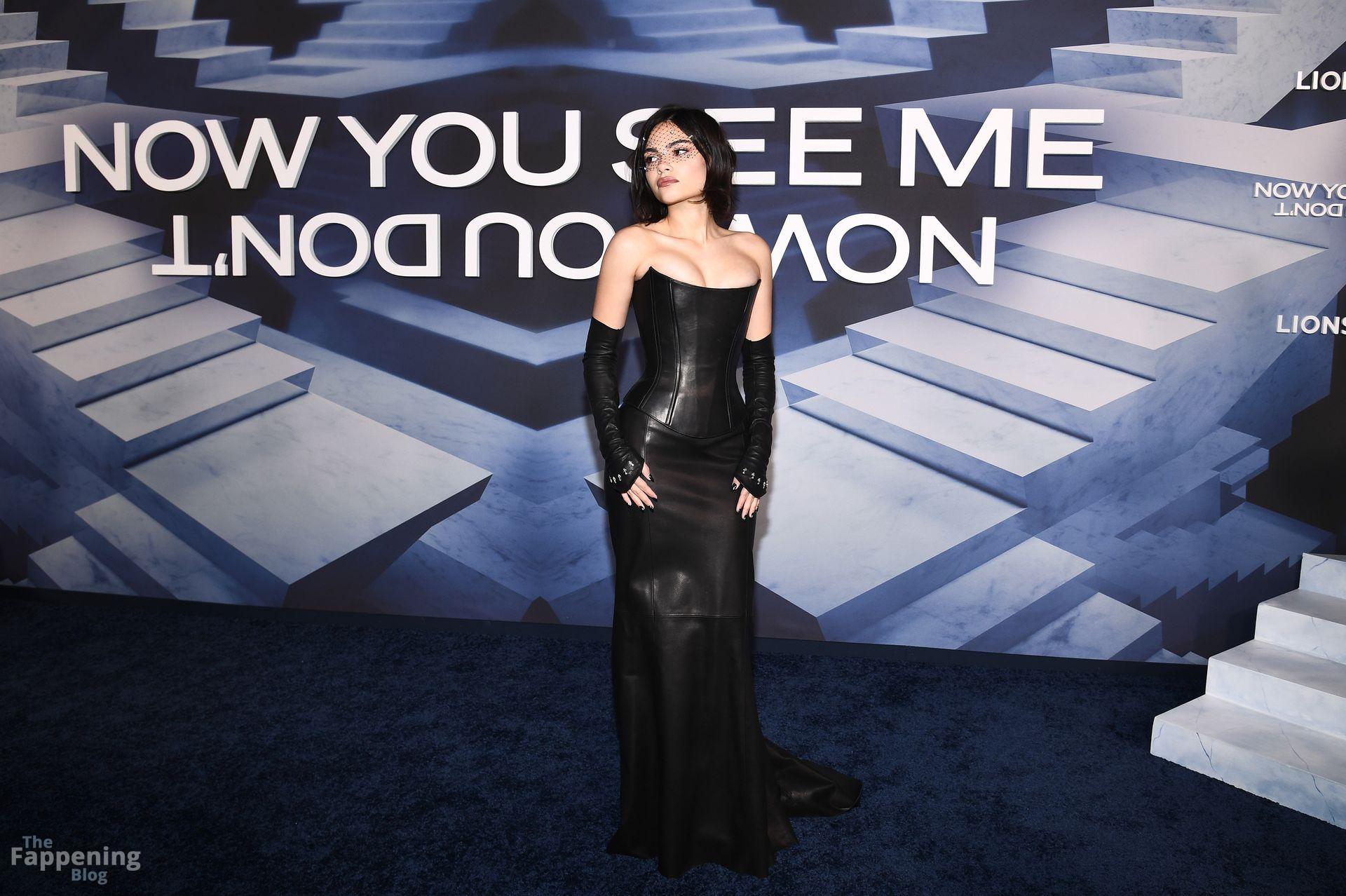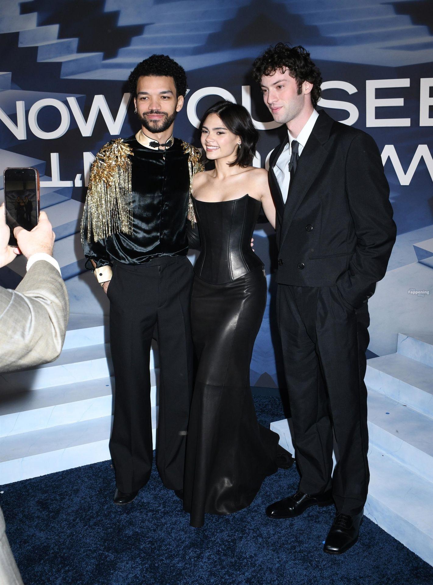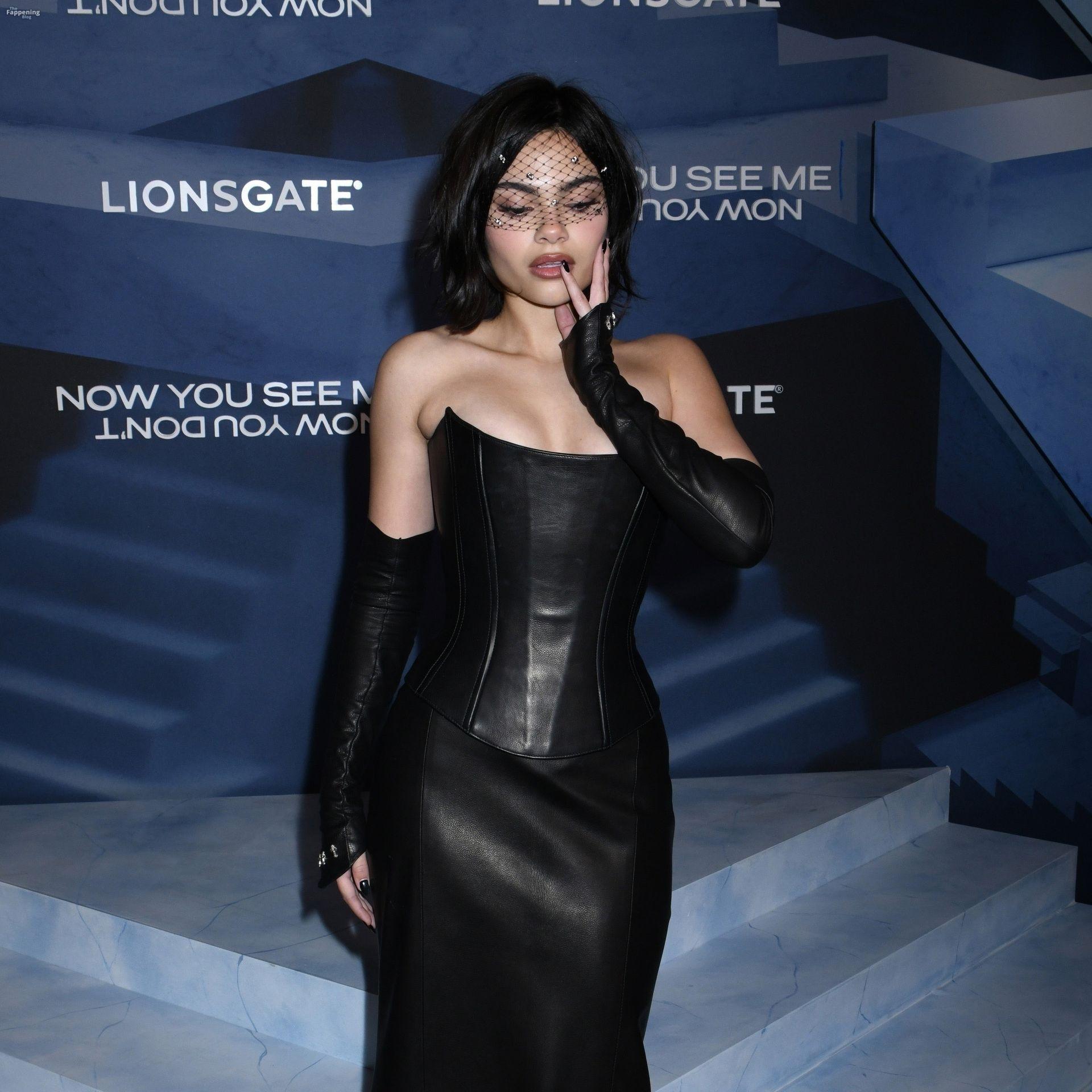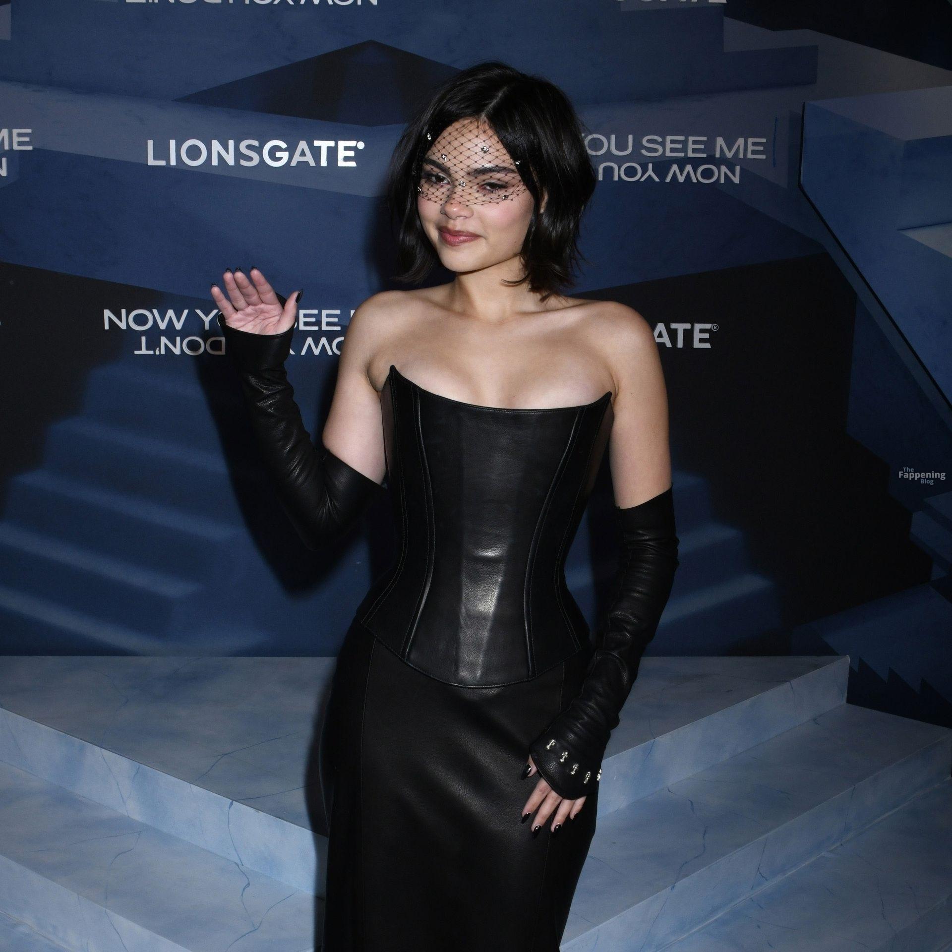Busty American actress Ariana Greenblatt stuns in a leather corset gown at the Now You See Me Now You Don’t premiere at The Lighthouse at Chelsea Piers in Manhattan, NYC.