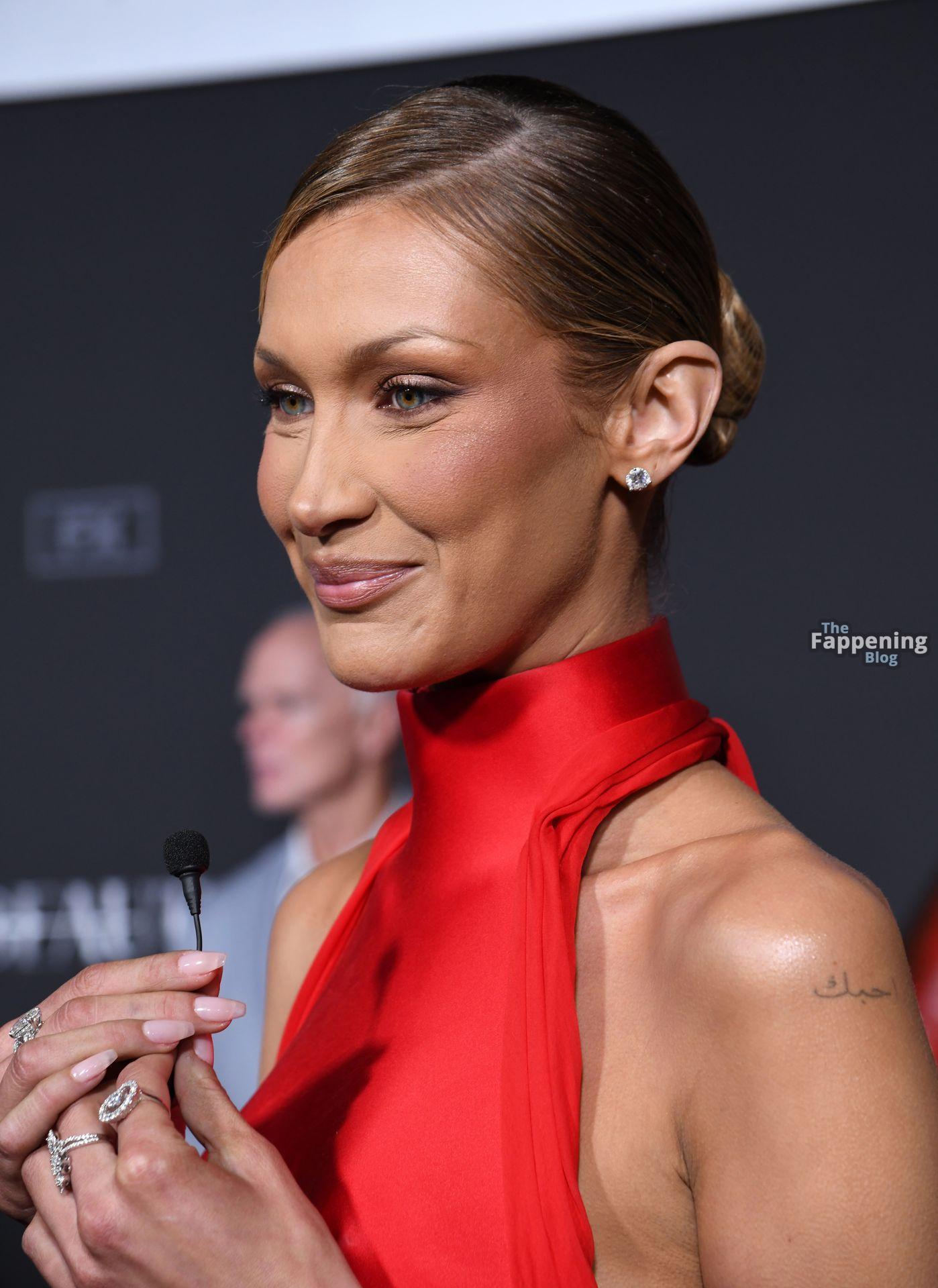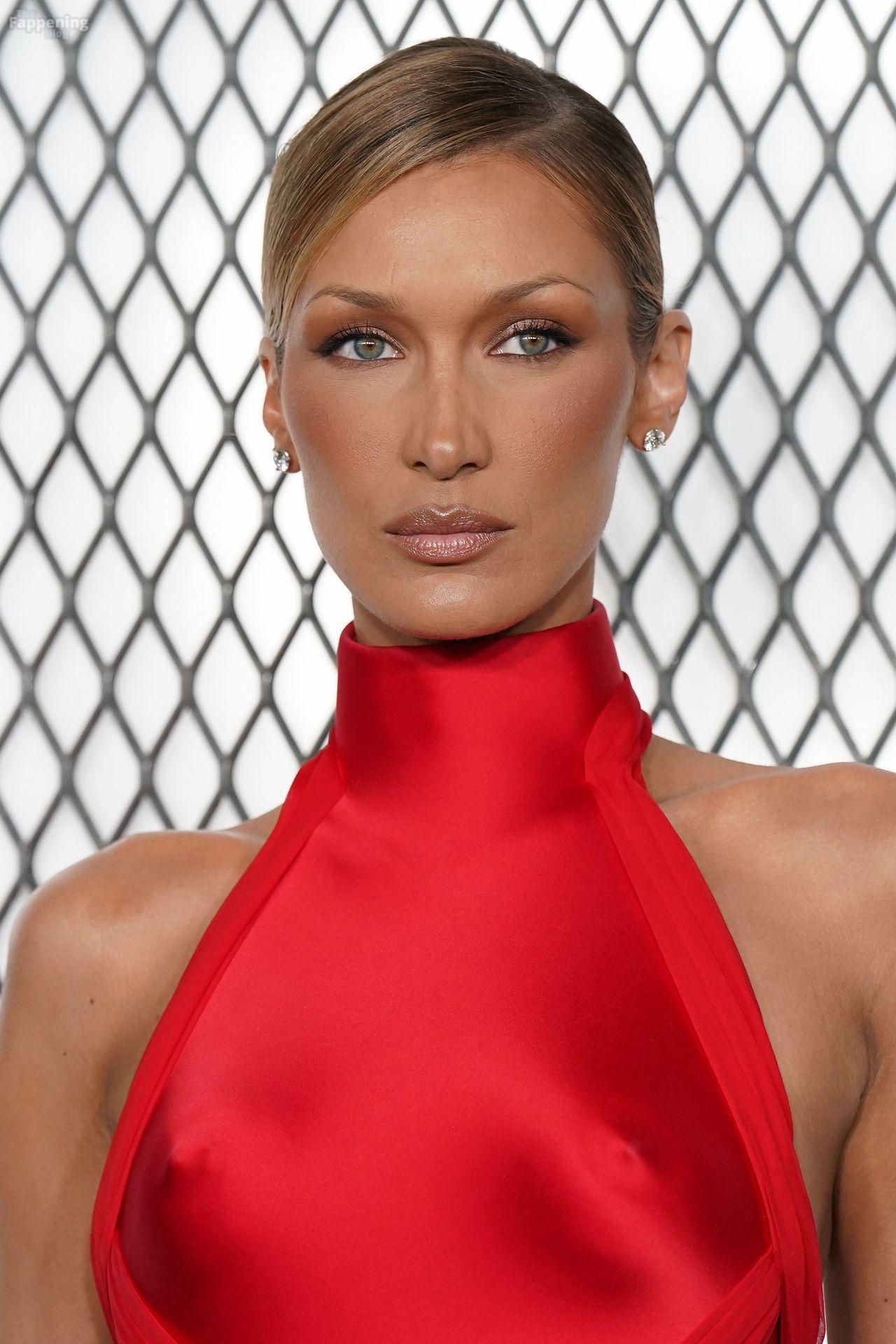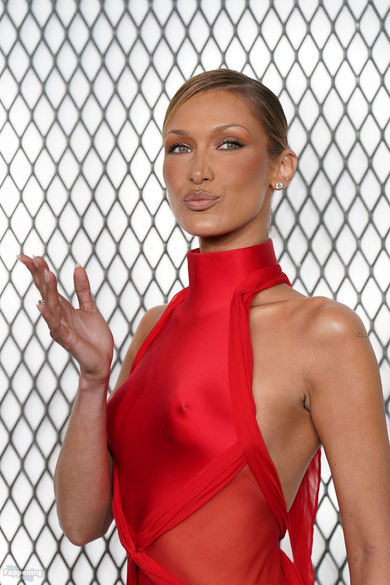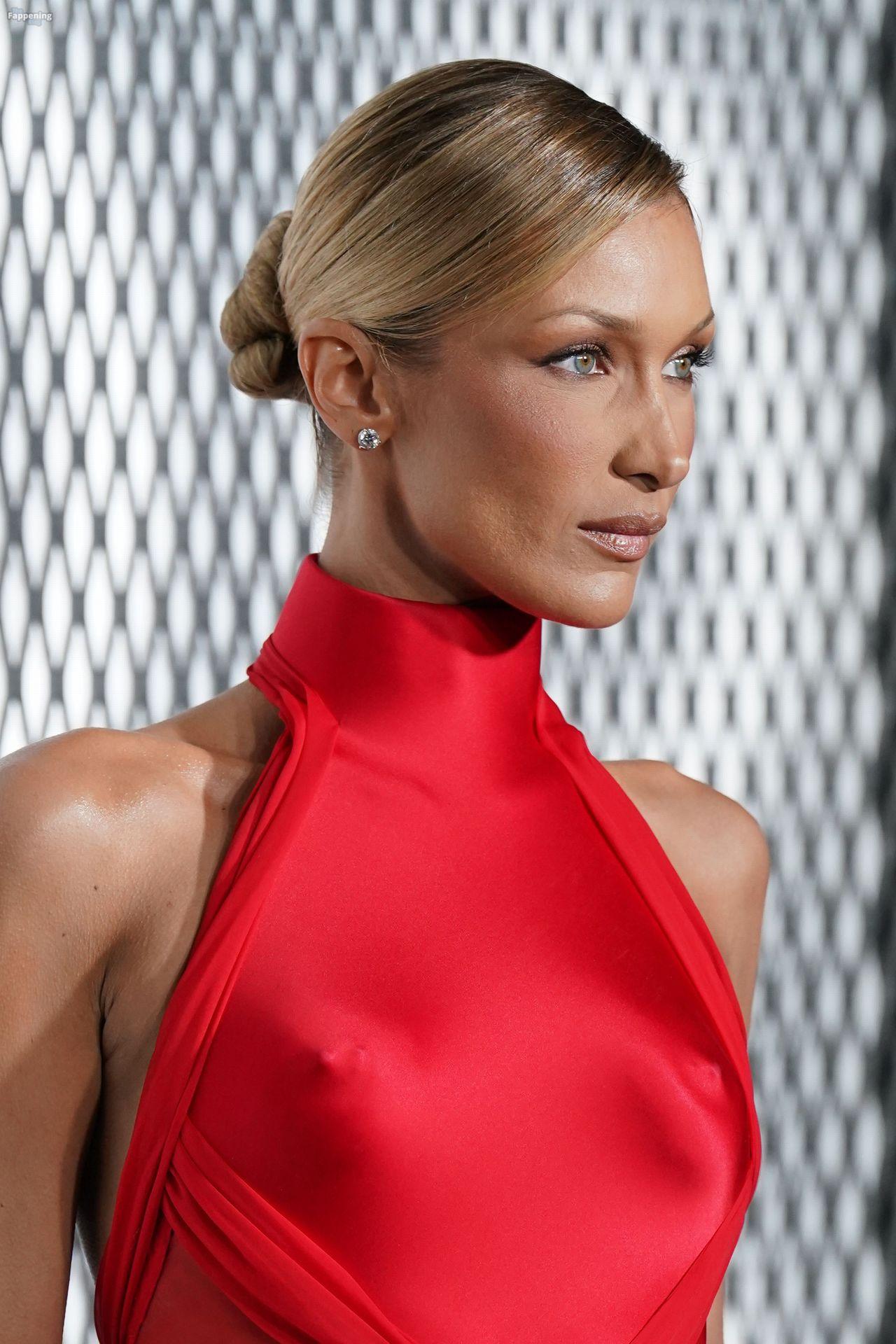 Bella Hadid shows off her pokies in a red dress as she attends FX’s “The Beauty” red carpet premiere. Held at MoMA The Museum of Modern Art in New York.