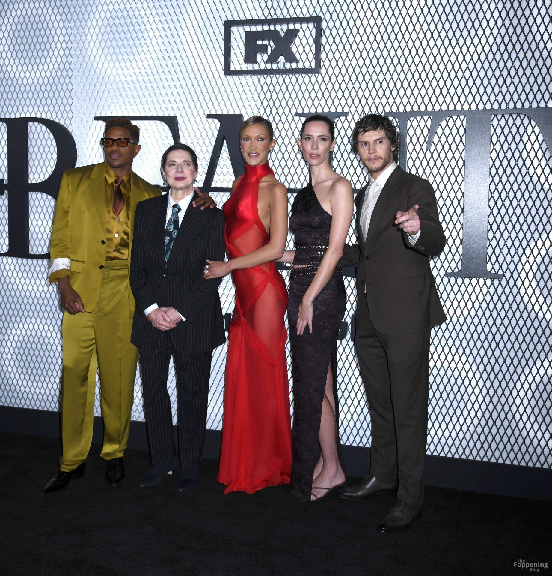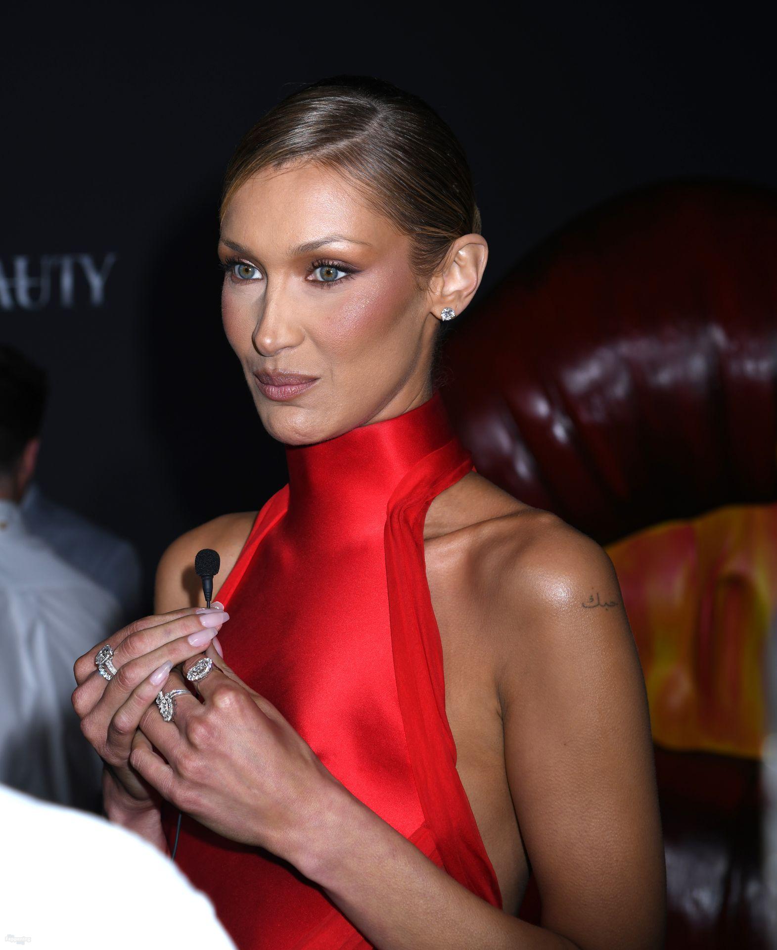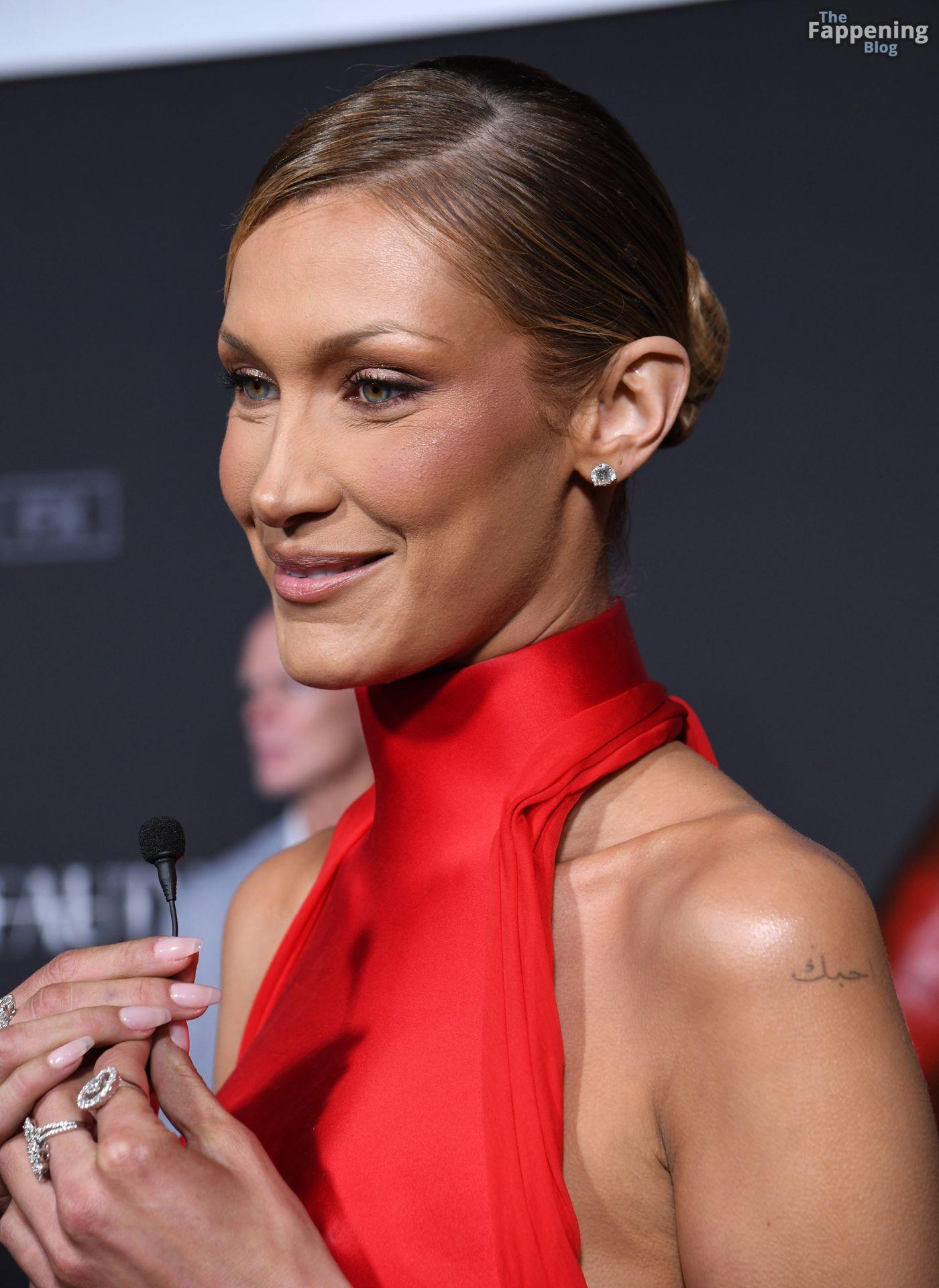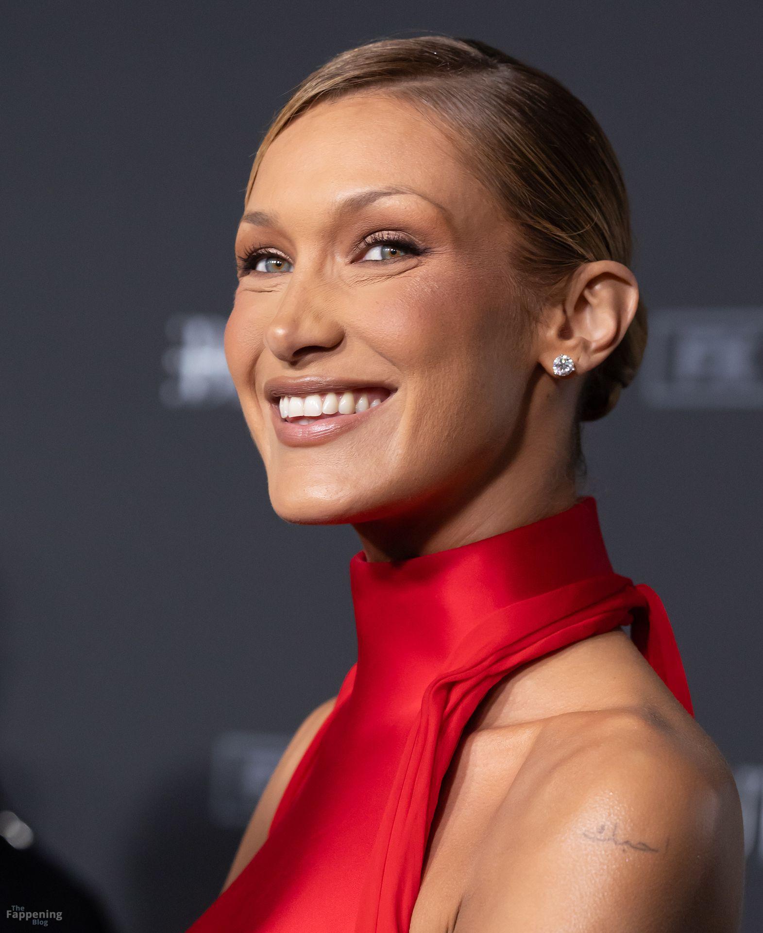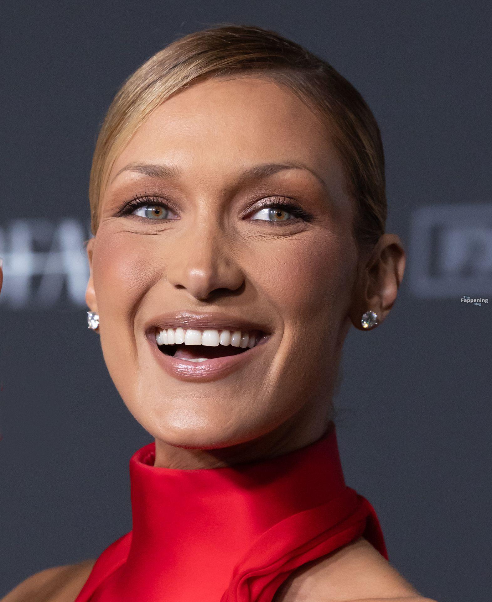 Bella Hadid shows off her pokies in a red dress as she attends FX’s “The Beauty” red carpet premiere. Held at MoMA The Museum of Modern Art in New York.