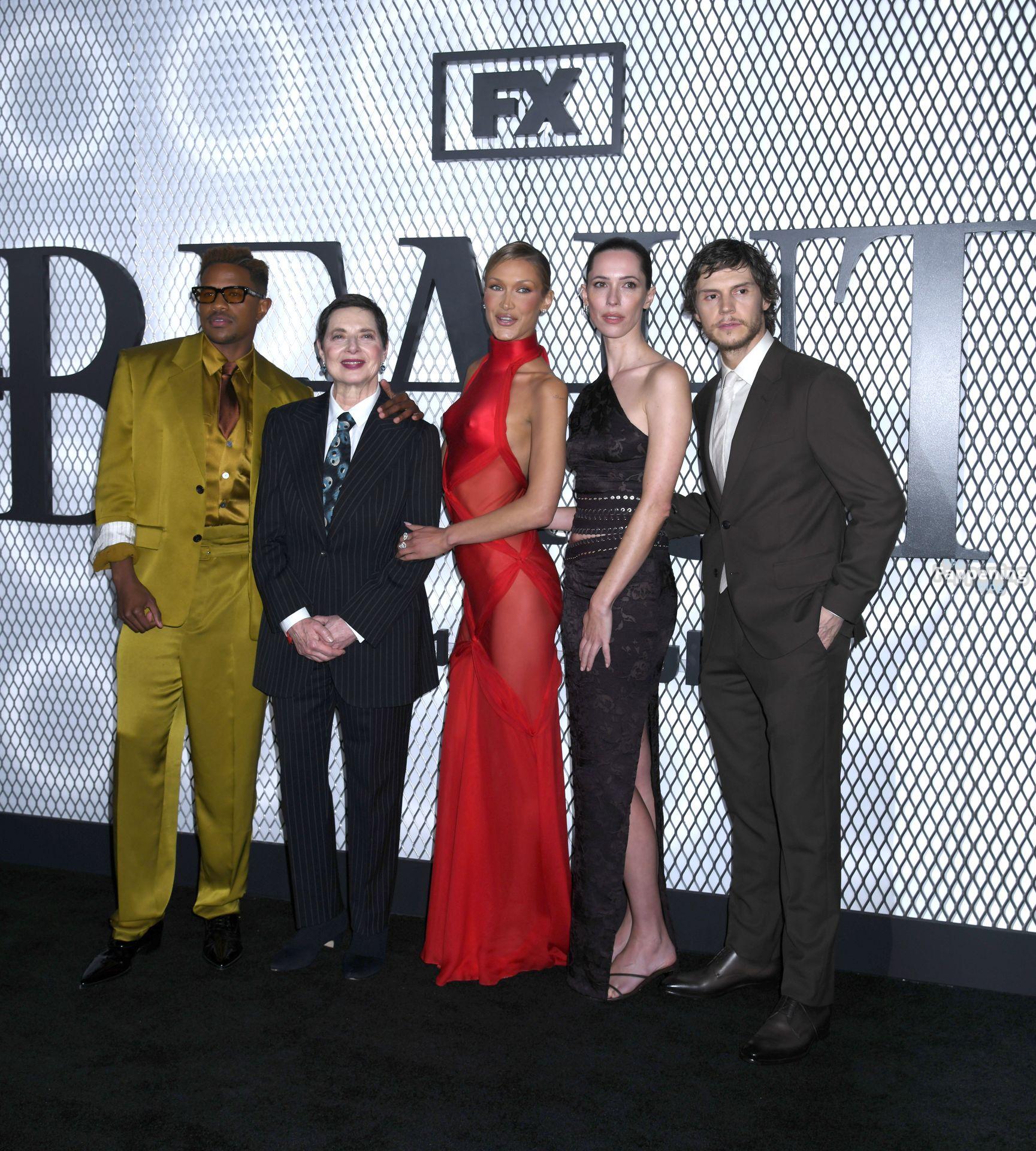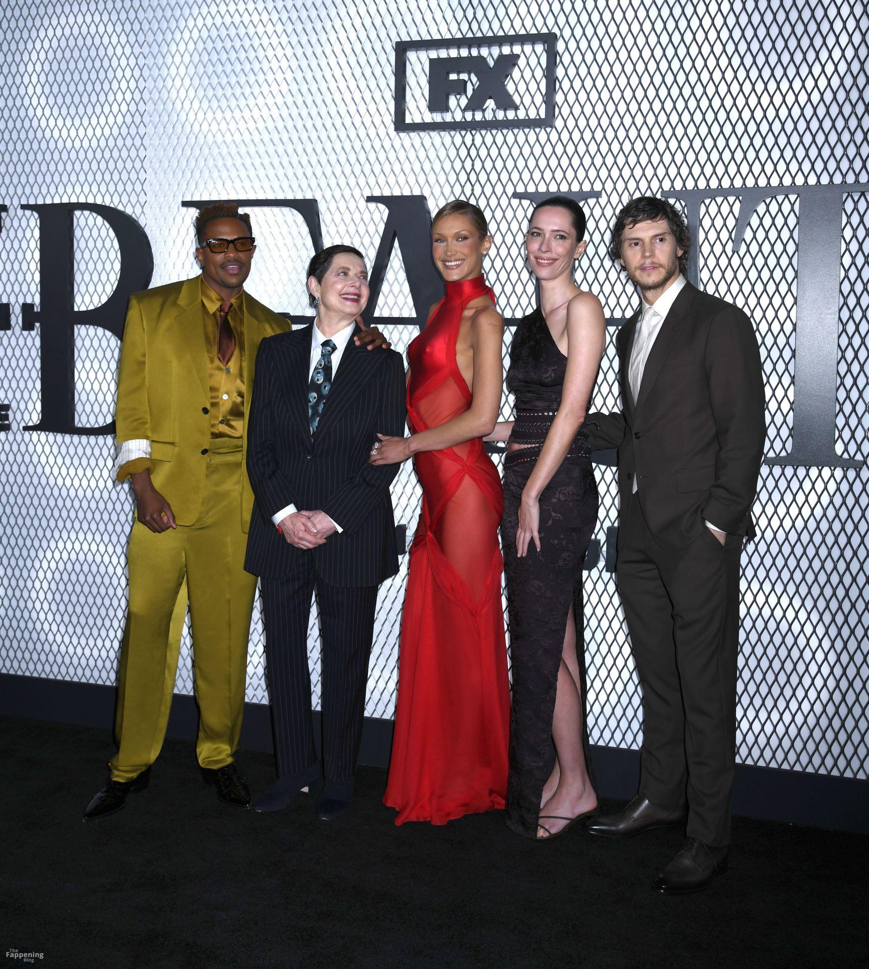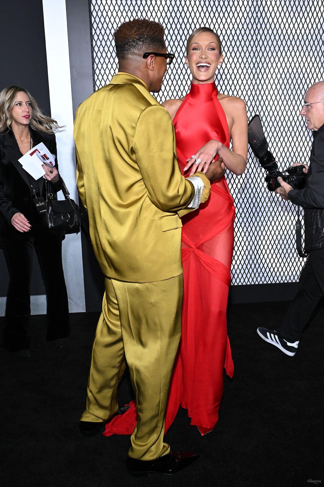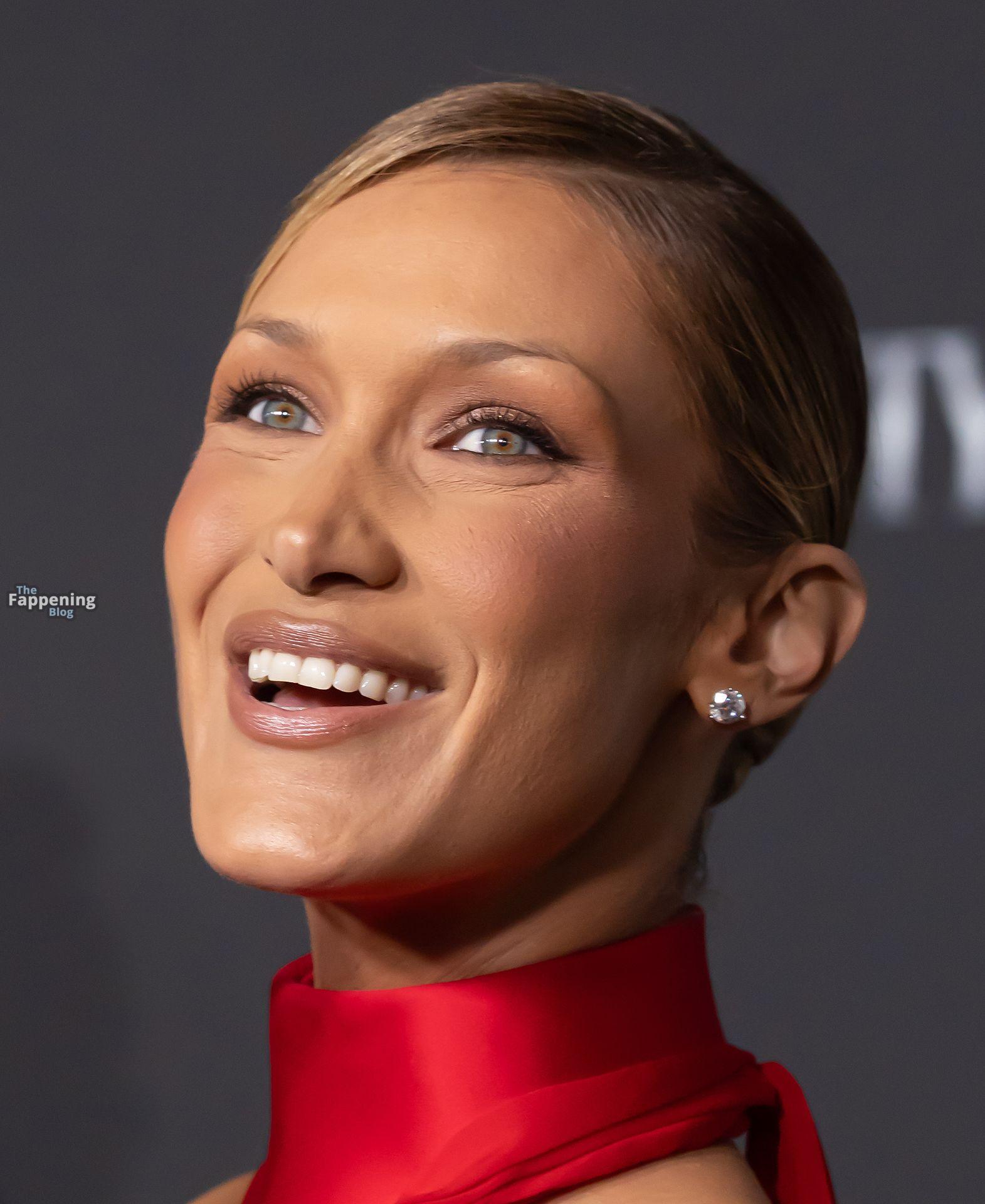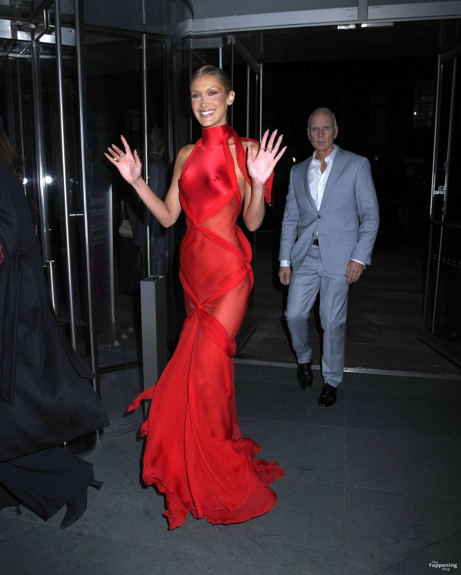 Bella Hadid shows off her pokies in a red dress as she attends FX’s “The Beauty” red carpet premiere. Held at MoMA The Museum of Modern Art in New York.