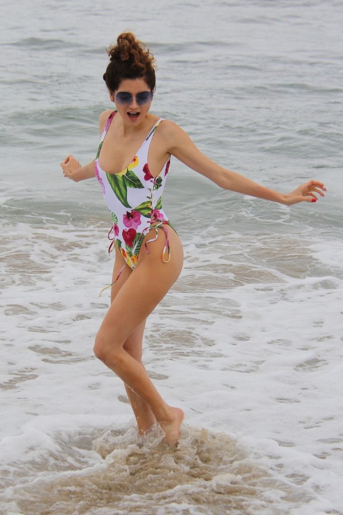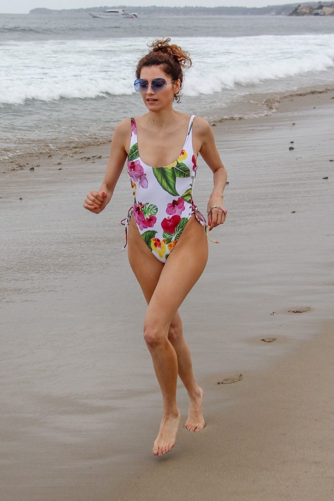 Actress Blanca Blanco understands how to flip heads and get men’s focus, as she stepped out on to a beach front in Malibu this early morning sporting a flower print one-piece swimsuit!