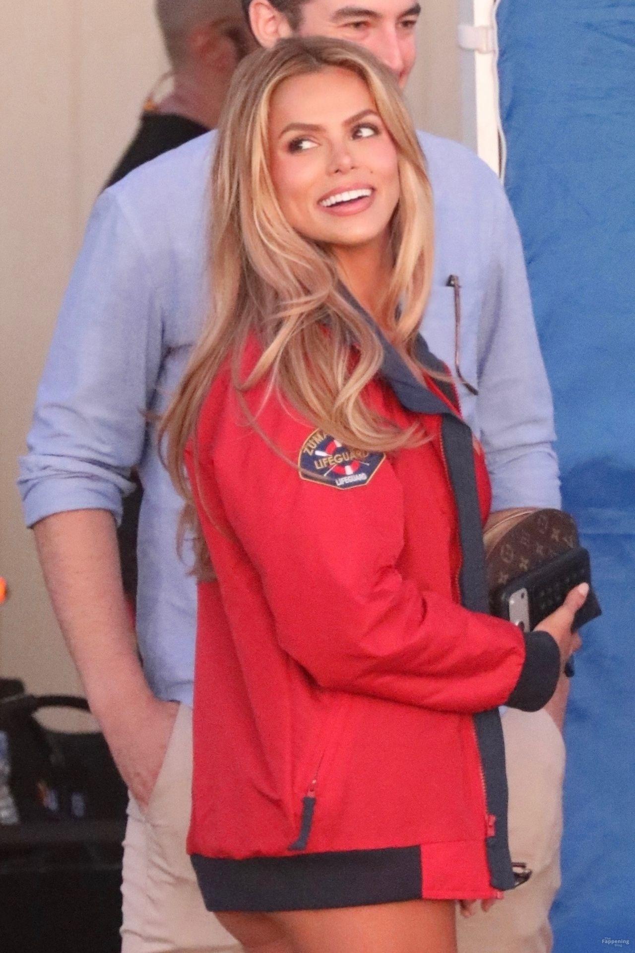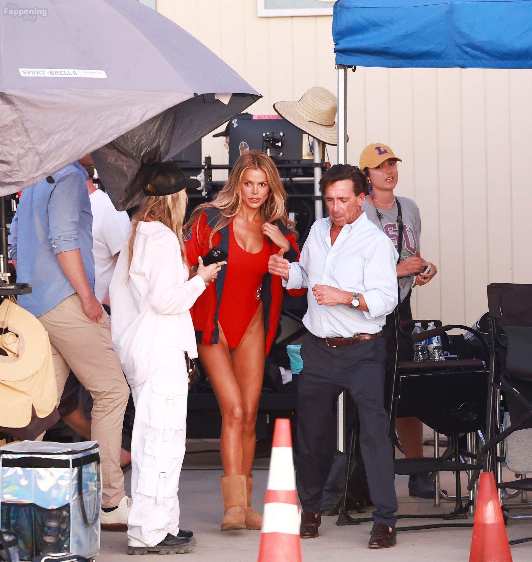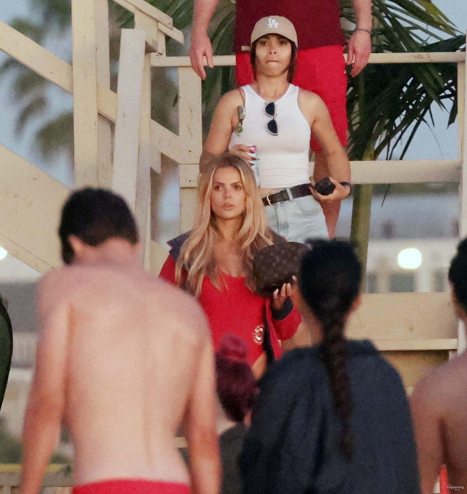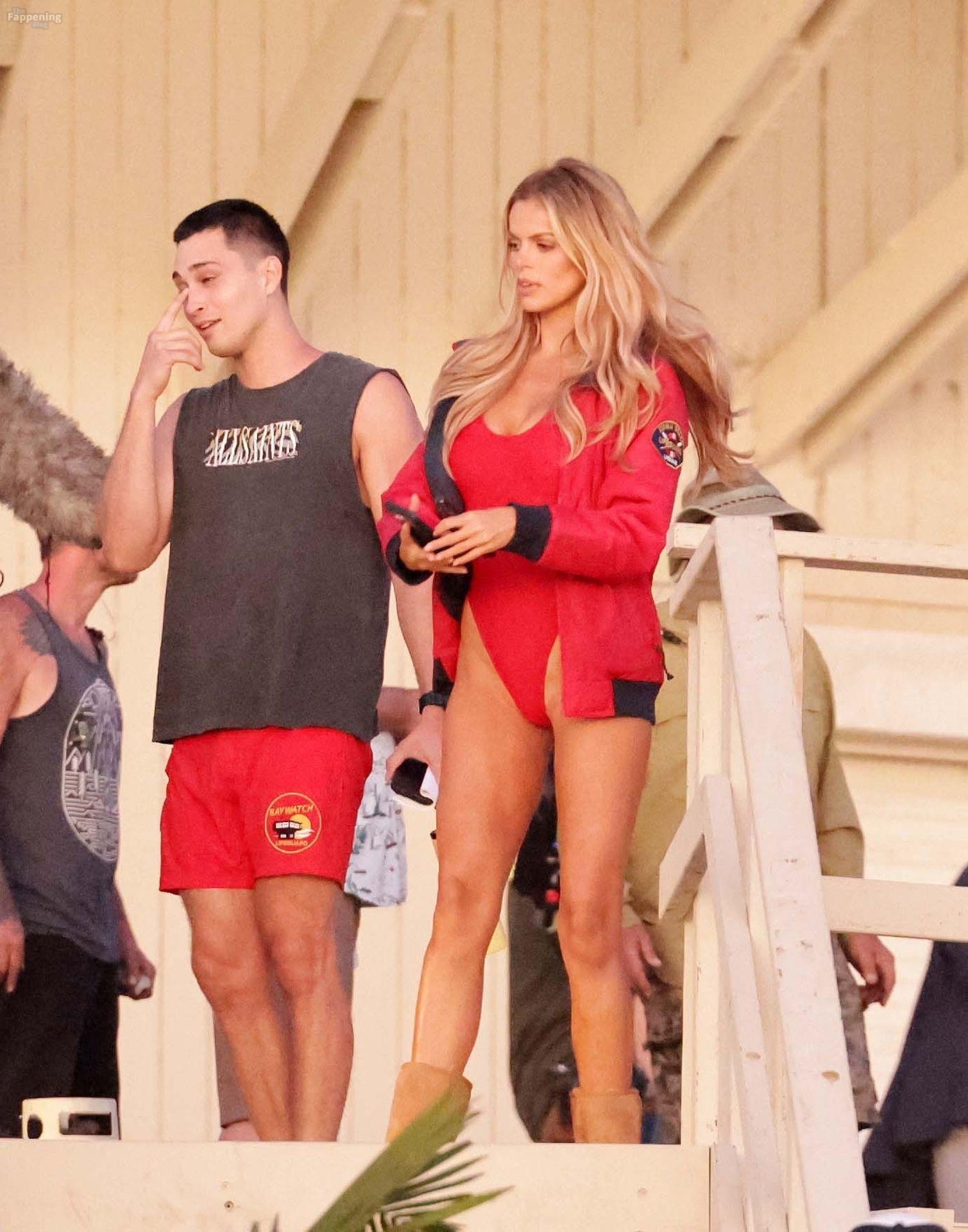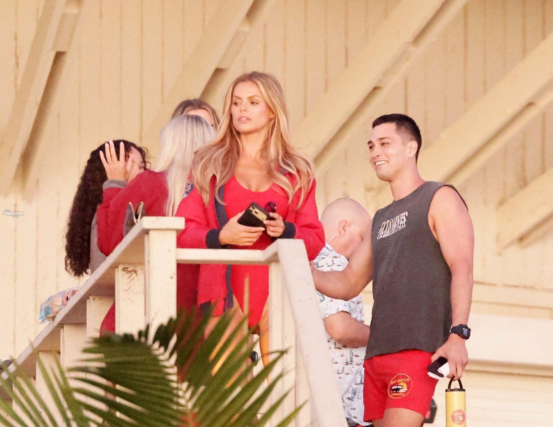 Brooks Nader was spotted on the set of Baywatch in Venice Beach, stepping into the iconic red swimsuit and lifeguard jacket.