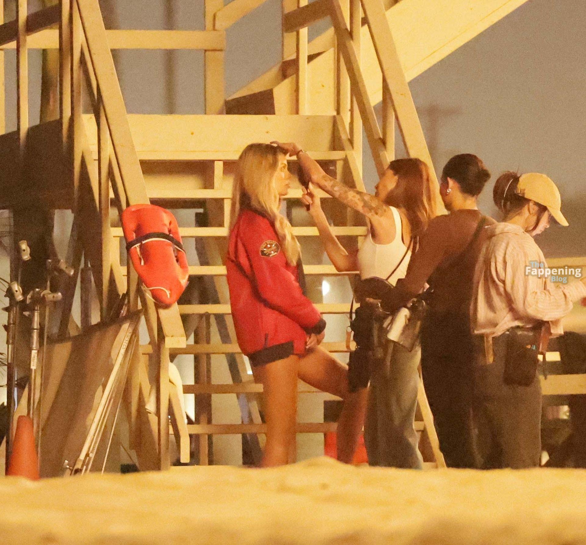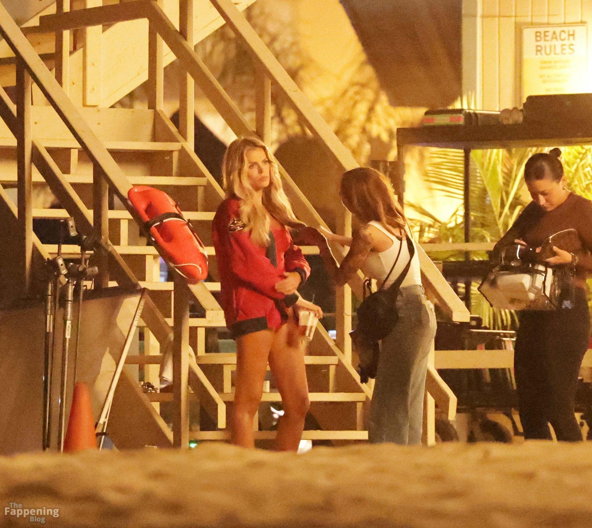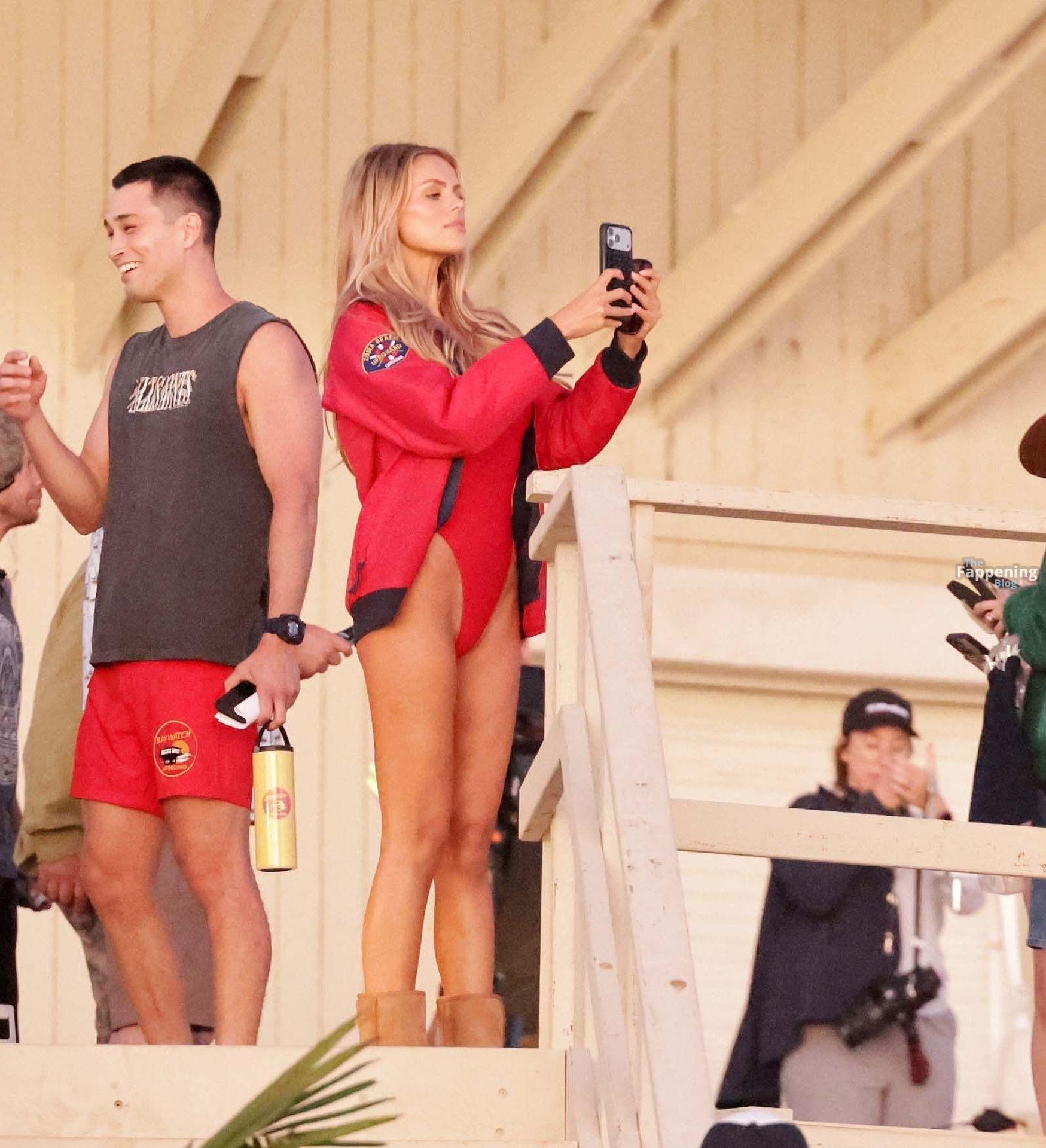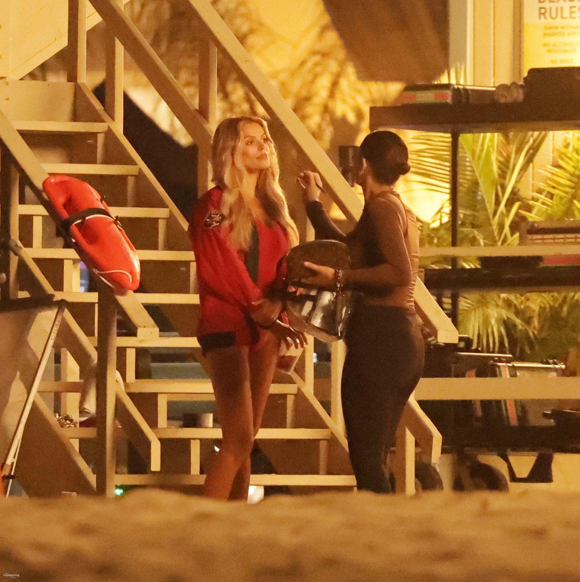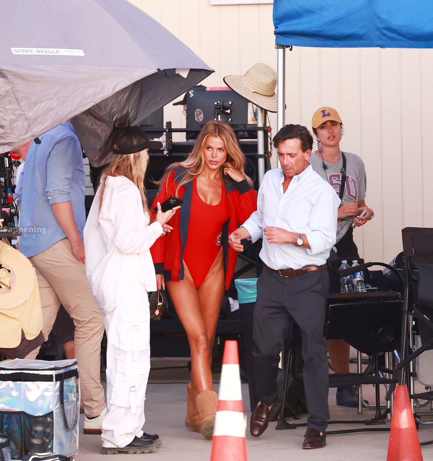 Brooks Nader was spotted on the set of Baywatch in Venice Beach, stepping into the iconic red swimsuit and lifeguard jacket.