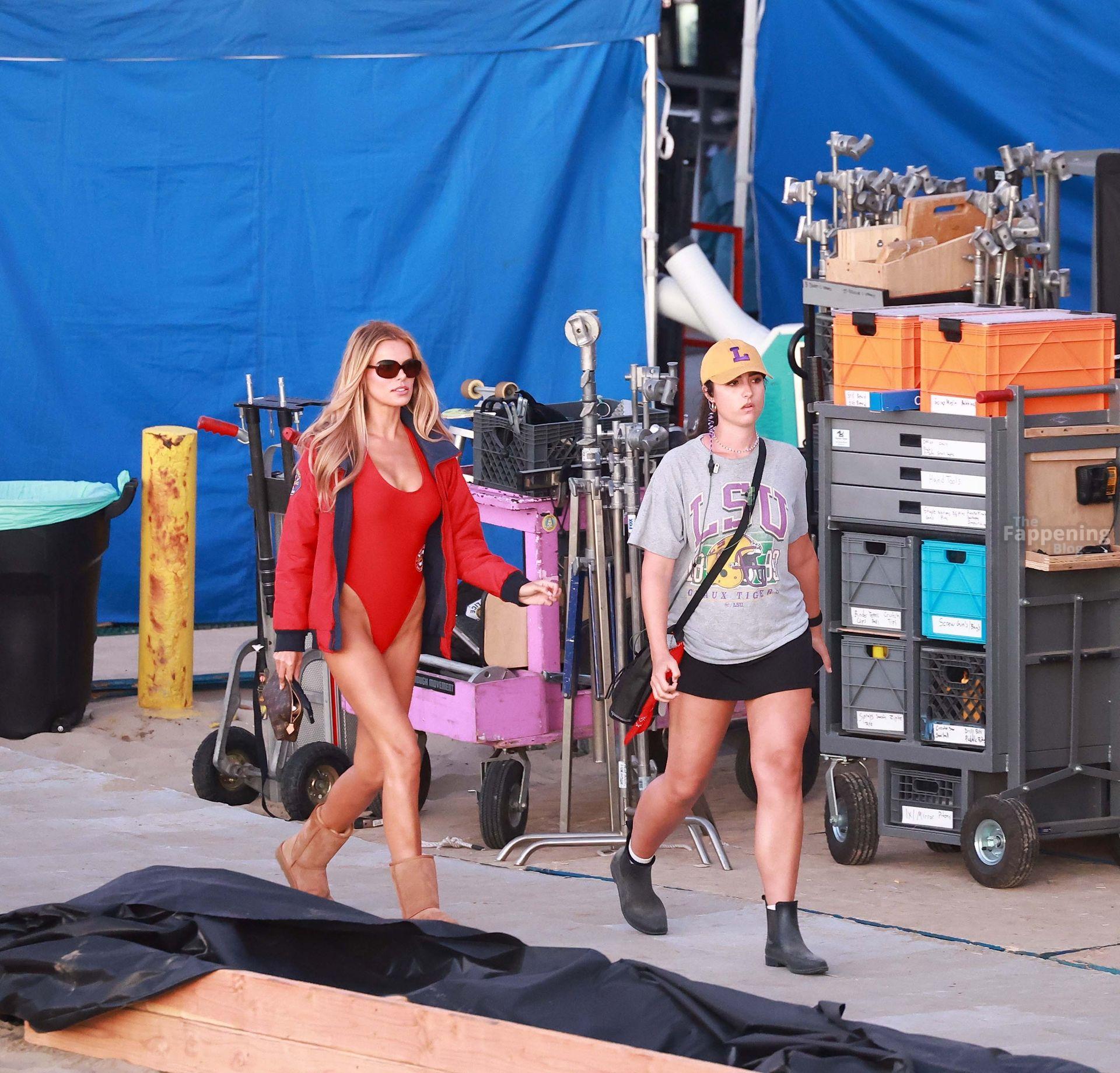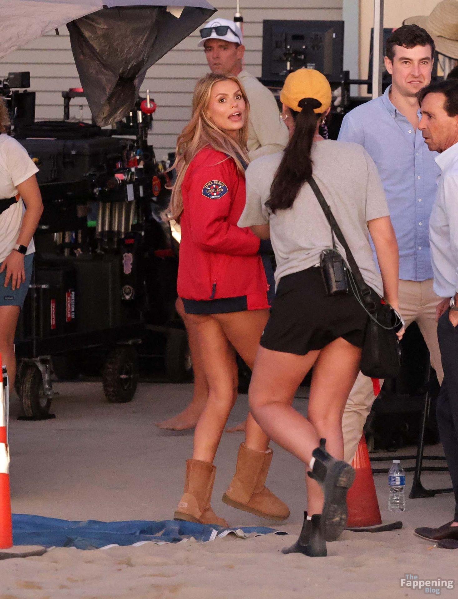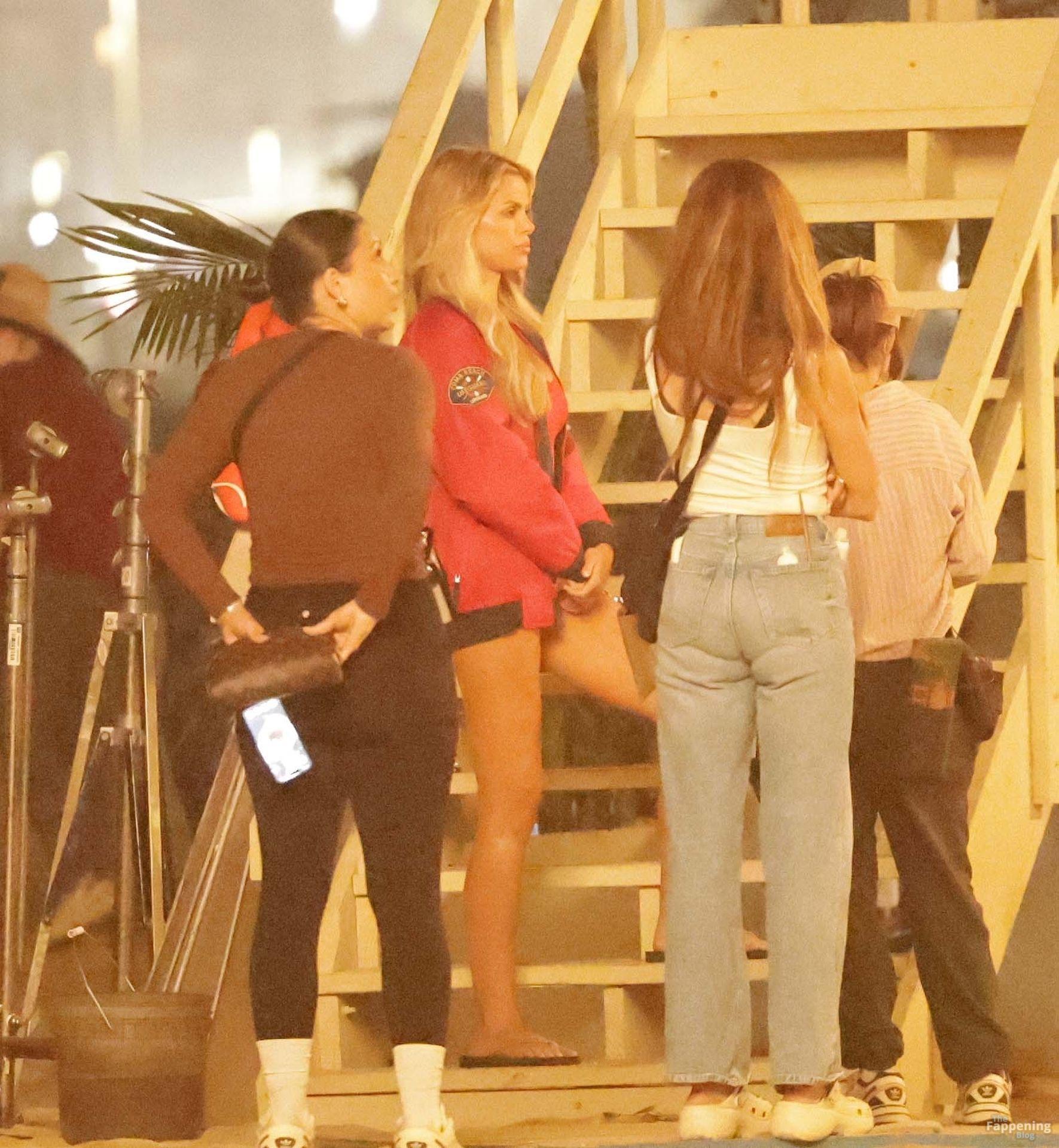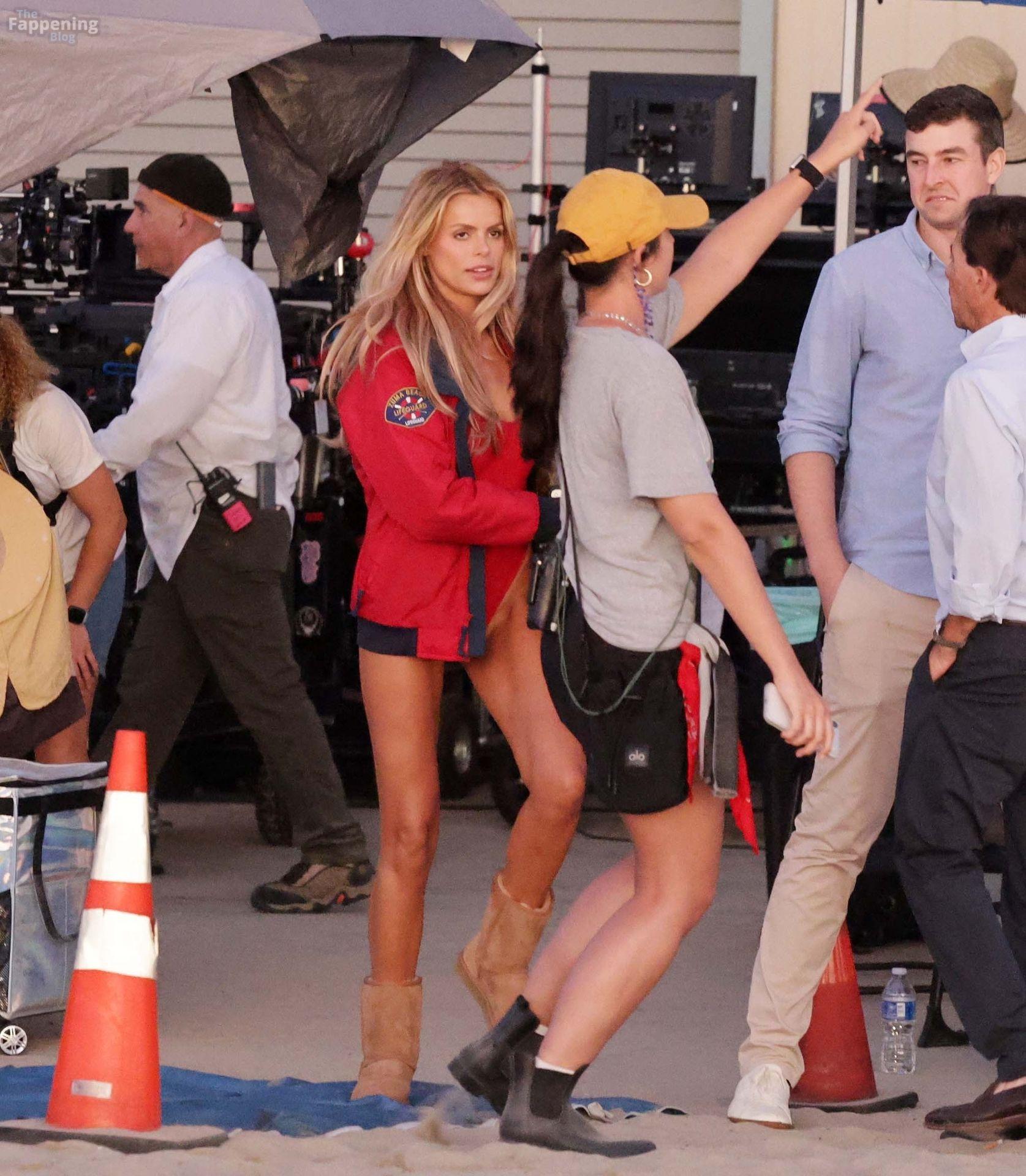 Brooks Nader was spotted on the set of Baywatch in Venice Beach, stepping into the iconic red swimsuit and lifeguard jacket.