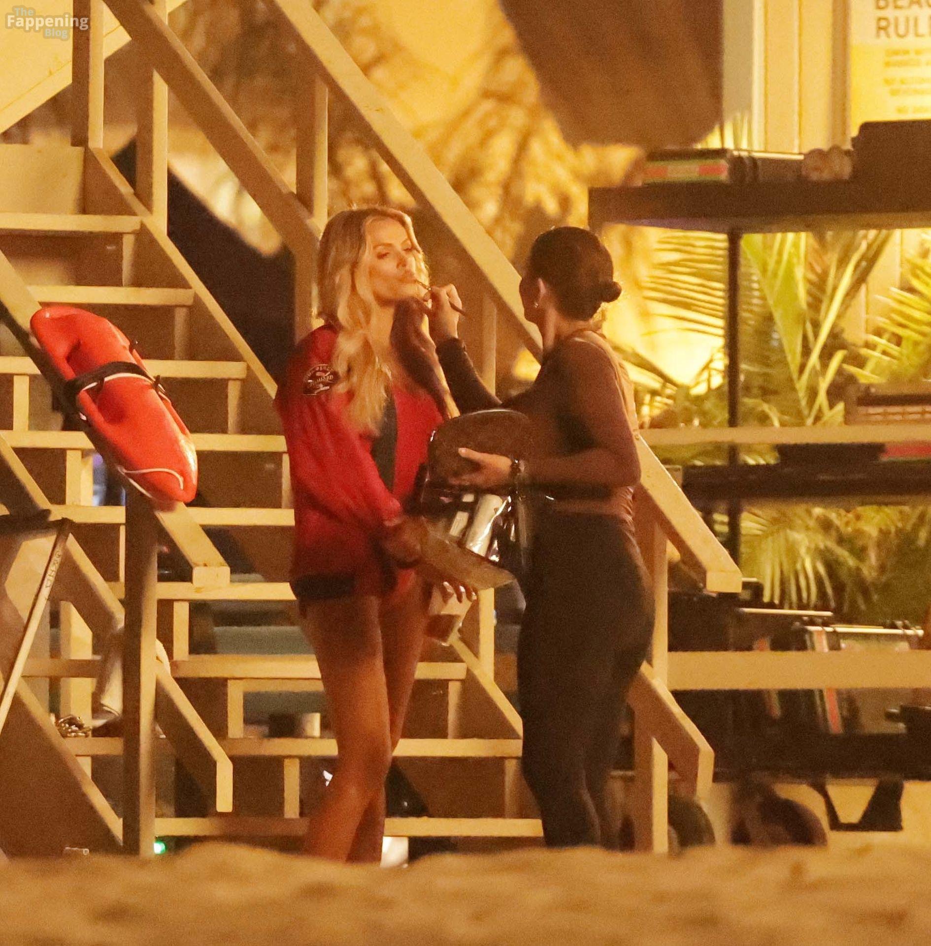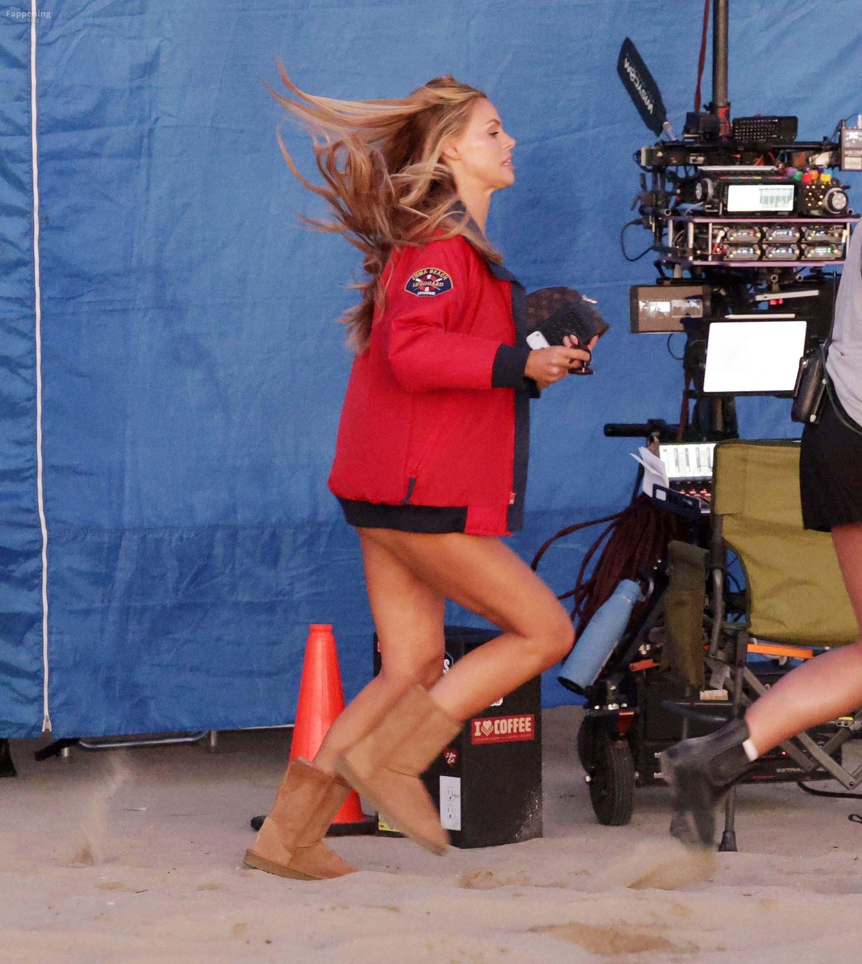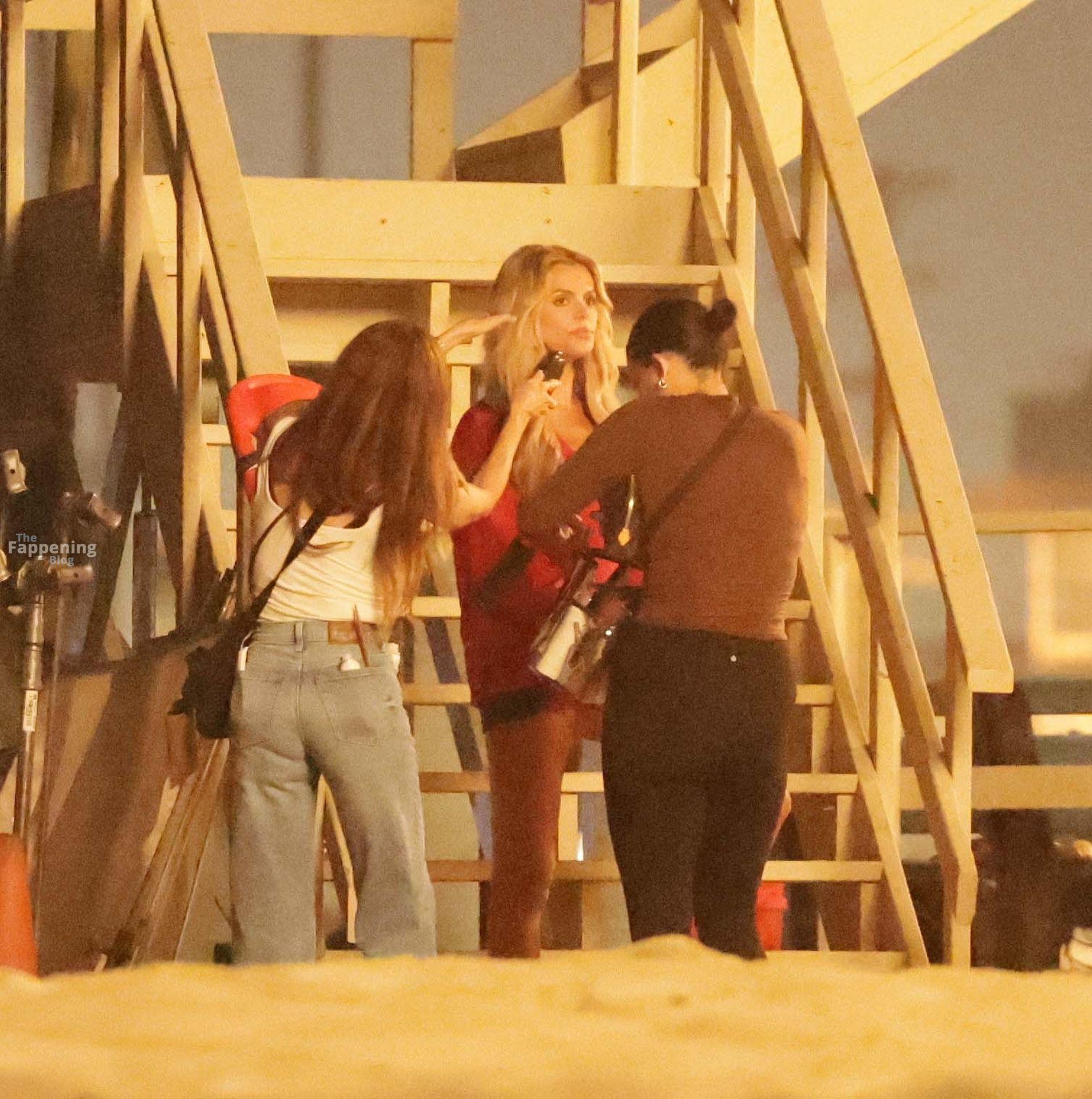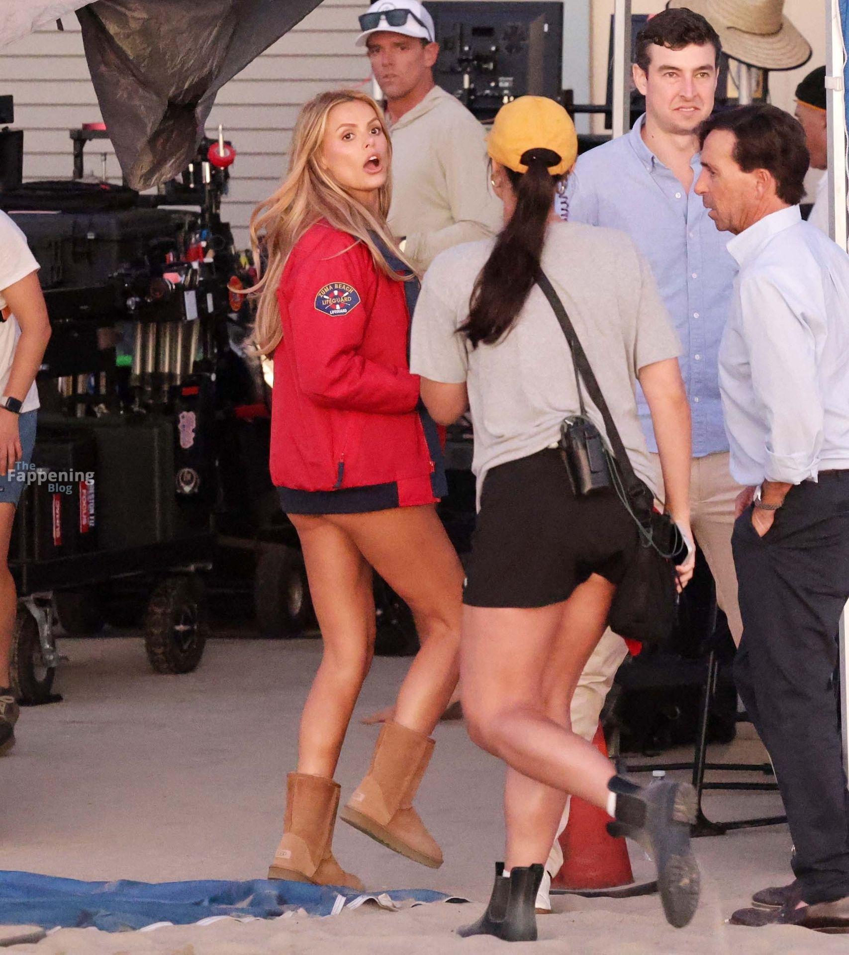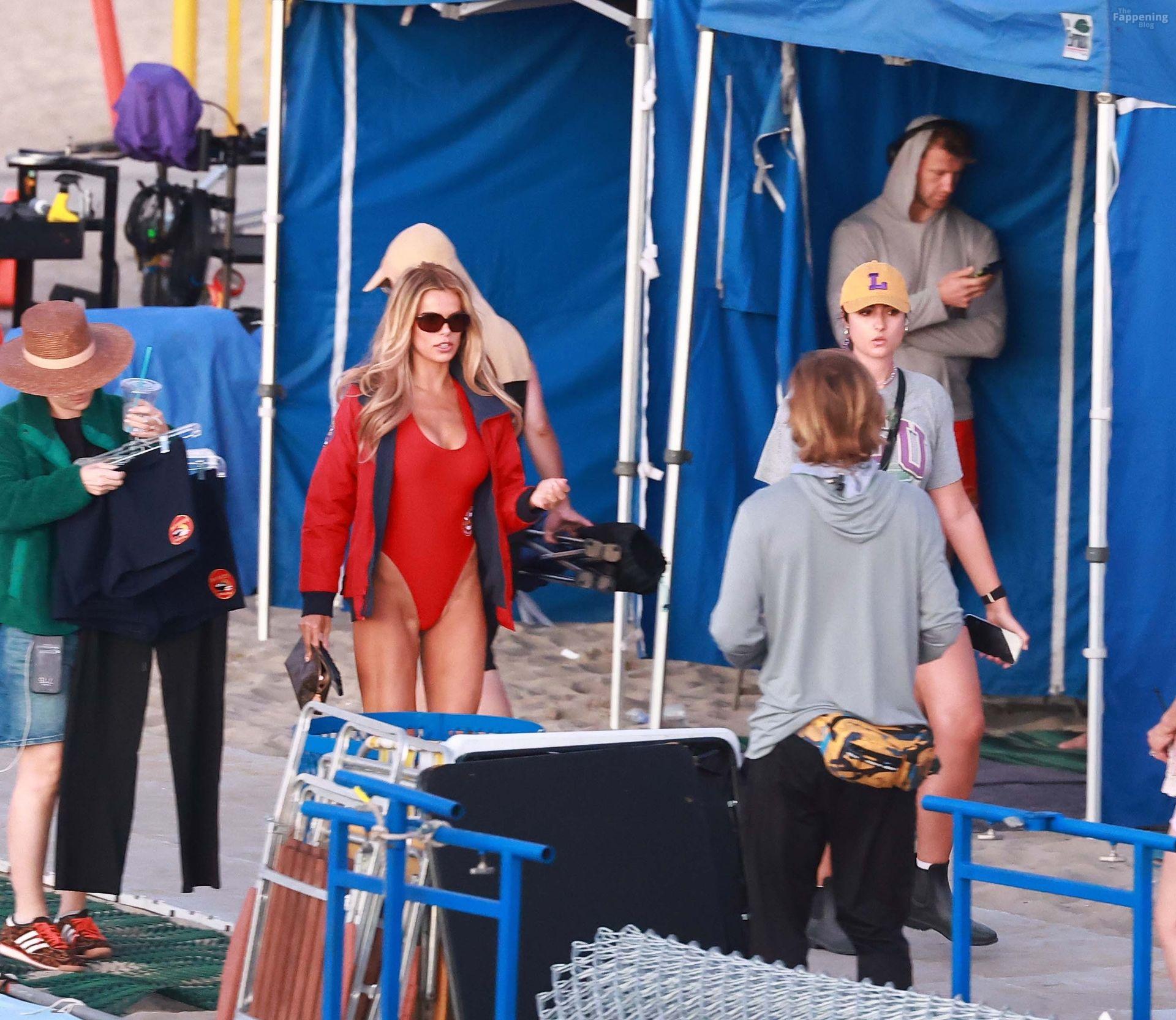 Brooks Nader was spotted on the set of Baywatch in Venice Beach, stepping into the iconic red swimsuit and lifeguard jacket.