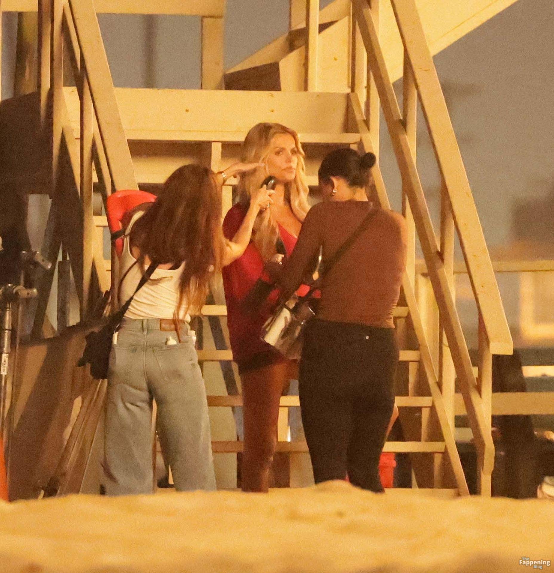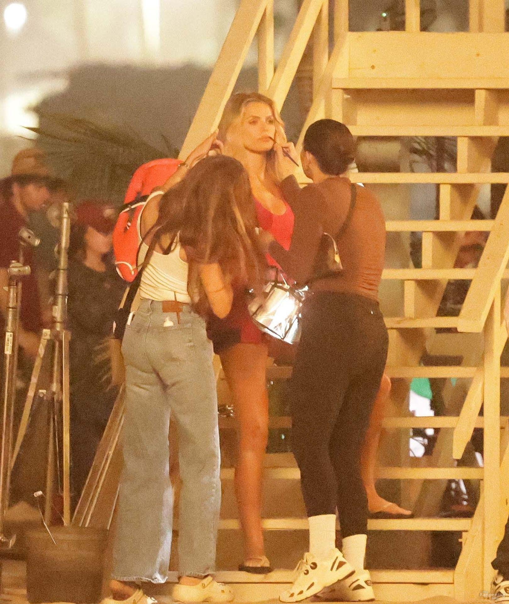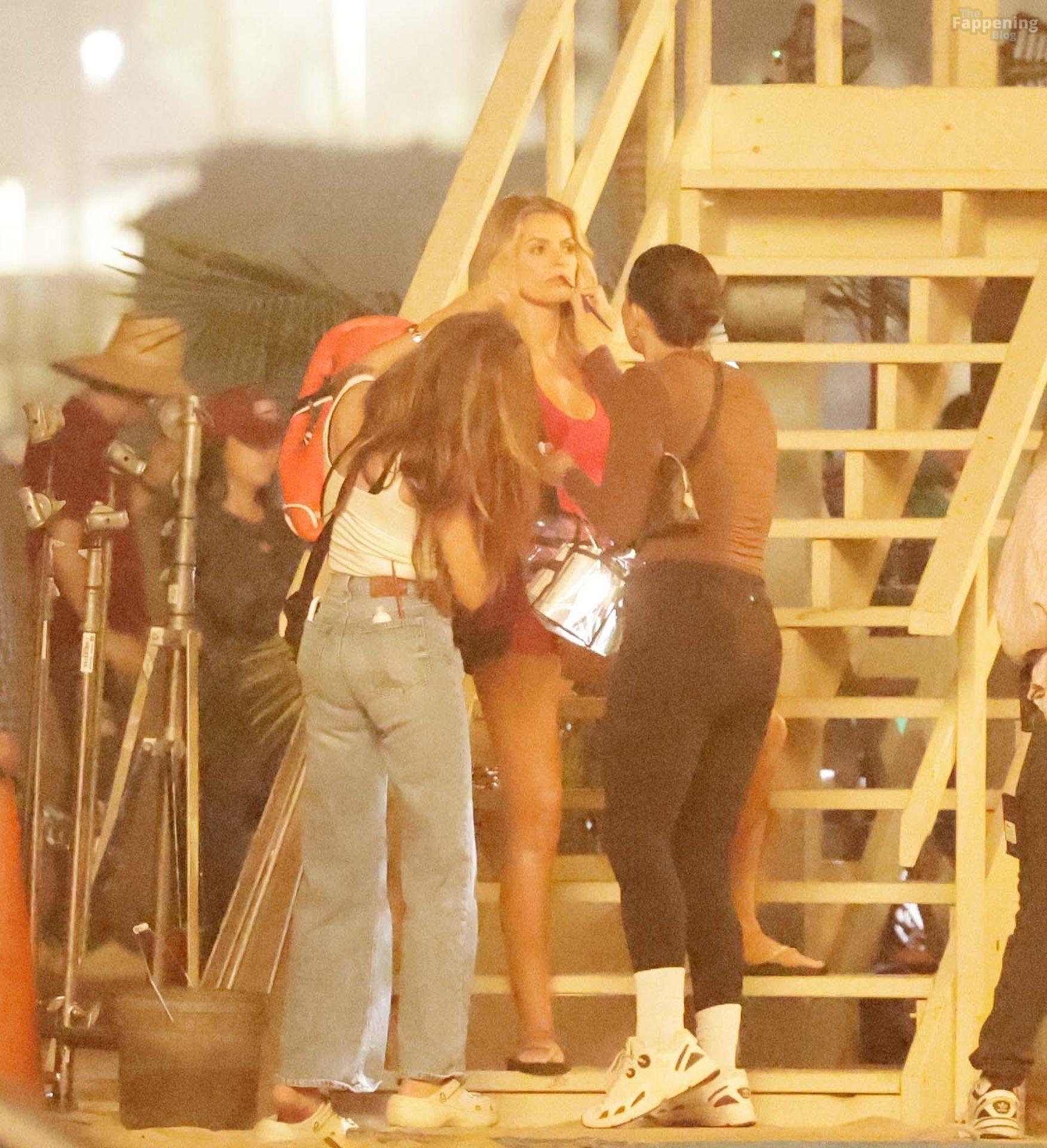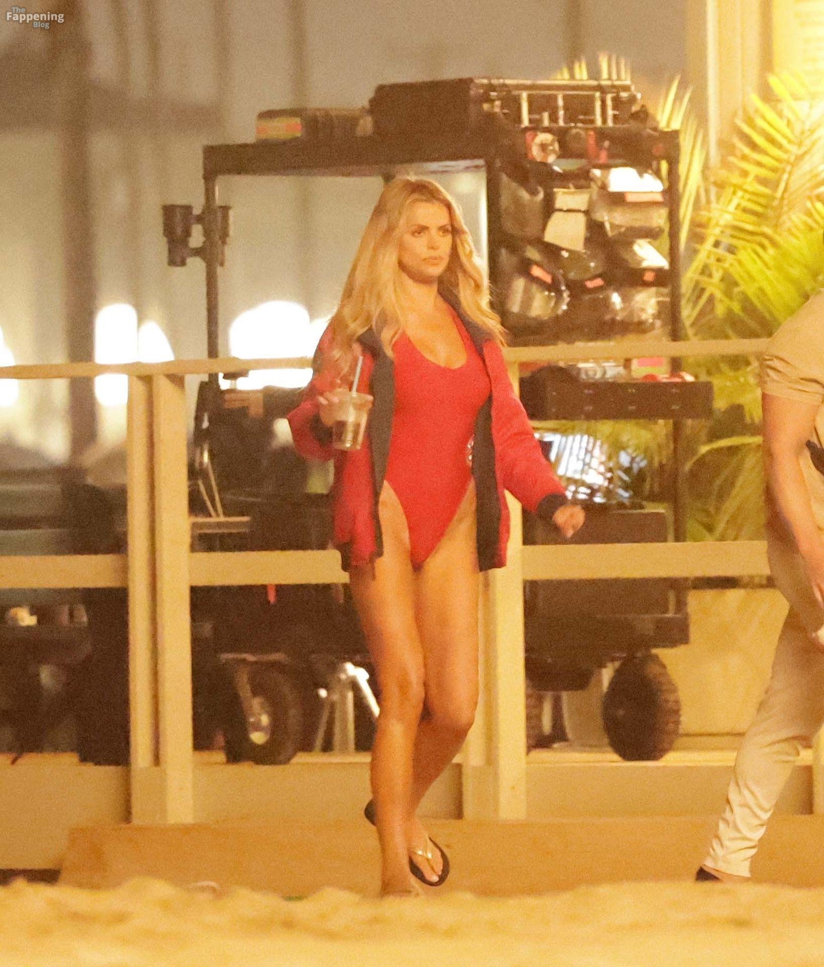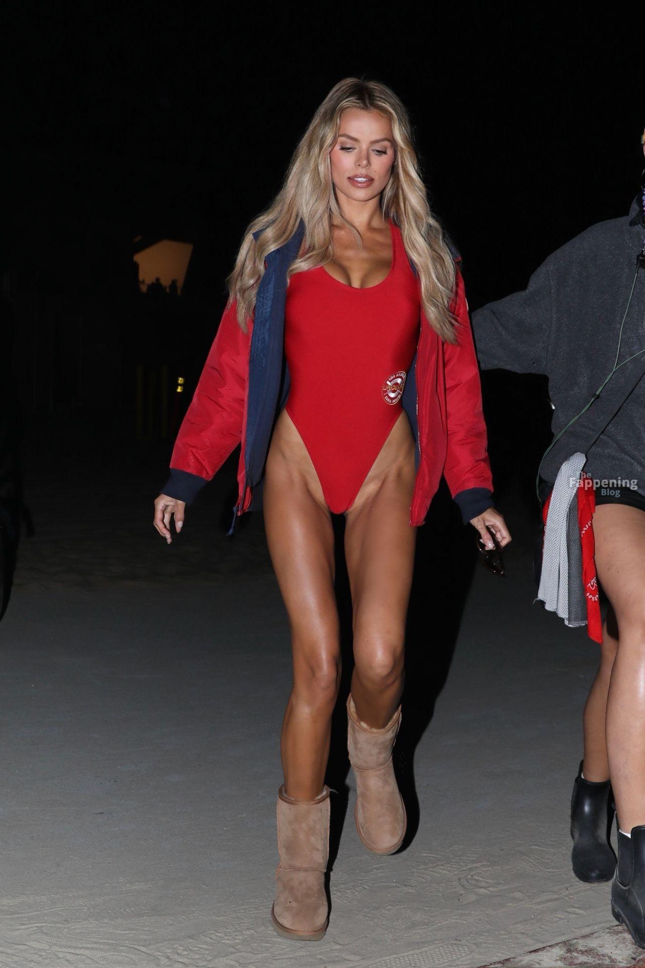 Brooks Nader was spotted on the set of Baywatch in Venice Beach, stepping into the iconic red swimsuit and lifeguard jacket.