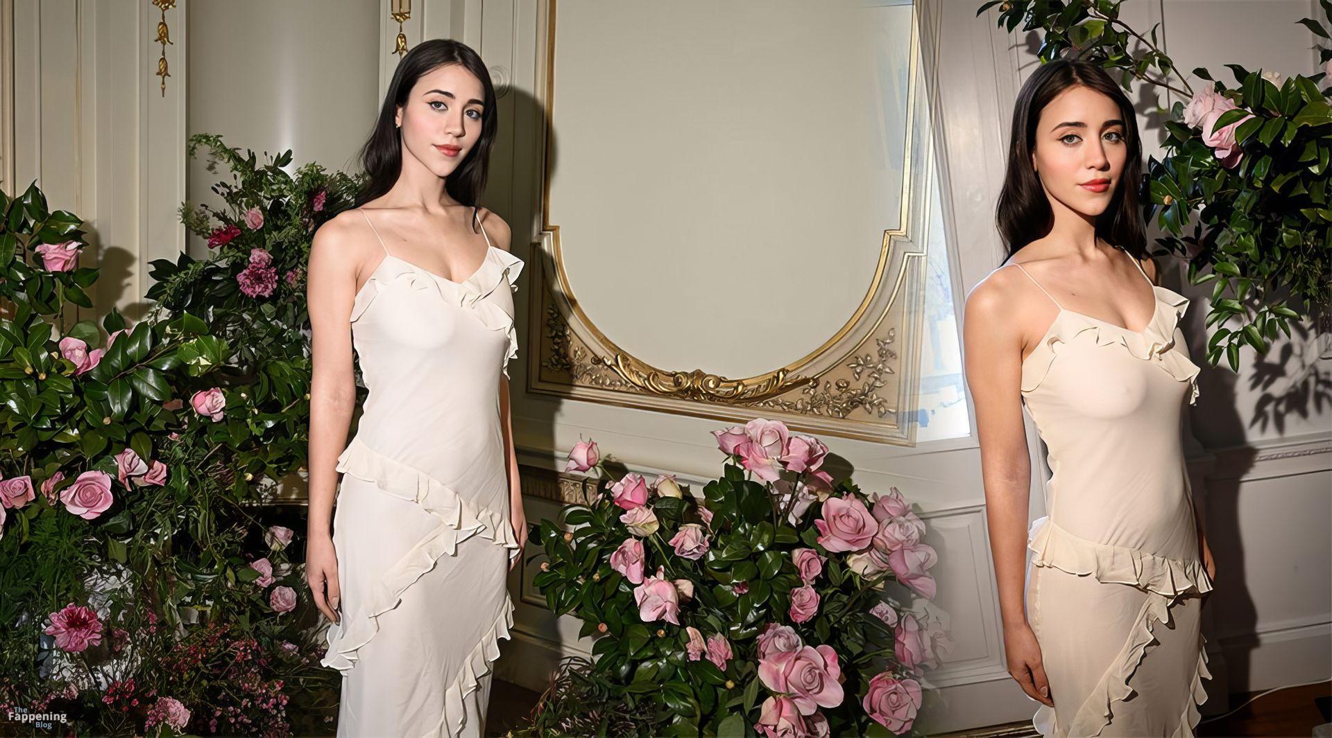Caylee Cowan shows off her pokies as she poses braless, wearin’ a sexy cream dress at the LoveShackFancy event durin’ NYFW.