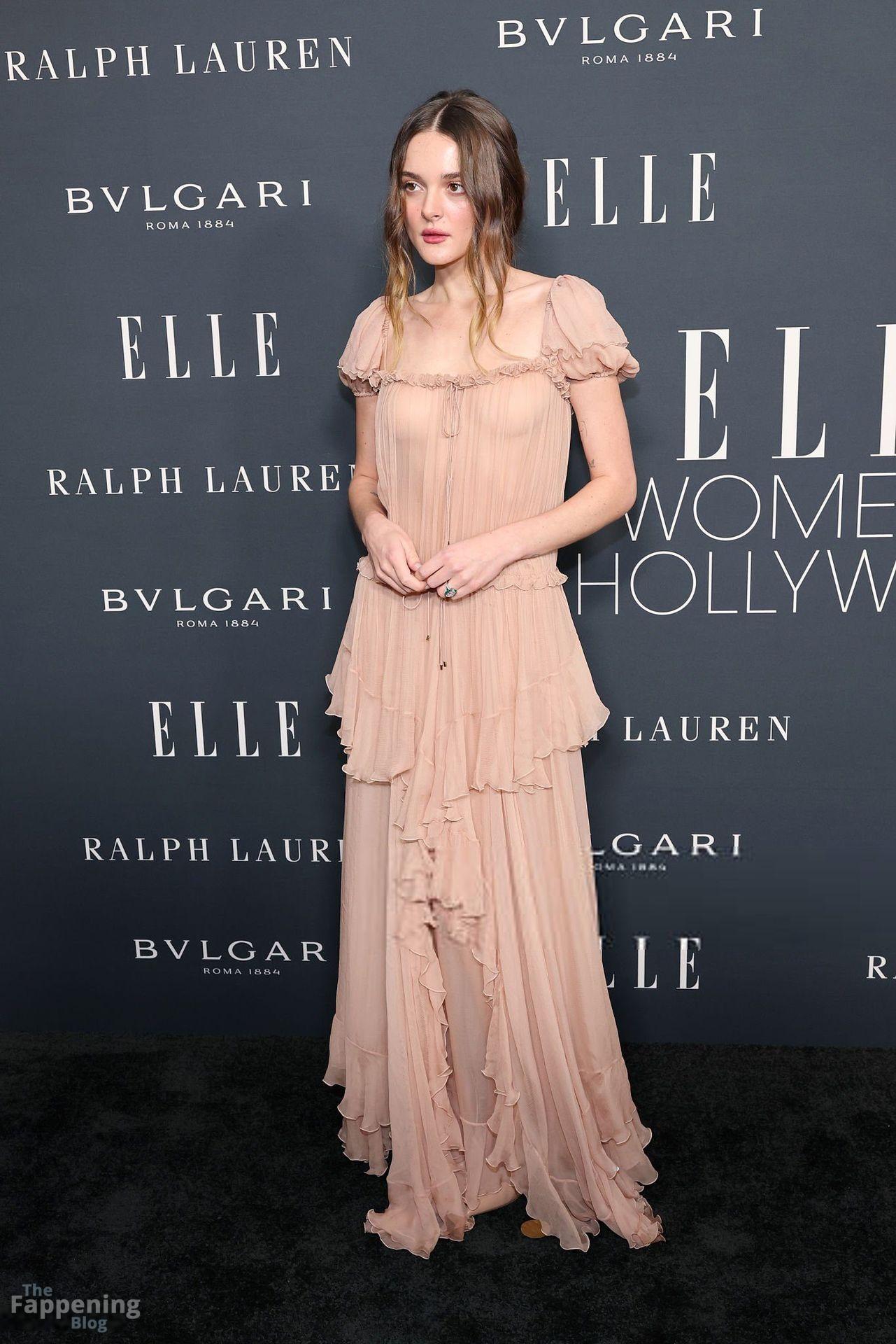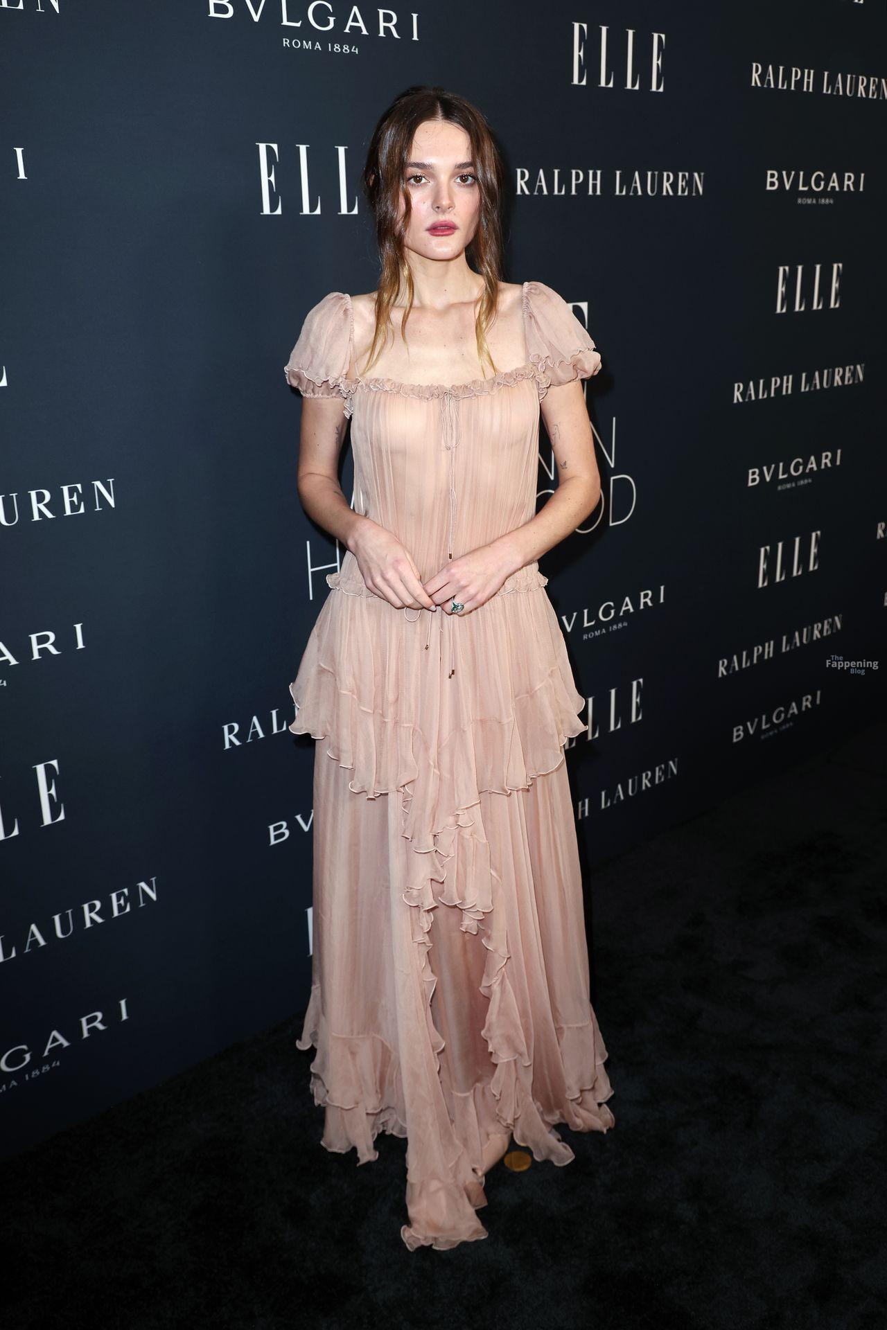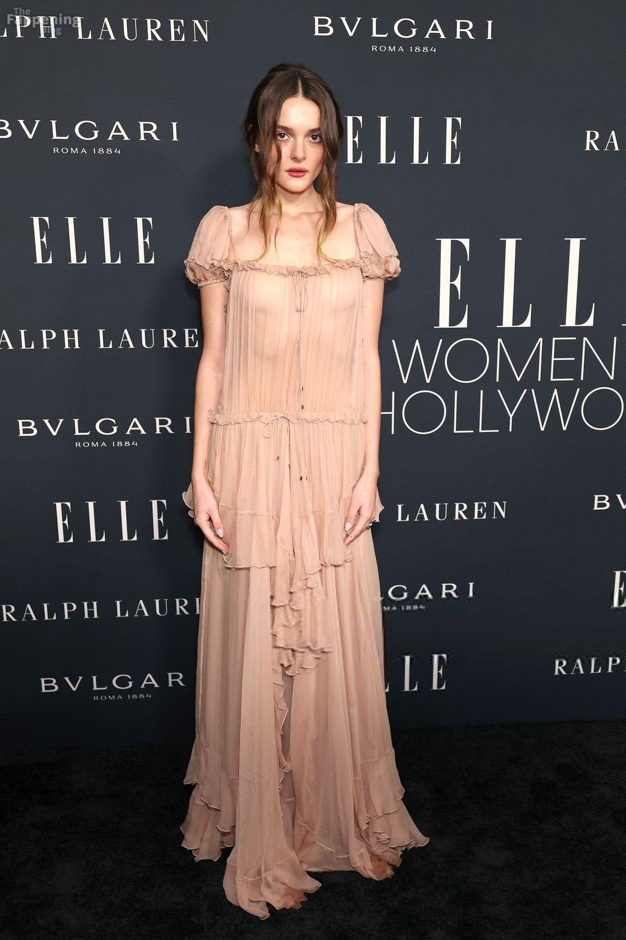Singer Charlotte Lawrence was pictured in a see-through nude dress at ELLE’s 2025 Women in Hollywood Celebration presented by Ralph Lauren and Bvlgari in Los Angeles, California.