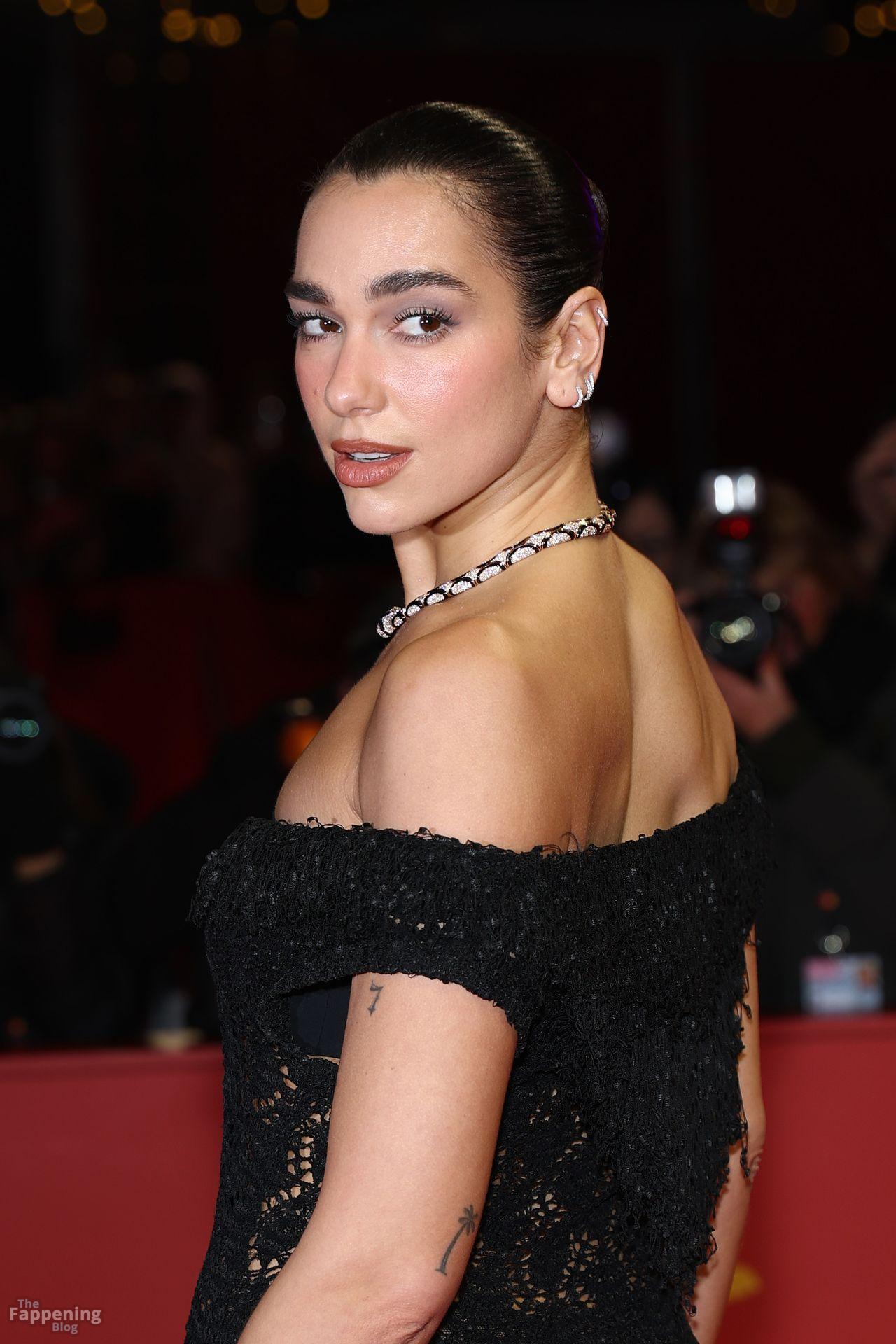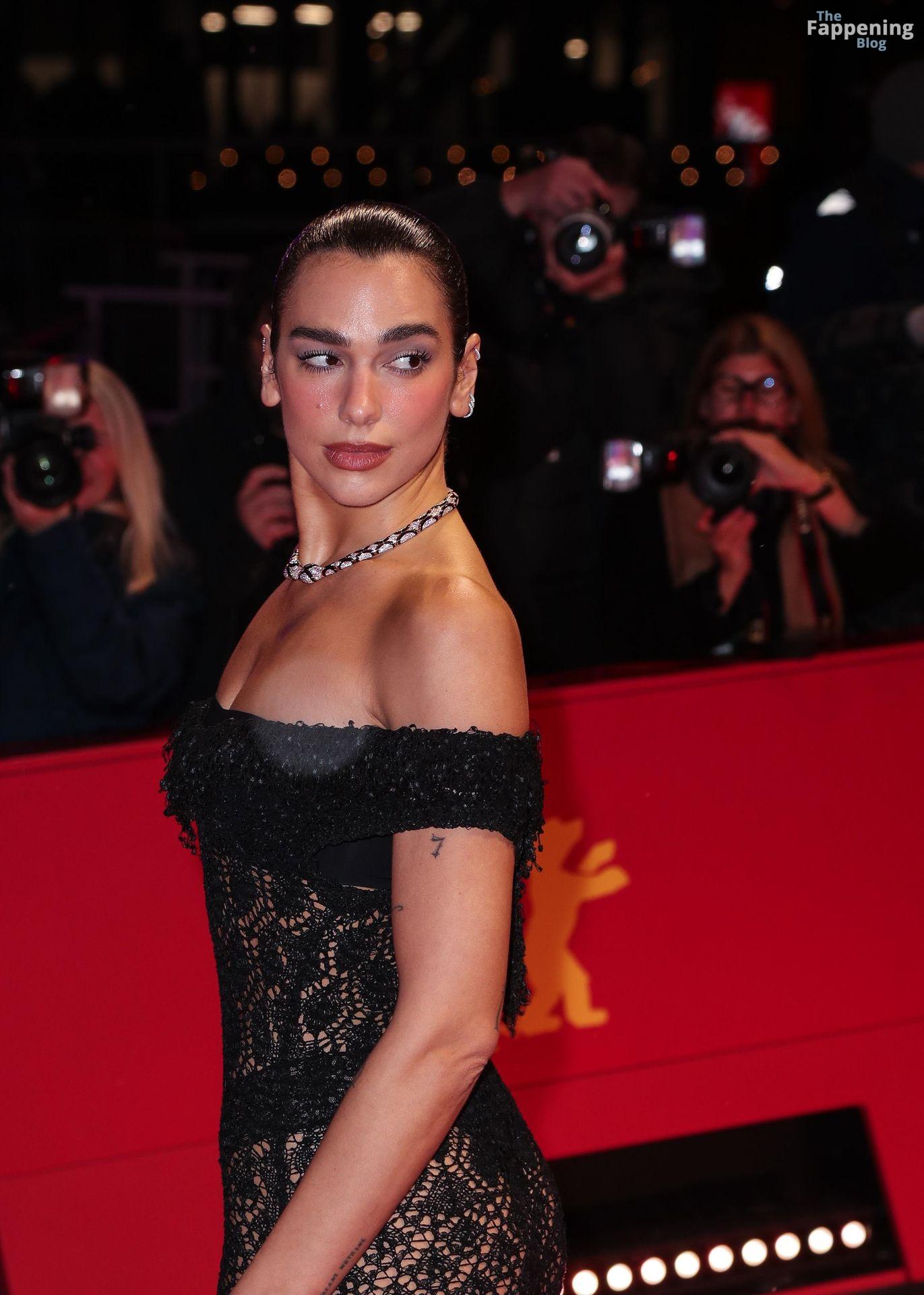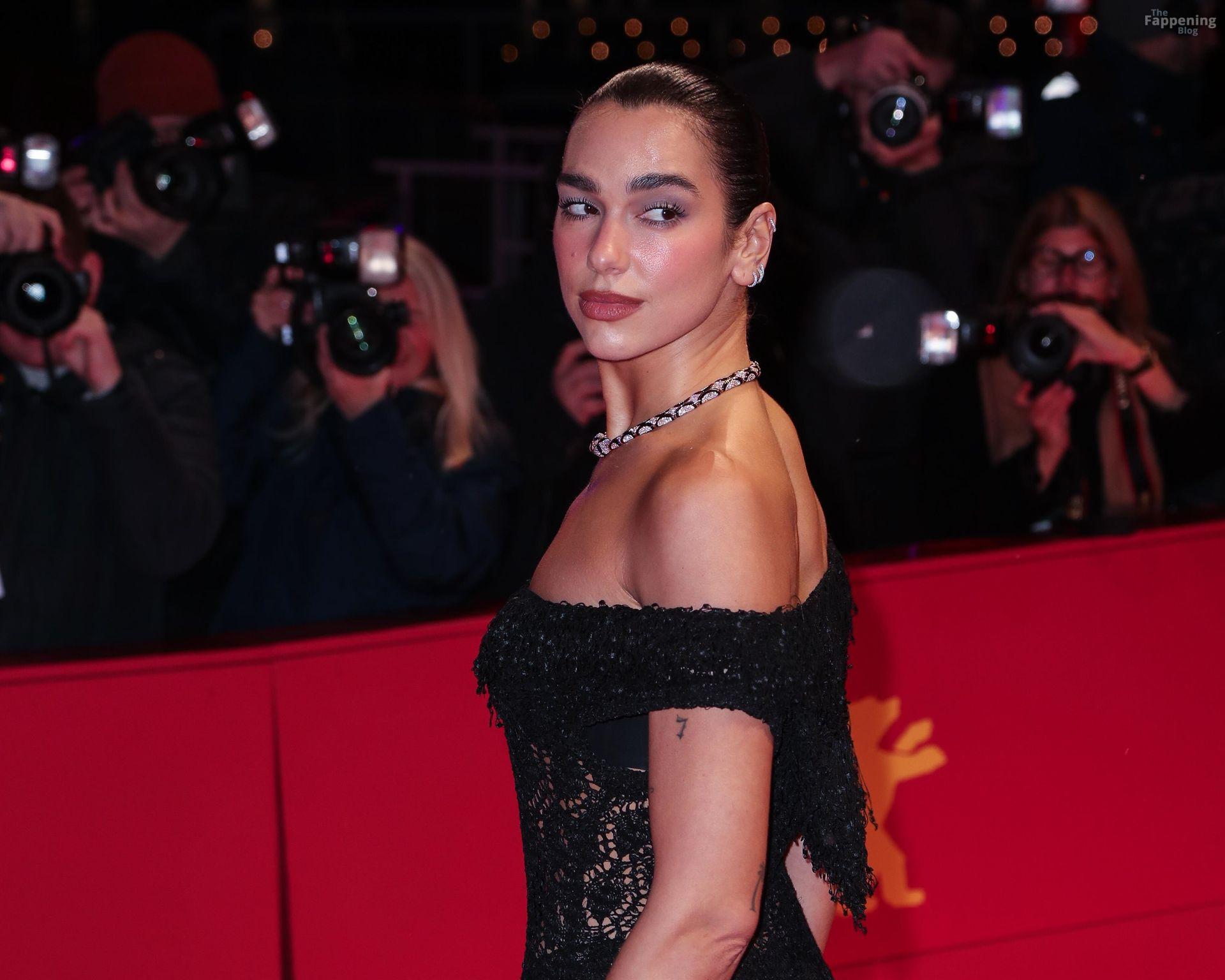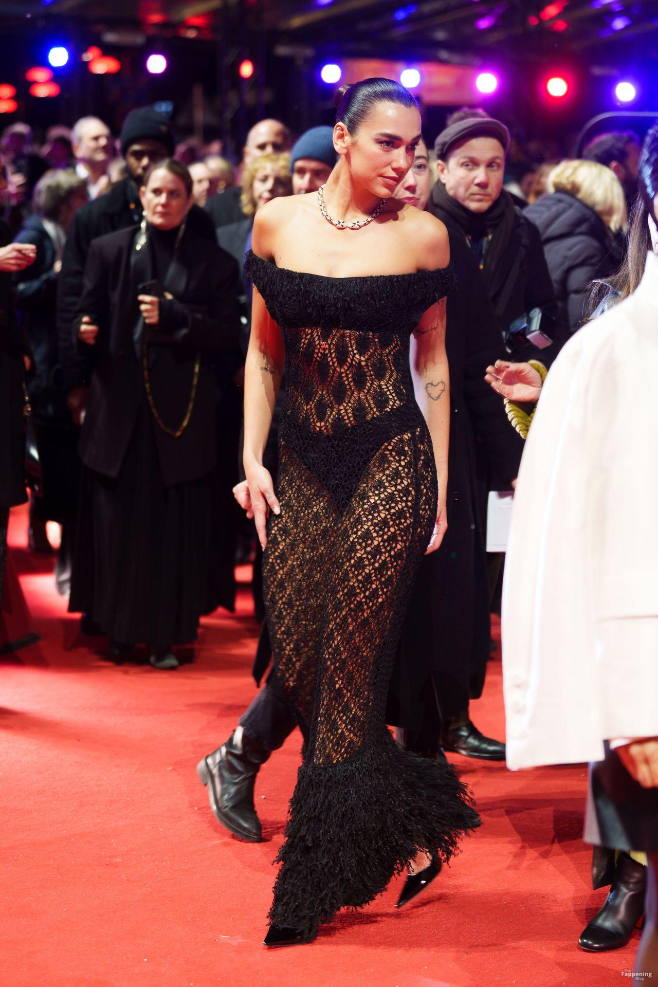 Dua Lipa stuns in a see-through dress as she attends the “Rosebush Pruning” premiere during the 76th Berlinale International Film Festival Berlin at Berlinale Palast in Berlin, Germany.