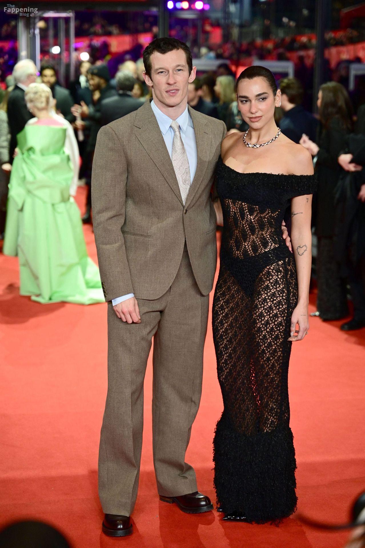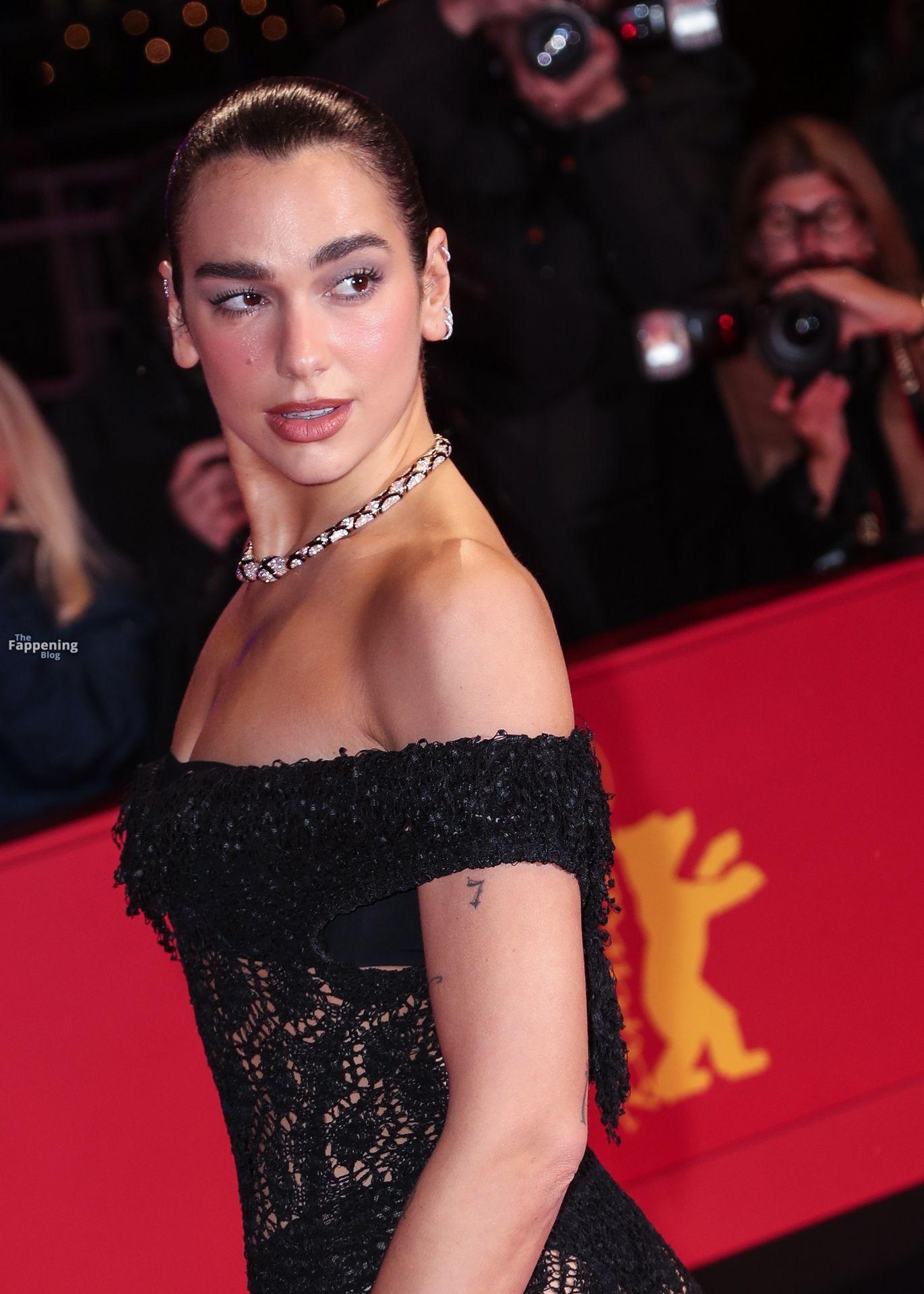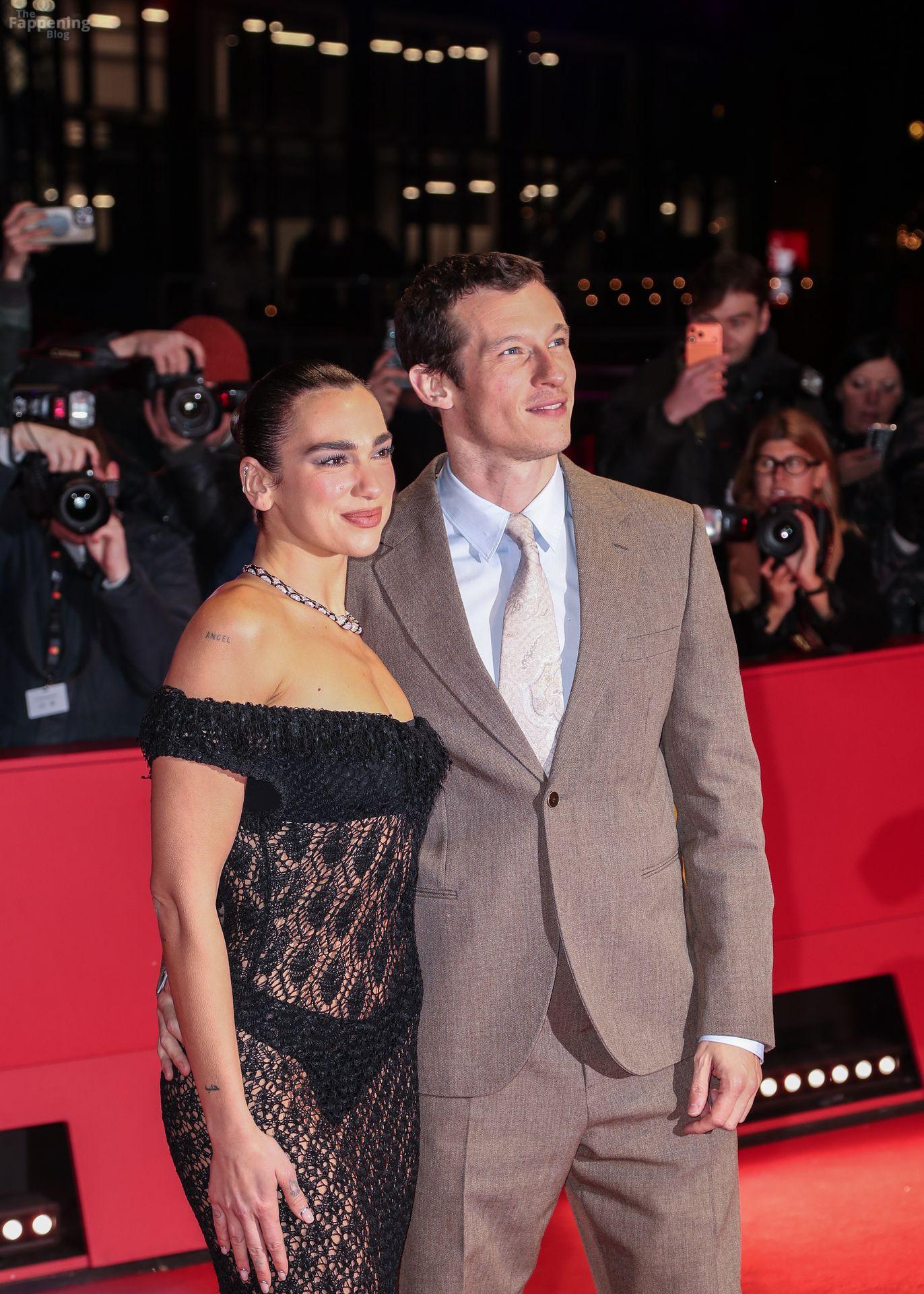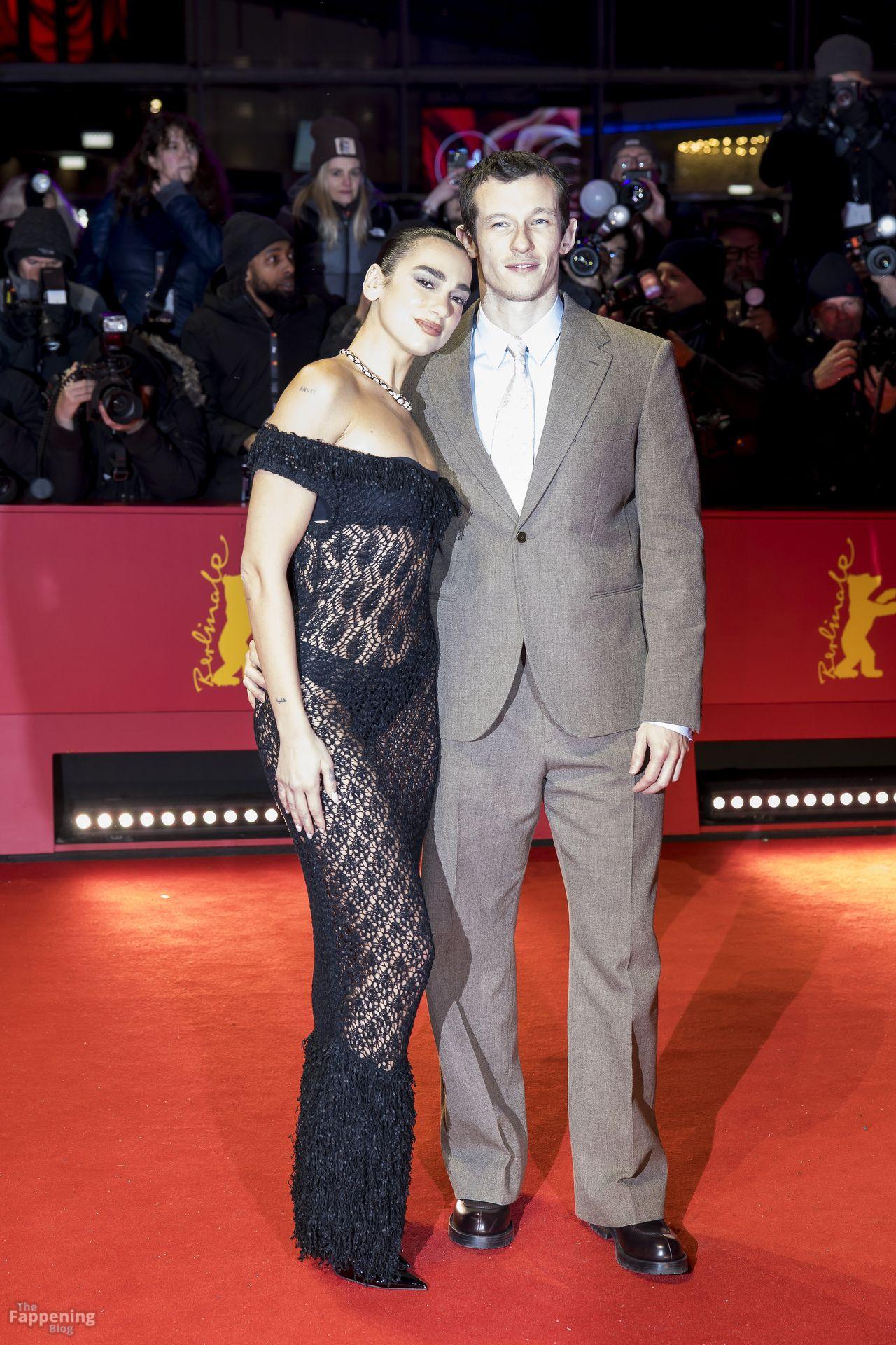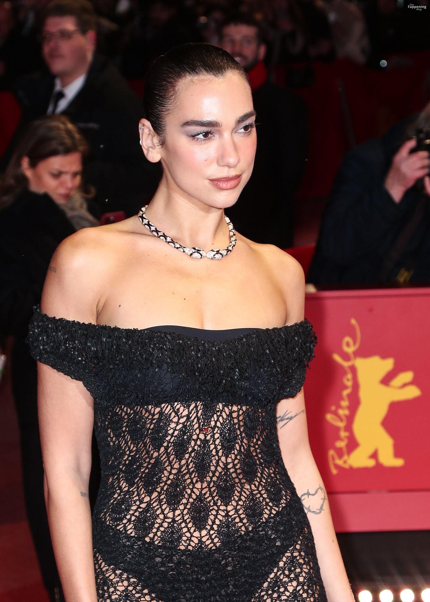 Dua Lipa stuns in a see-through dress as she attends the “Rosebush Pruning” premiere during the 76th Berlinale International Film Festival Berlin at Berlinale Palast in Berlin, Germany.