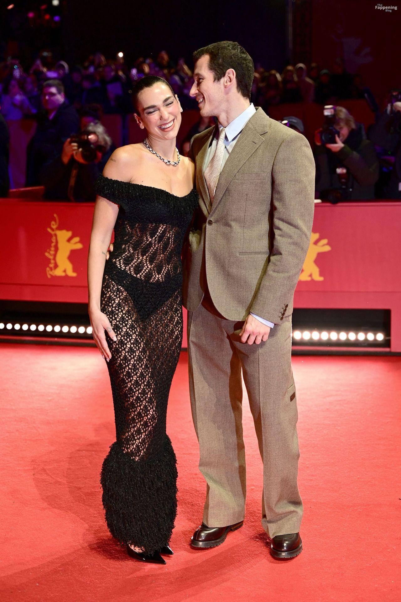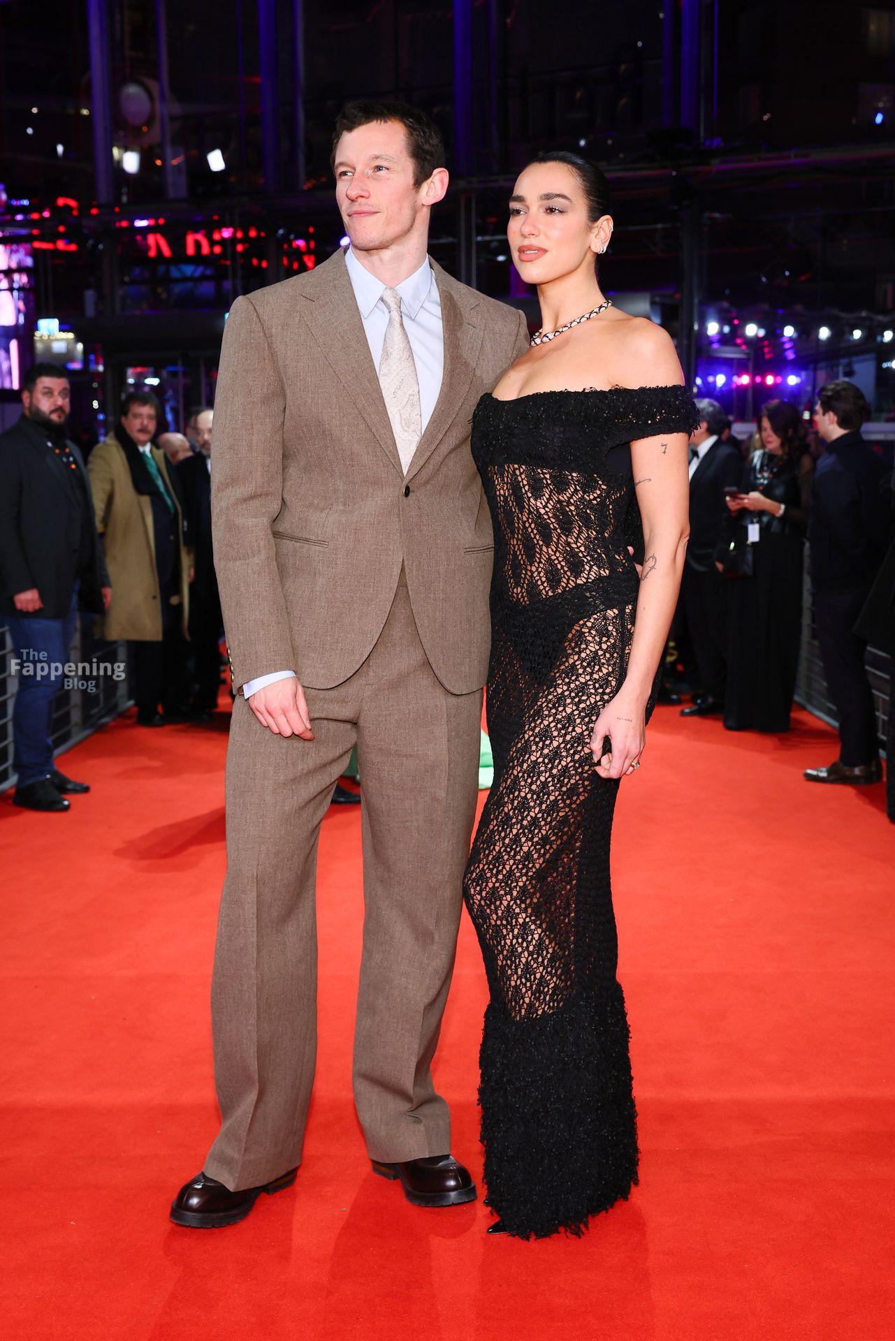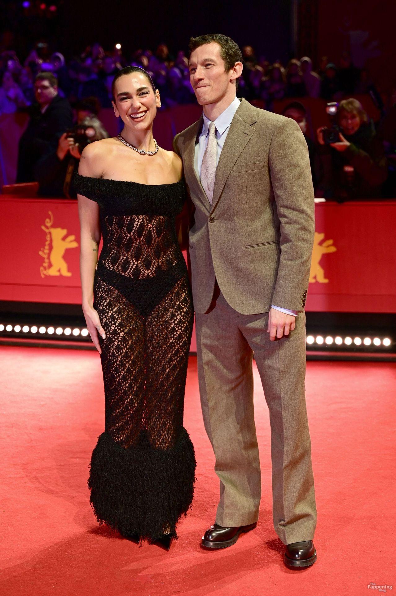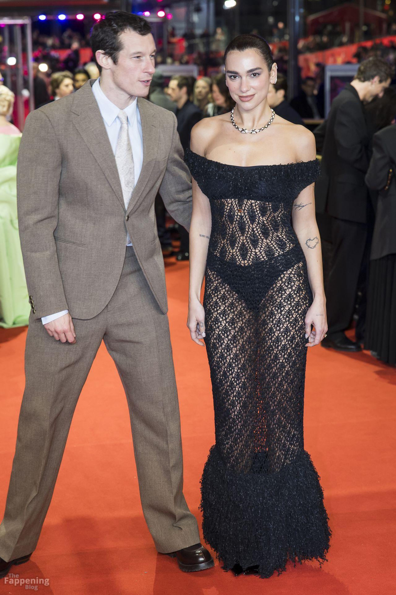 Dua Lipa stuns in a see-through dress as she attends the “Rosebush Pruning” premiere during the 76th Berlinale International Film Festival Berlin at Berlinale Palast in Berlin, Germany.