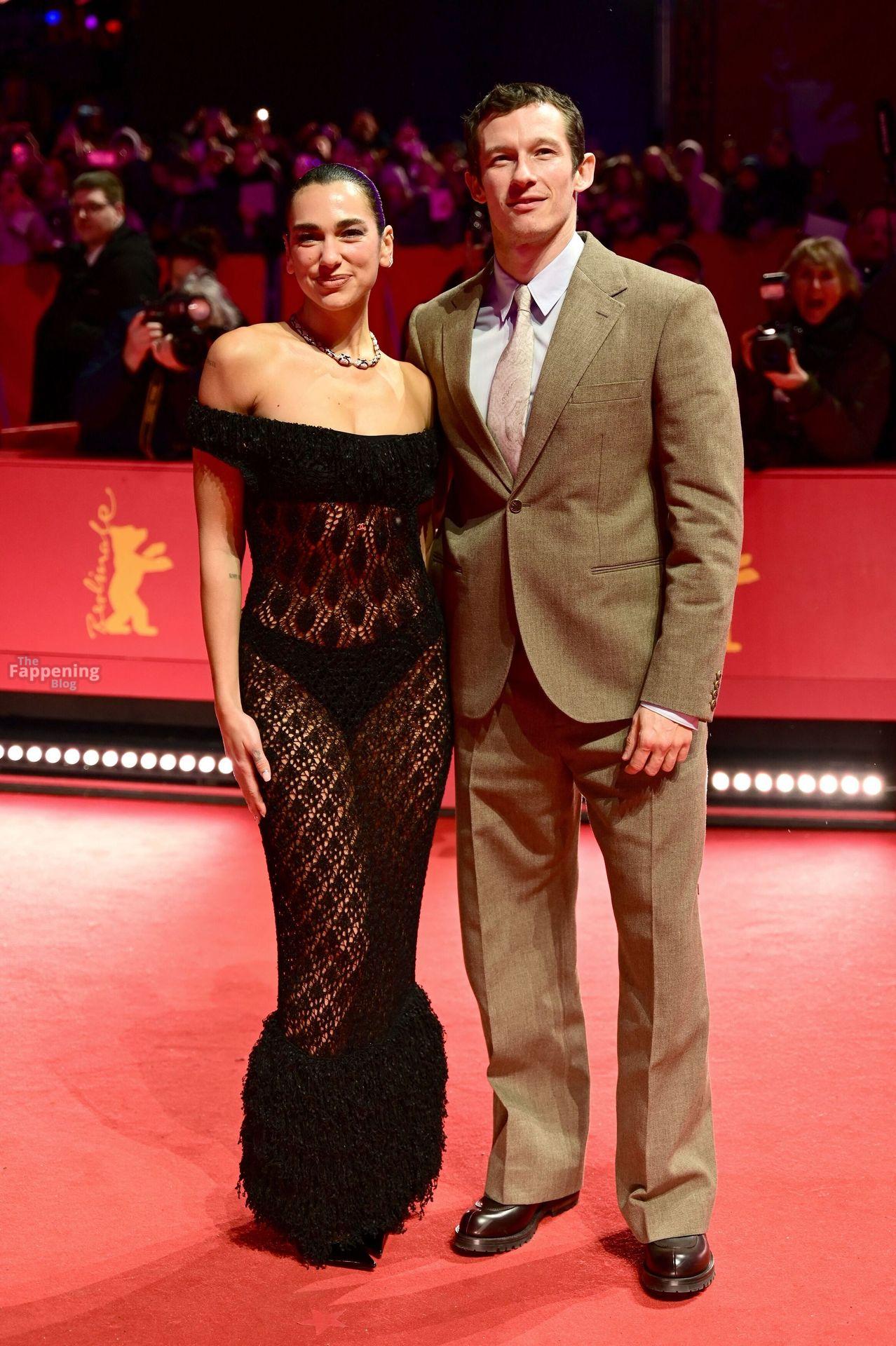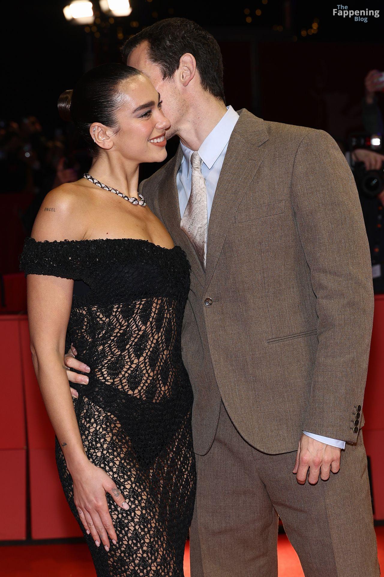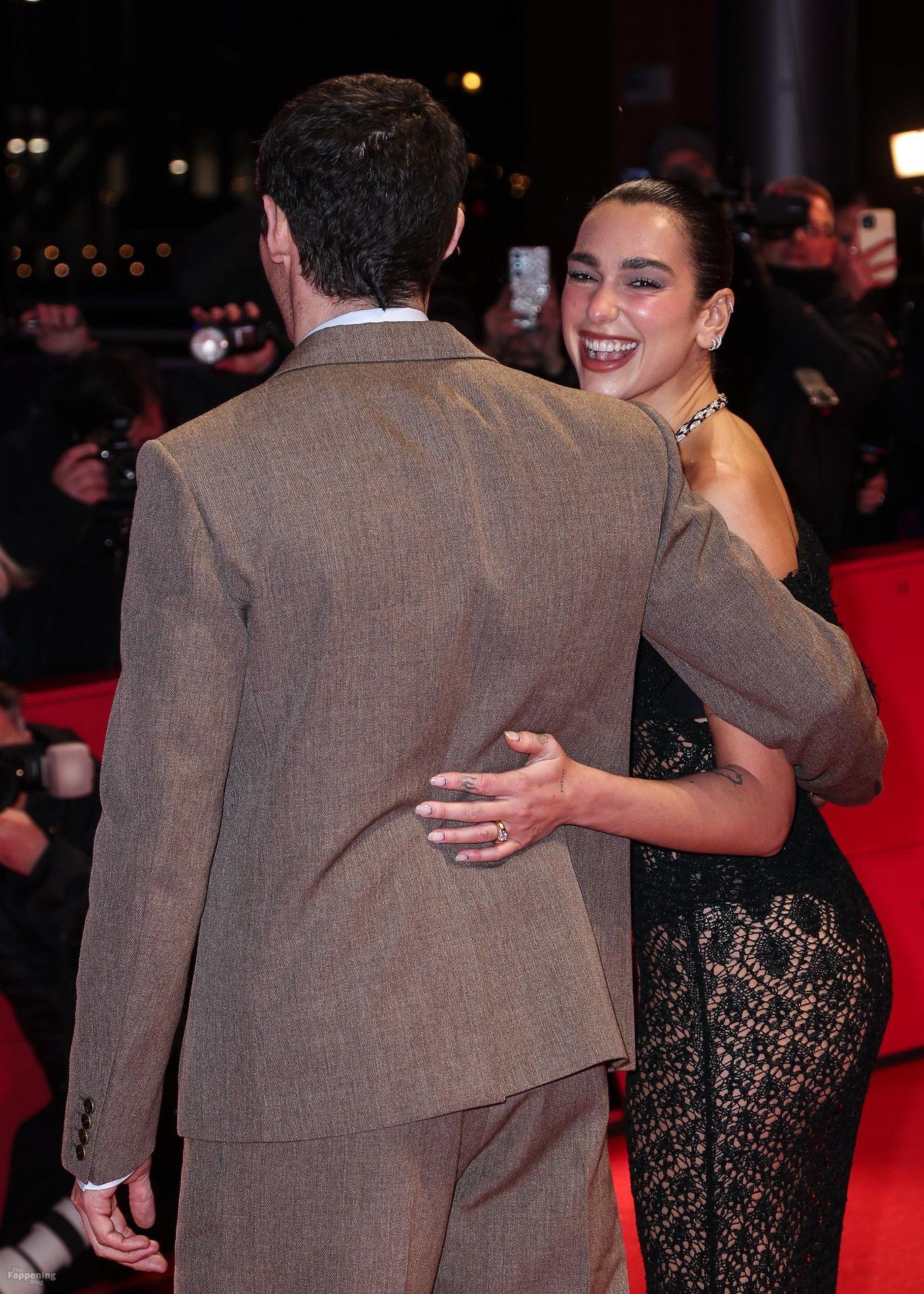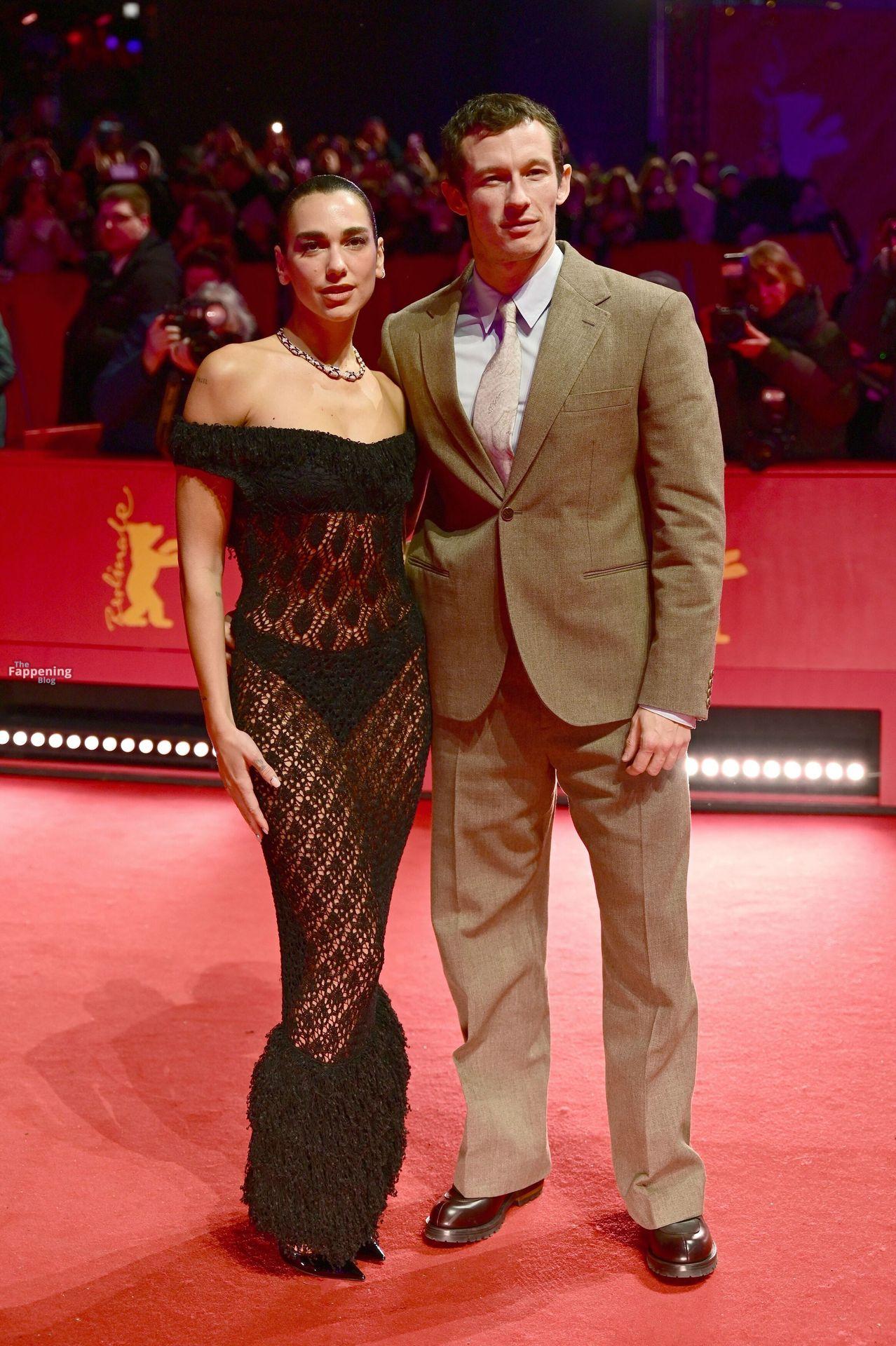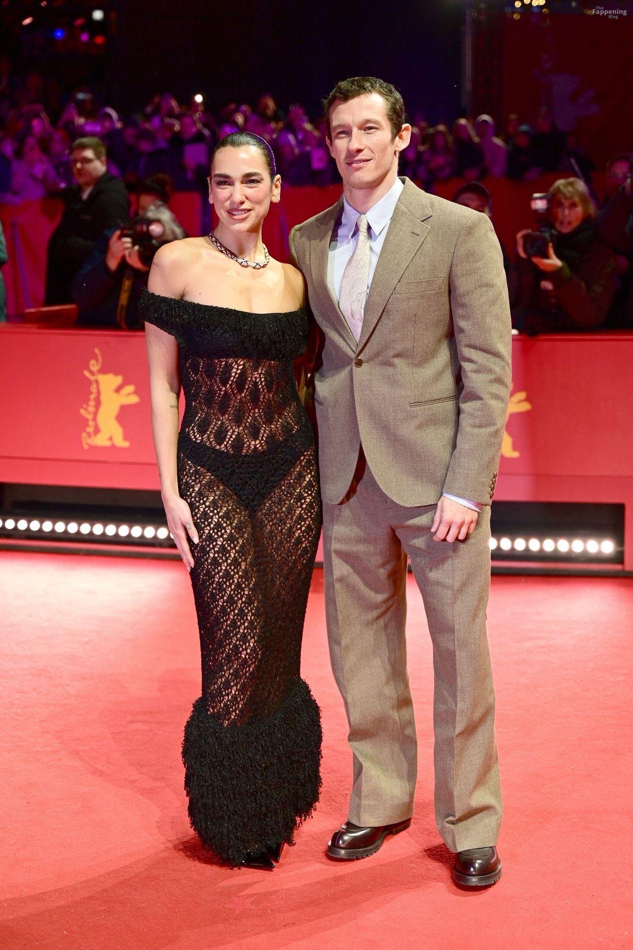 Dua Lipa stuns in a see-through dress as she attends the “Rosebush Pruning” premiere during the 76th Berlinale International Film Festival Berlin at Berlinale Palast in Berlin, Germany.