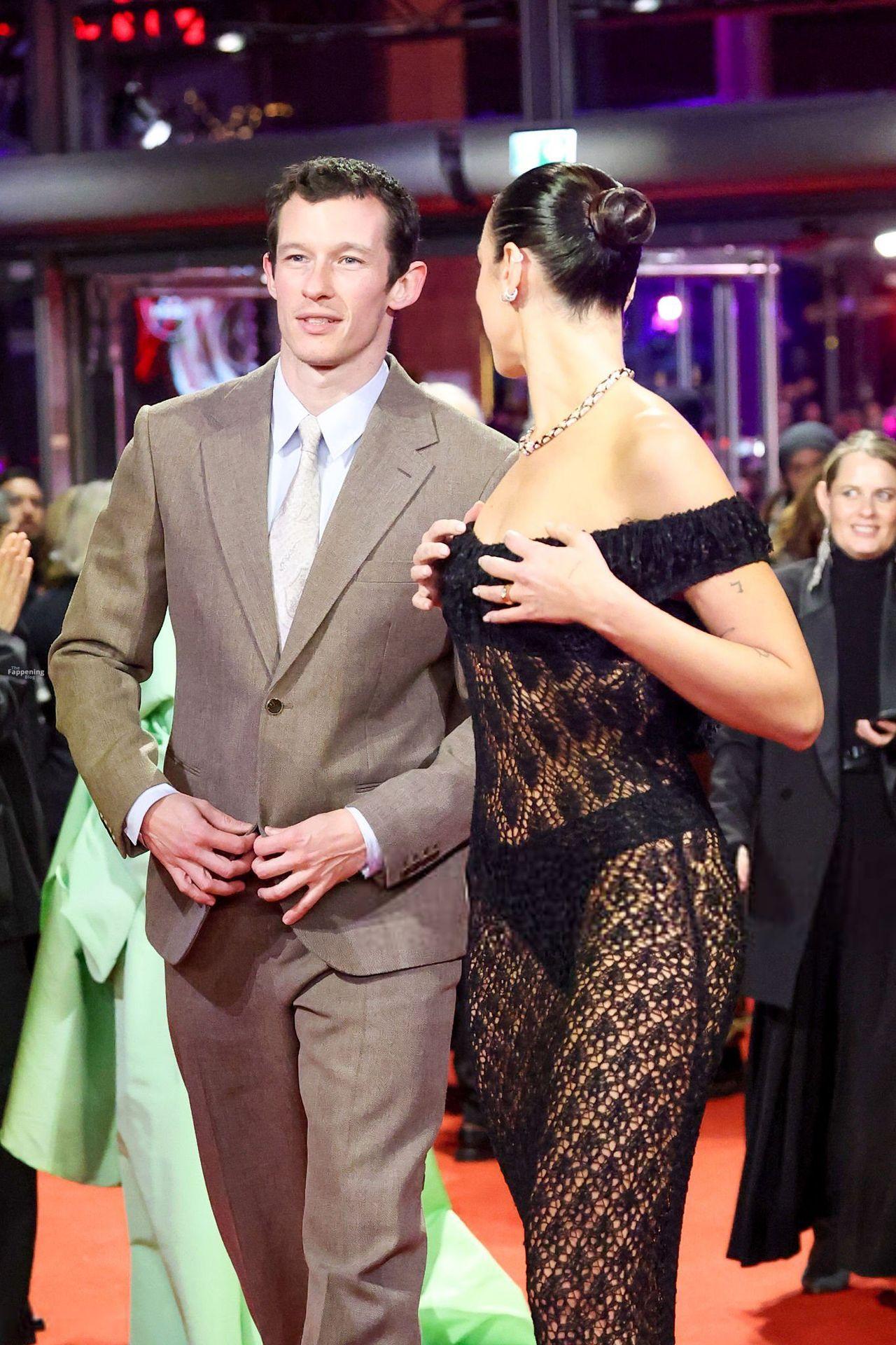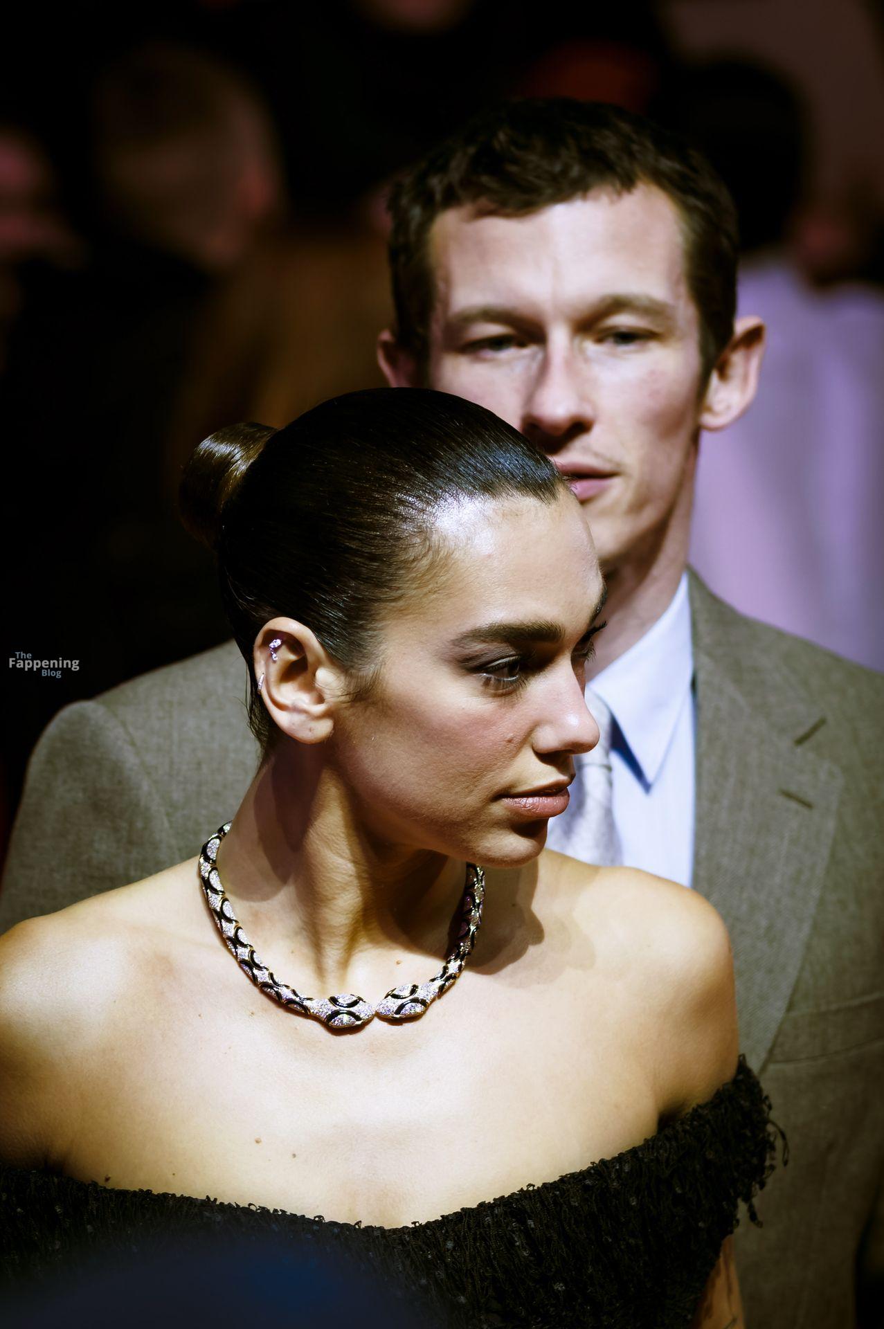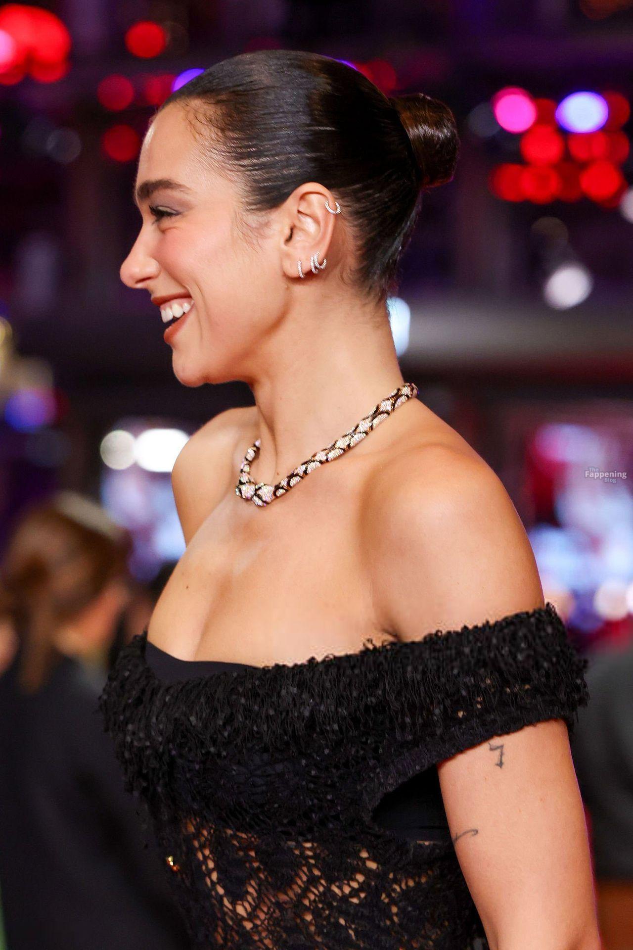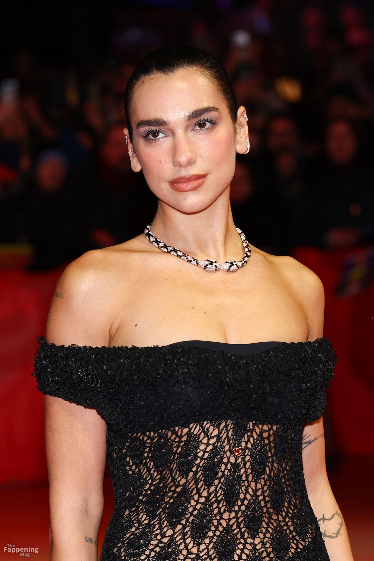 Dua Lipa stuns in a see-through dress as she attends the “Rosebush Pruning” premiere during the 76th Berlinale International Film Festival Berlin at Berlinale Palast in Berlin, Germany.