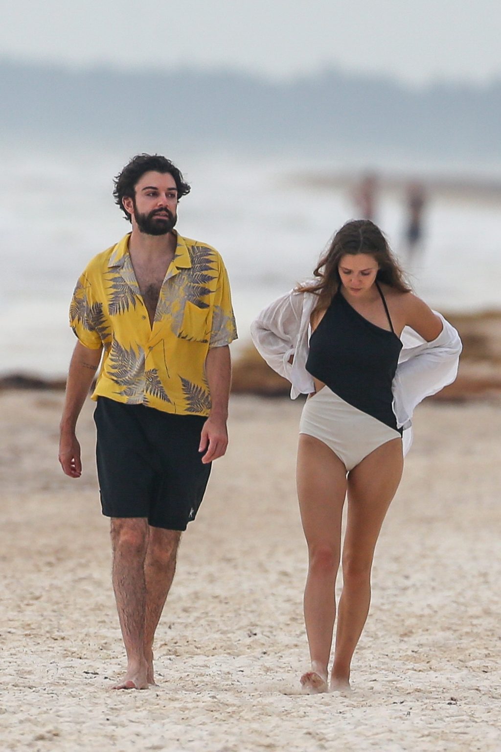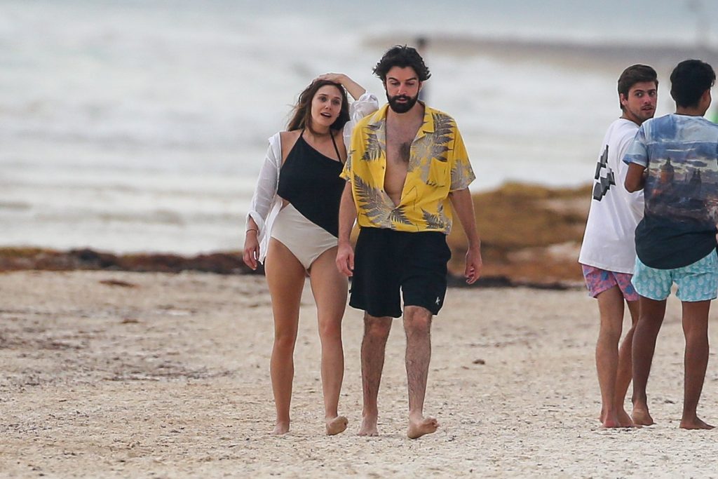 American actress Elizabeth Olsen (29) was noticed sporting a black and white swimsuit with boyfriend Robbie Arnett on the beach in Mexico, 07/28/2018.