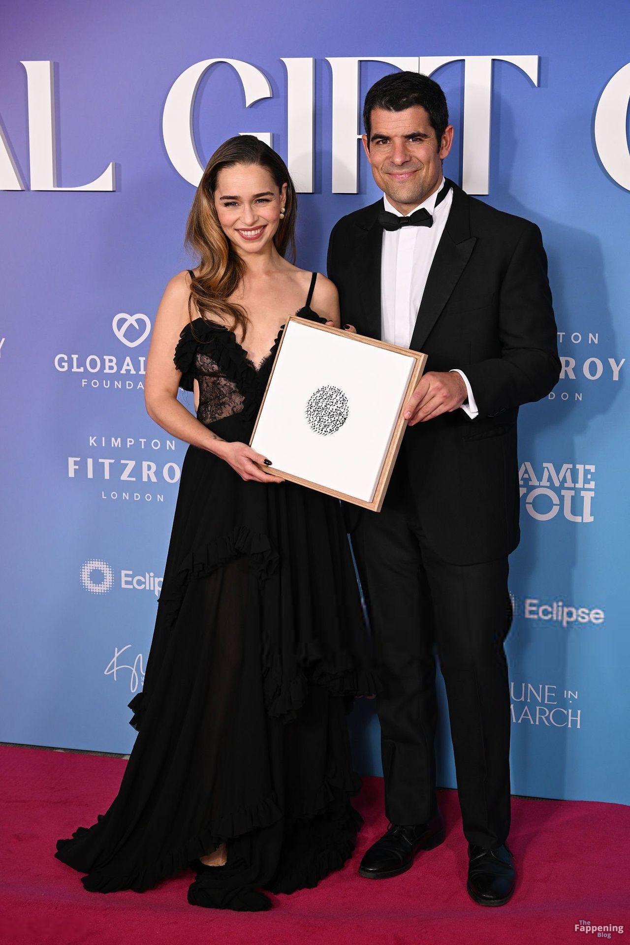 Actress Emilia Clarke stunned on the red carpet at the Global Gift Gala London 2025 in a sheer lace gown.