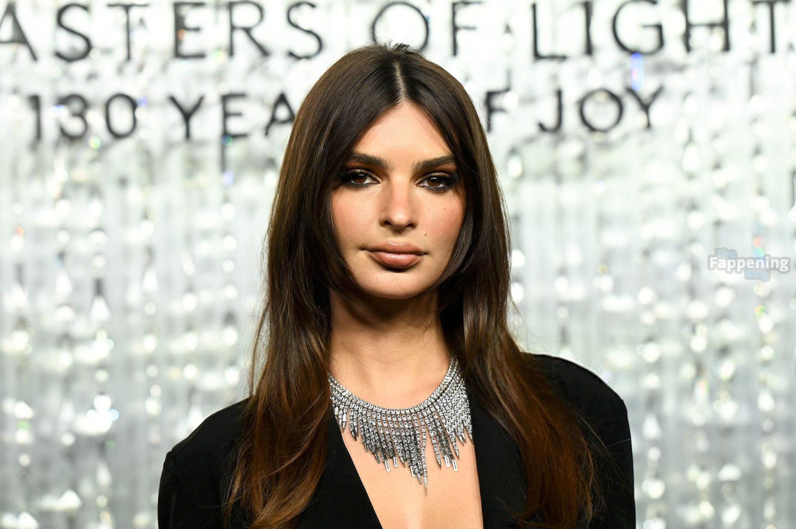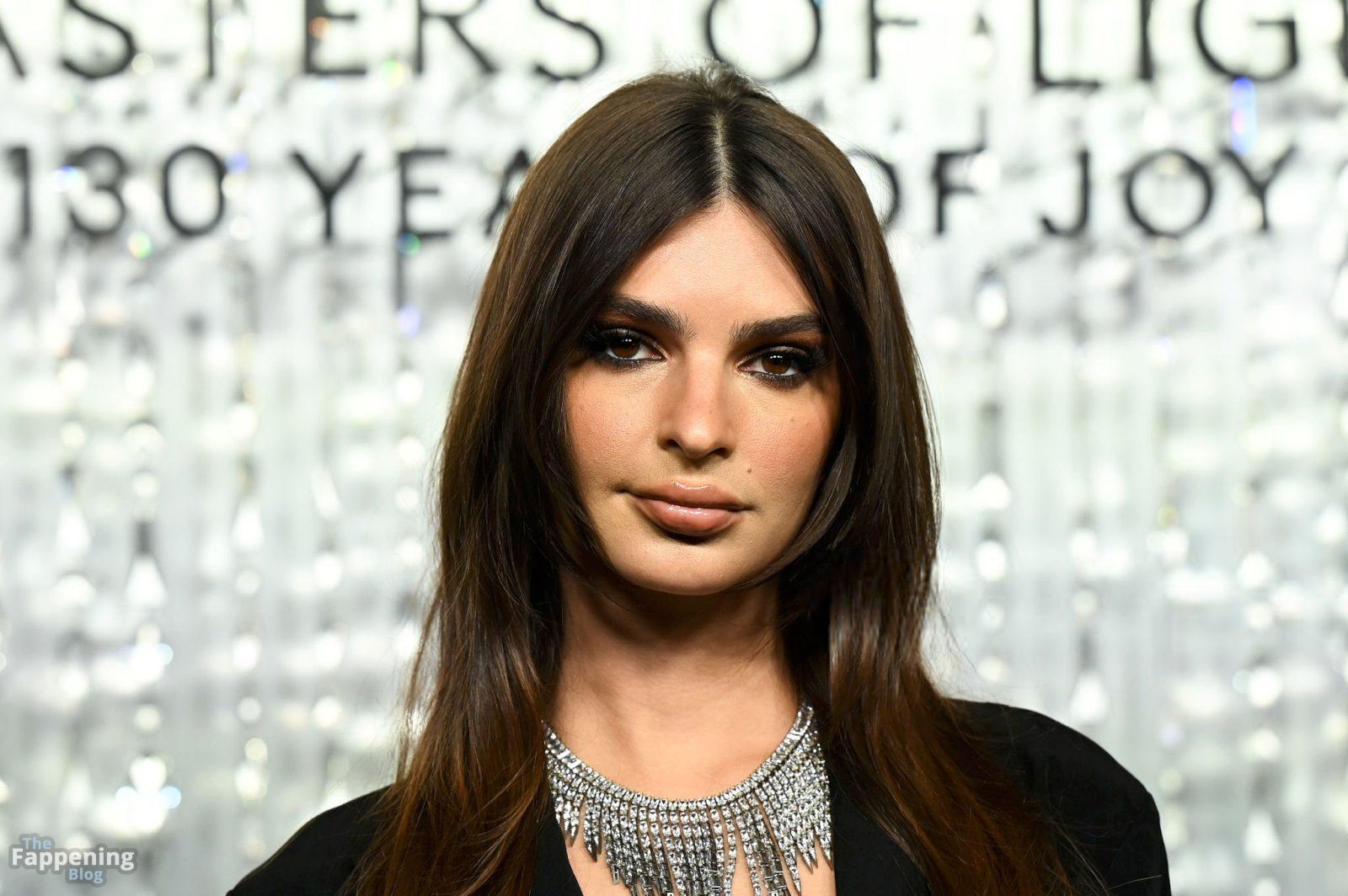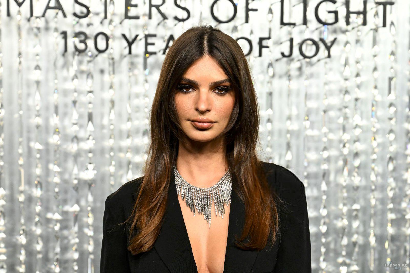 Supermodel Emily Ratajkowski let her bare breasts and thighs take center stage in a blazer at the opening of Swarovski’s Masters of Light – 130 Years of Joy Exhibition in Hollywood.