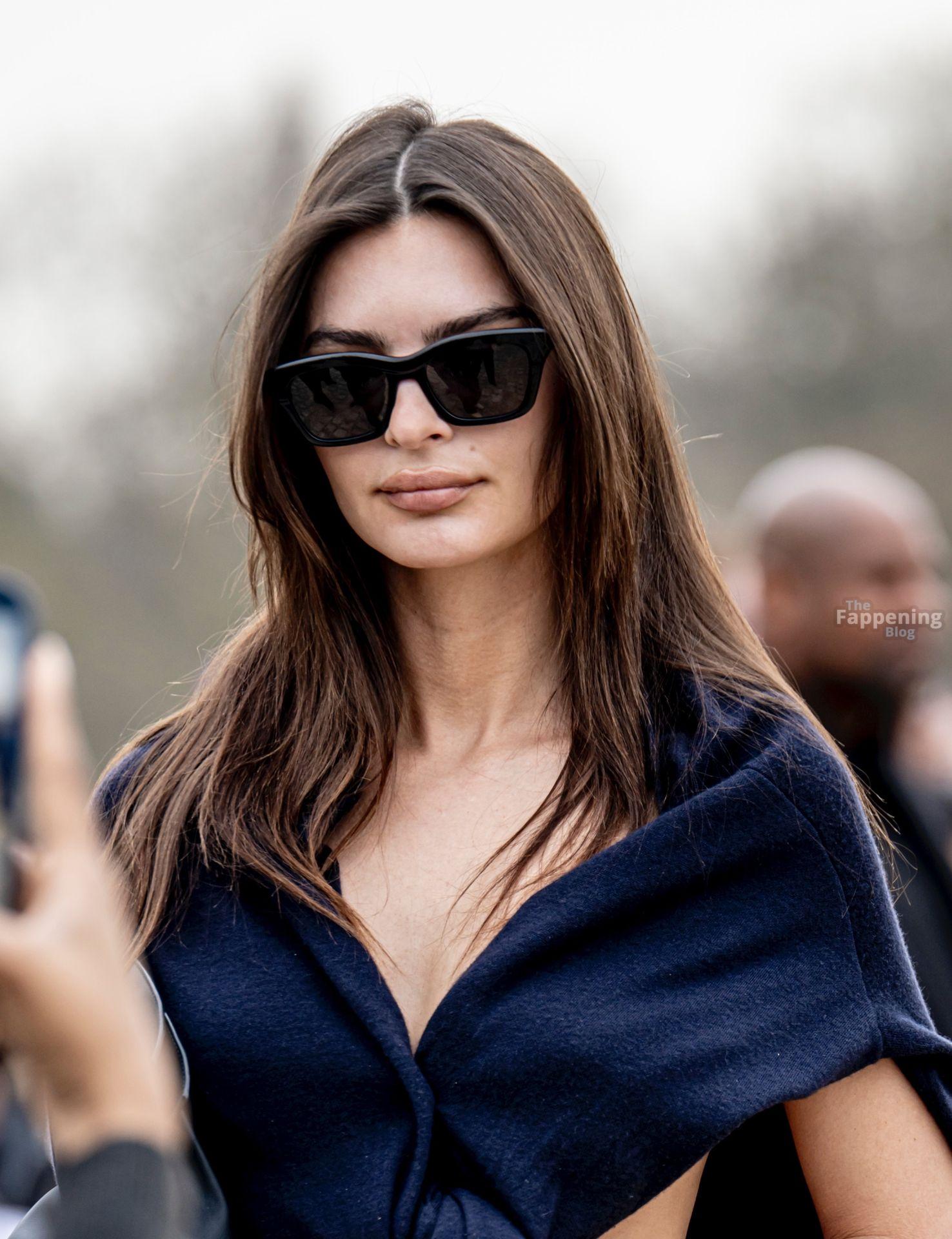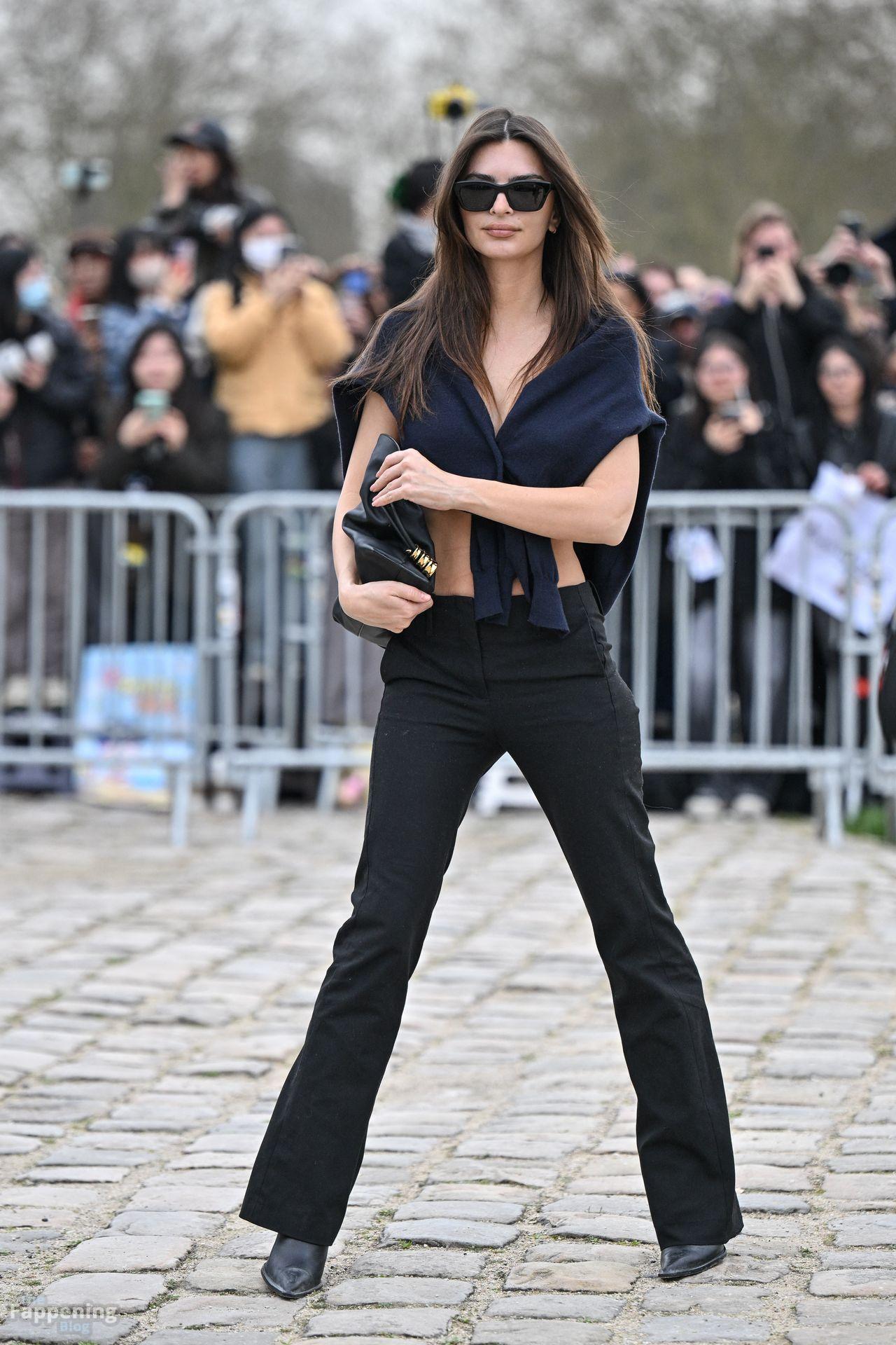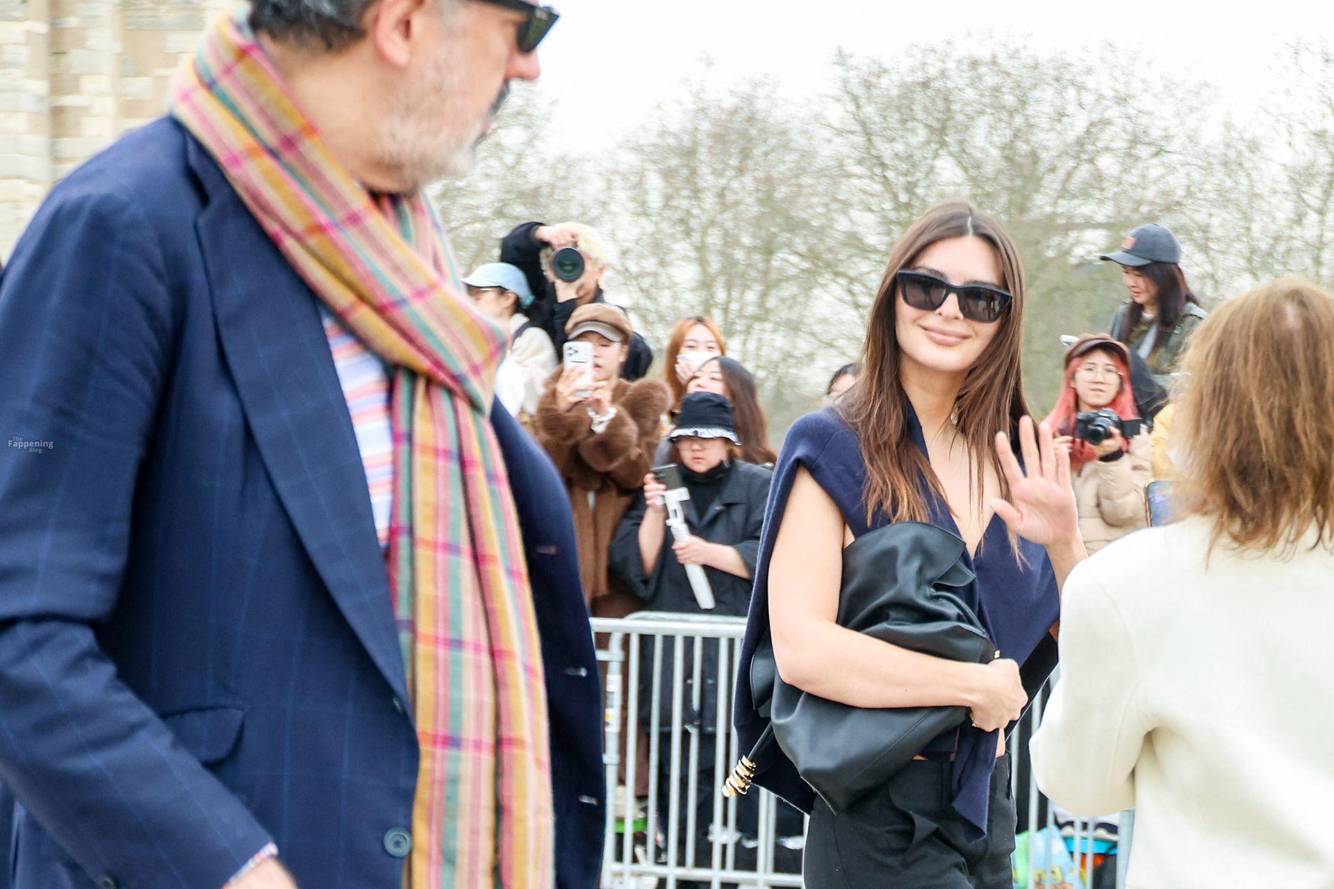 Emily Ratajkowski goes braless, flauntin’ her underboob while arrivin’ at the Loewe show during Fashion Week in Paris, France.