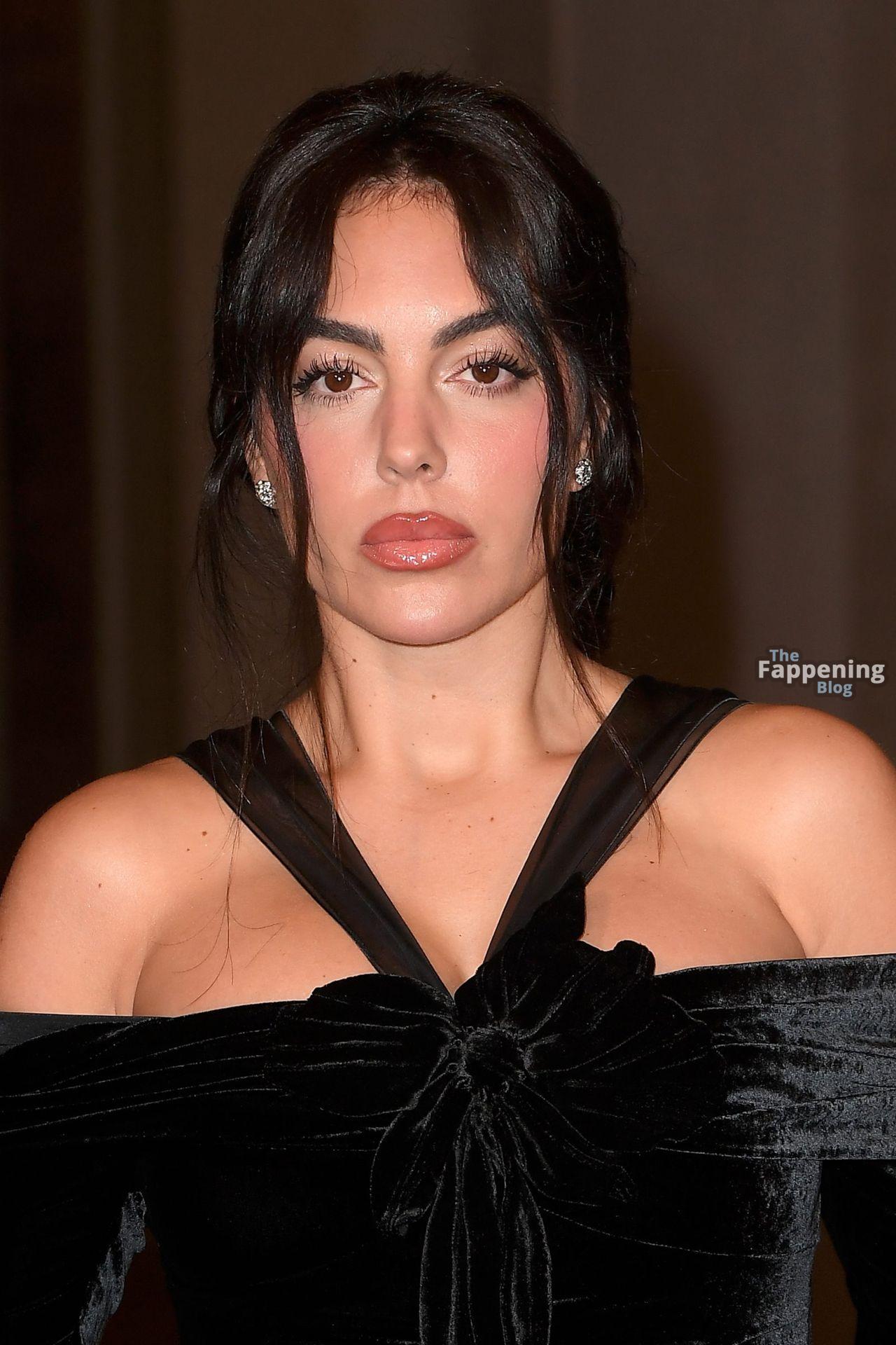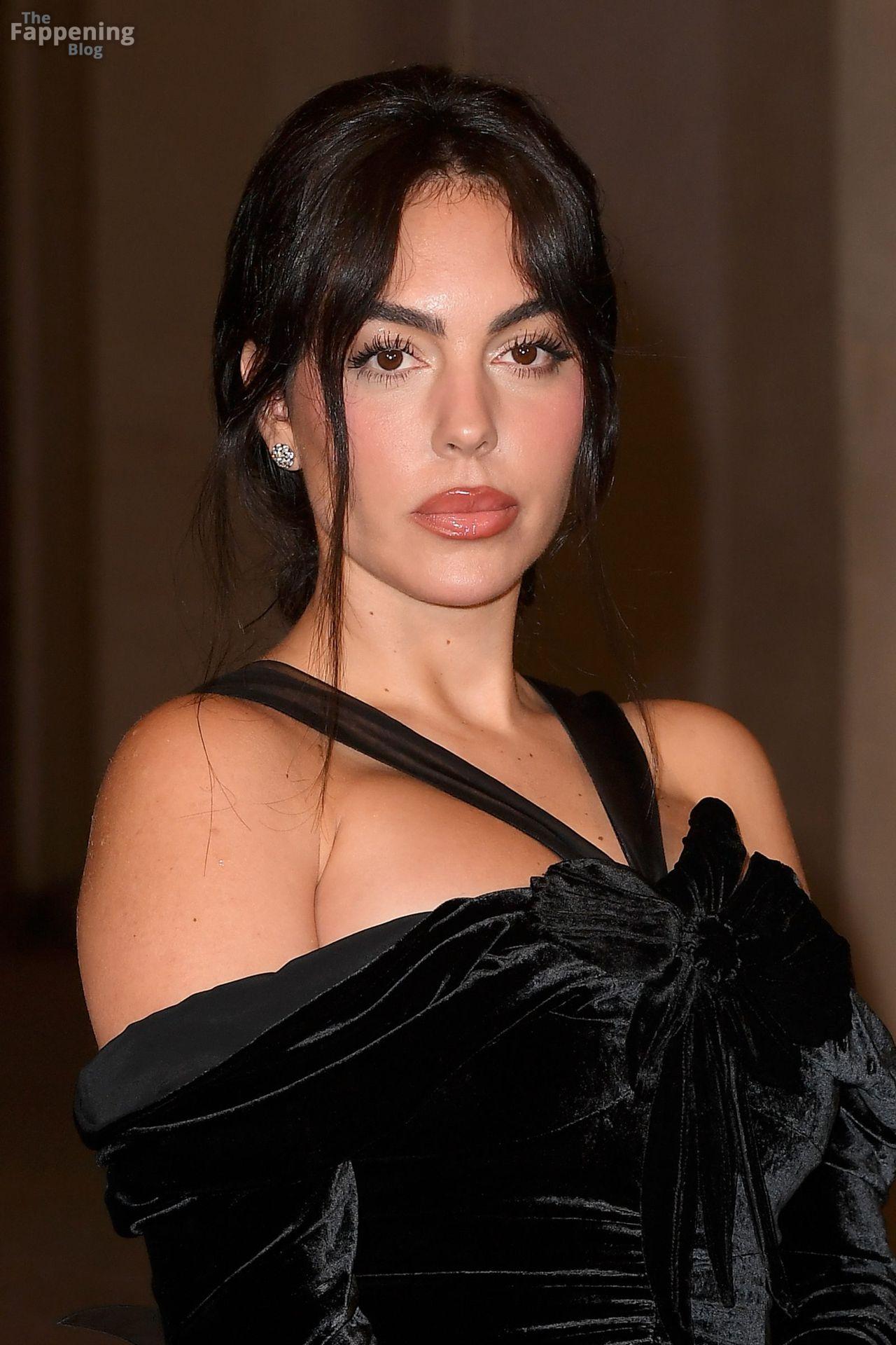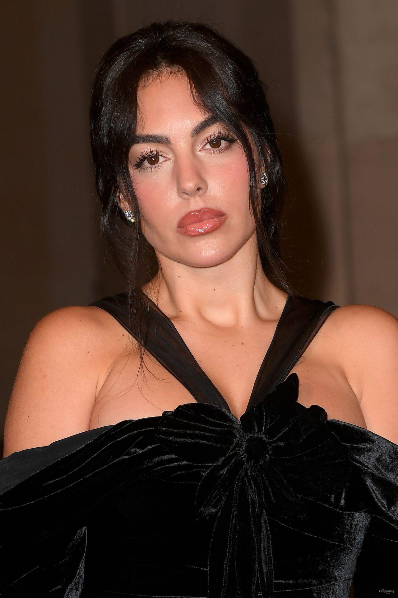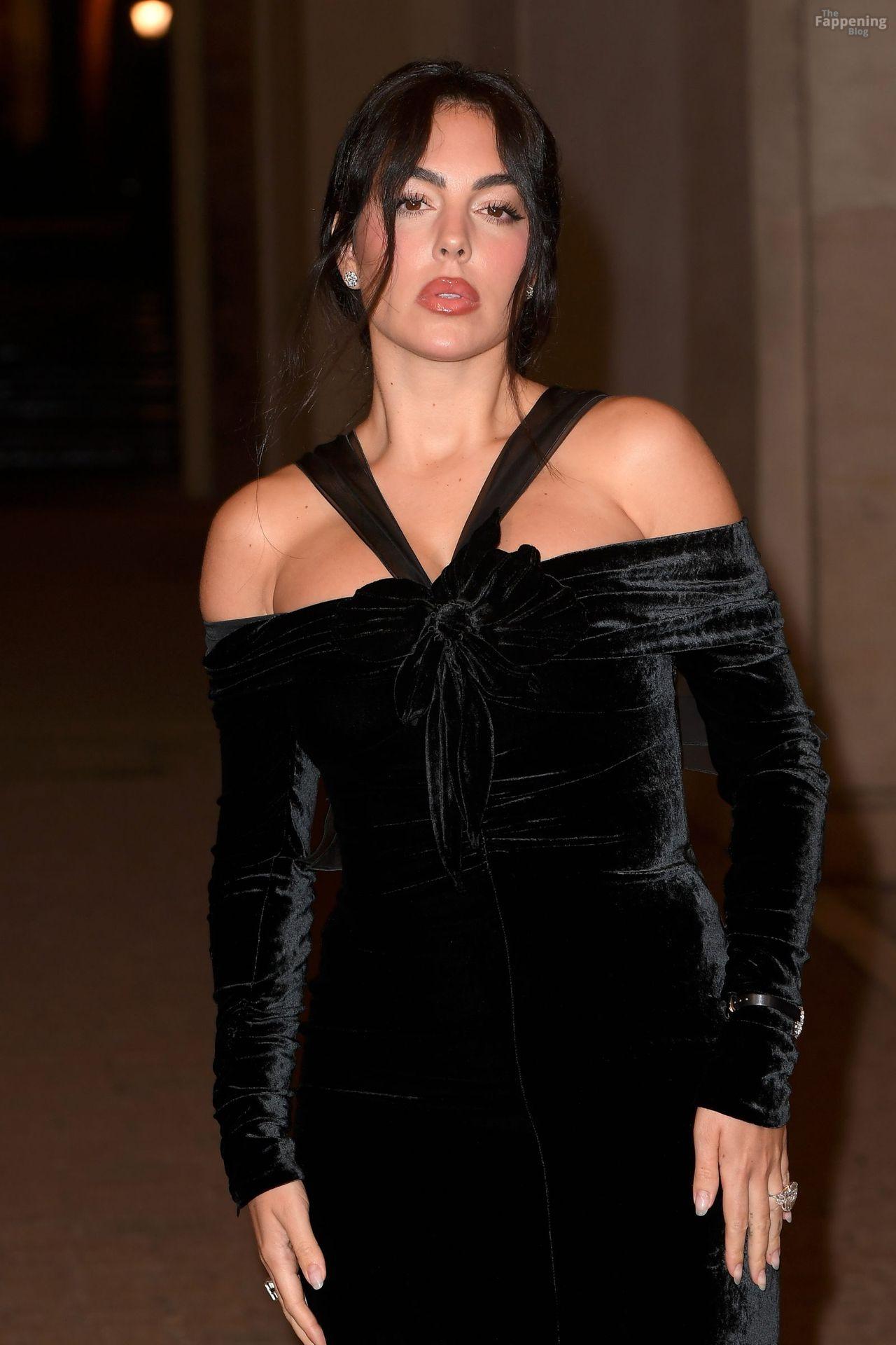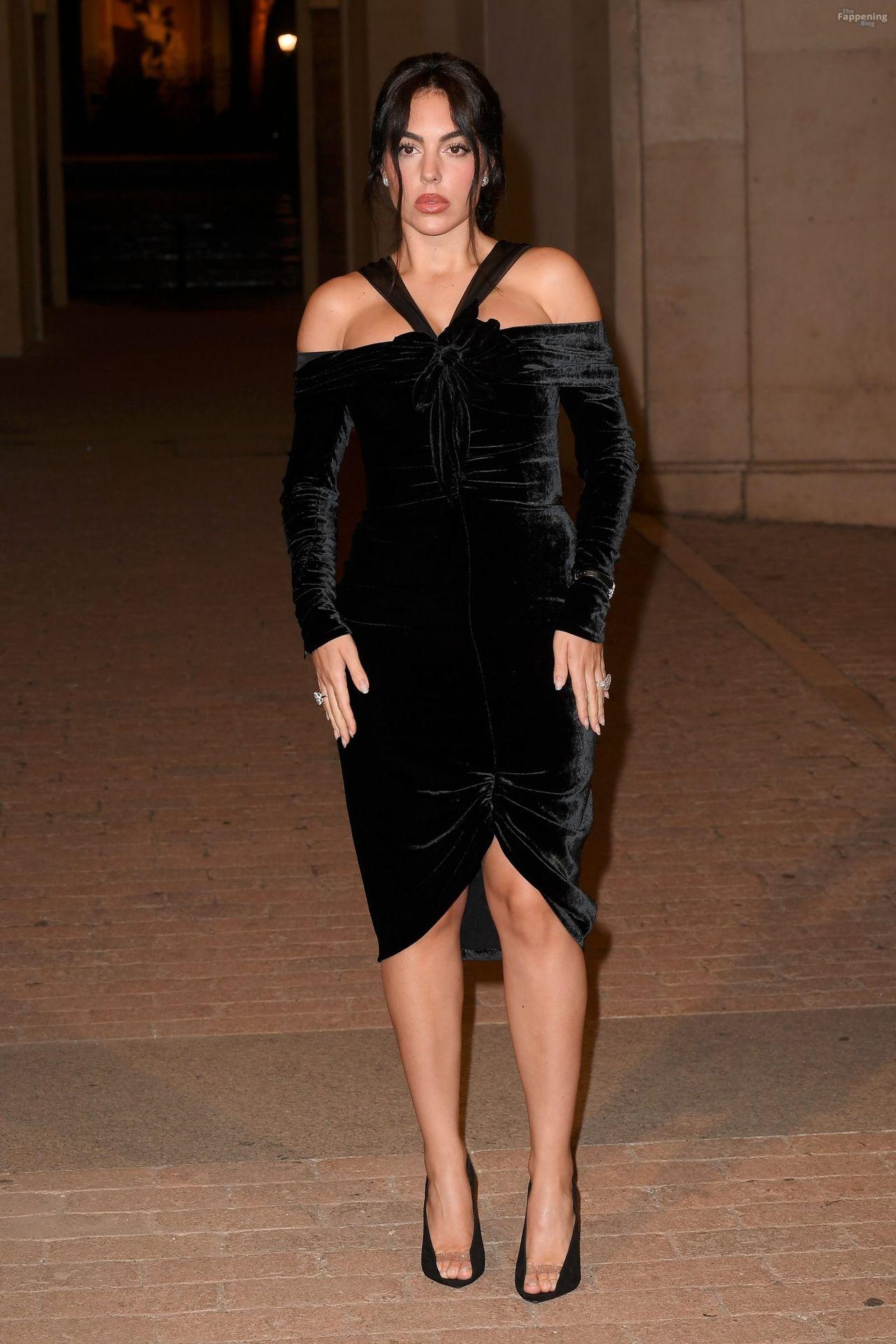 Spanish model Georgina Rodriguez shows off her sexy figure wearing a velvet dress at the Valentino show.