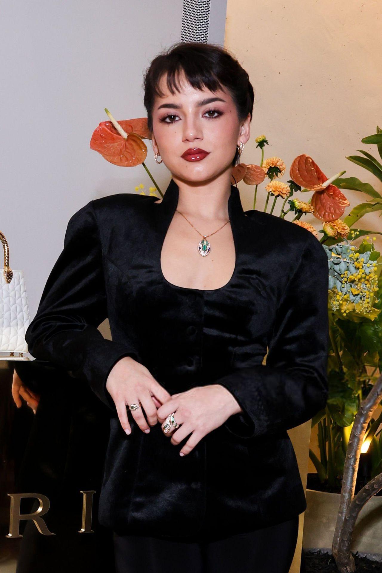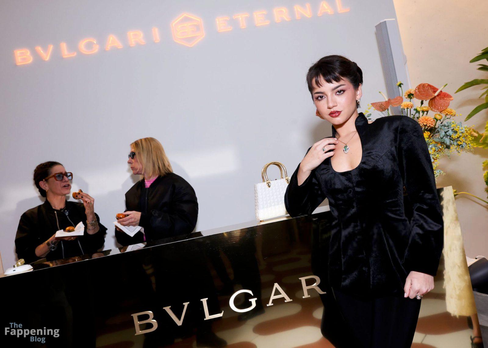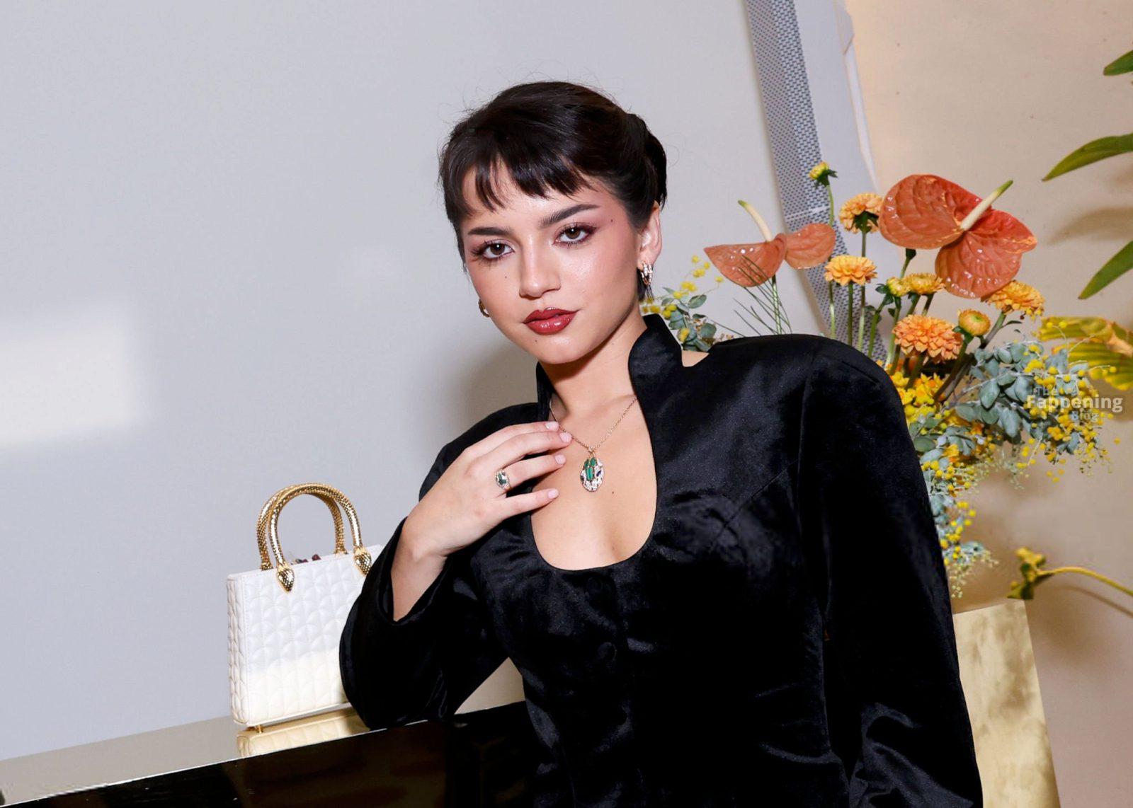 American actress Isabela Merced looks sexy, wearin’ a tight velvet outfit at the Bulgari Rooftop Party in LA.