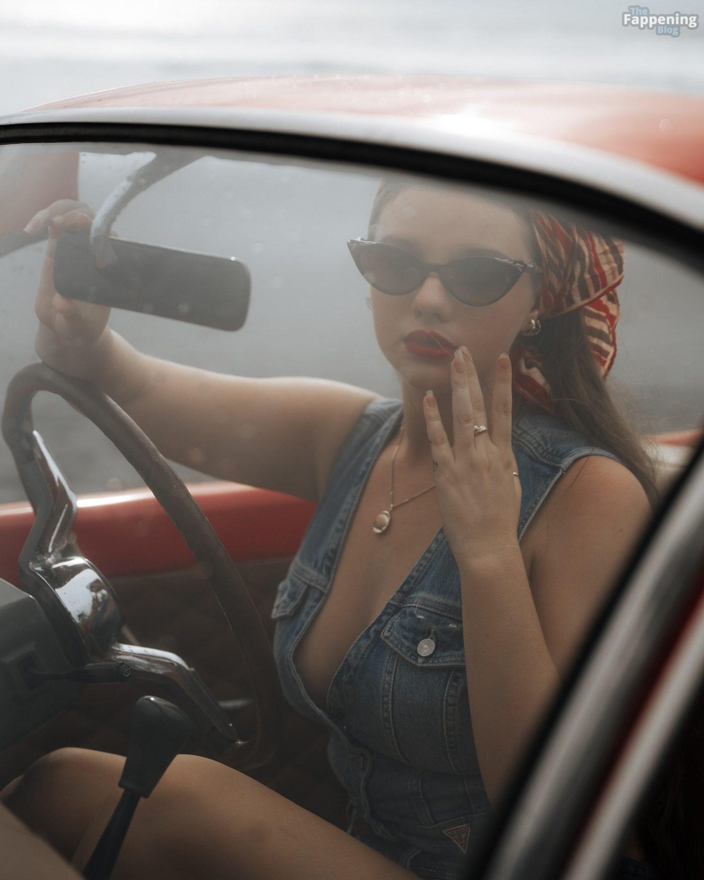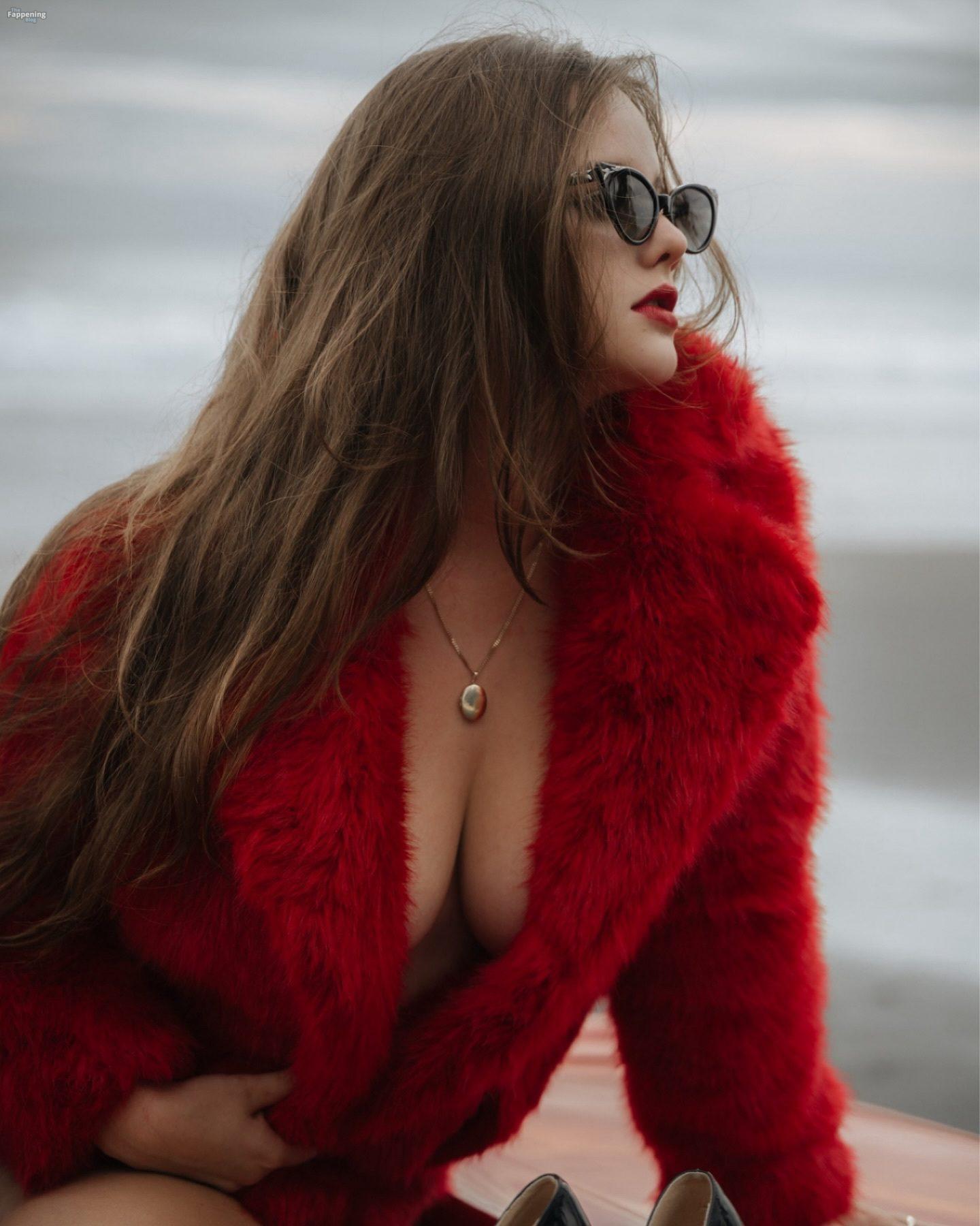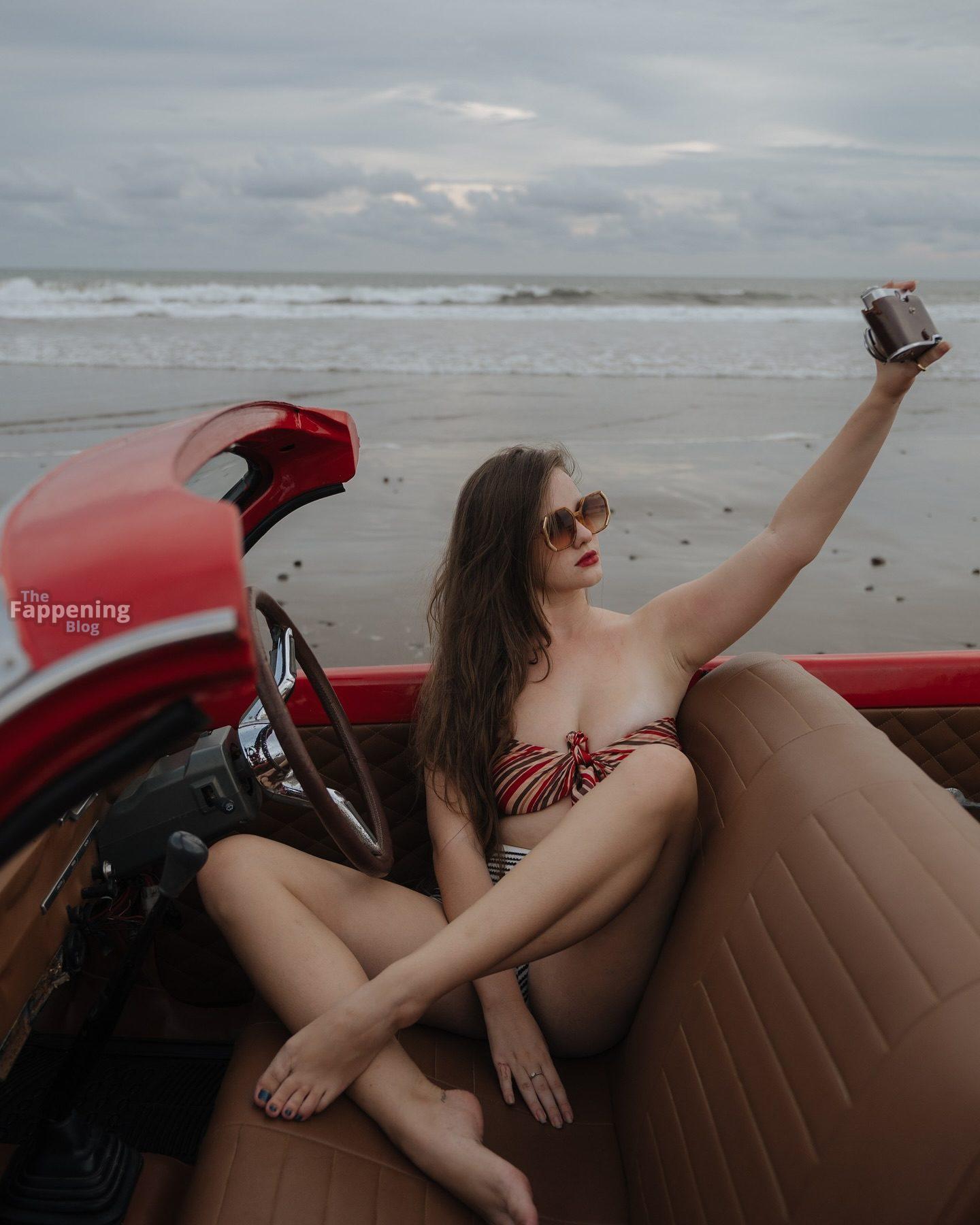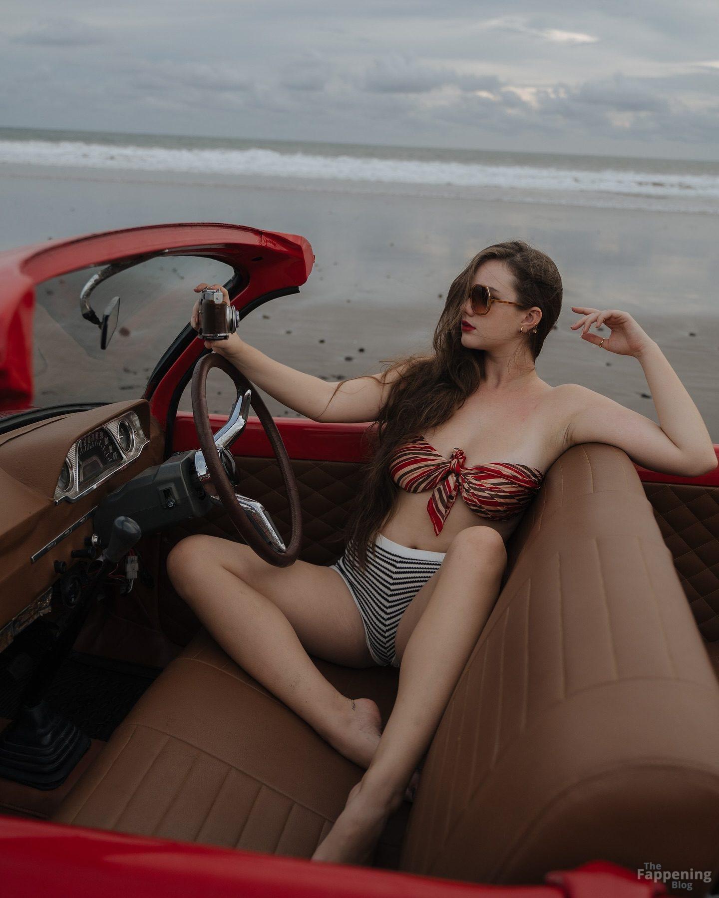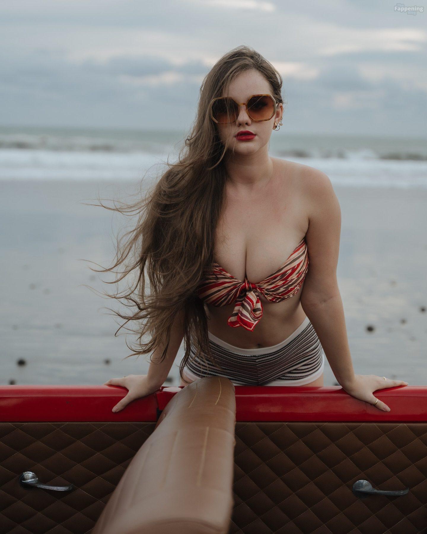 Instagram Star Isabella Ardley displays her goods in the beach pin-up shoot.