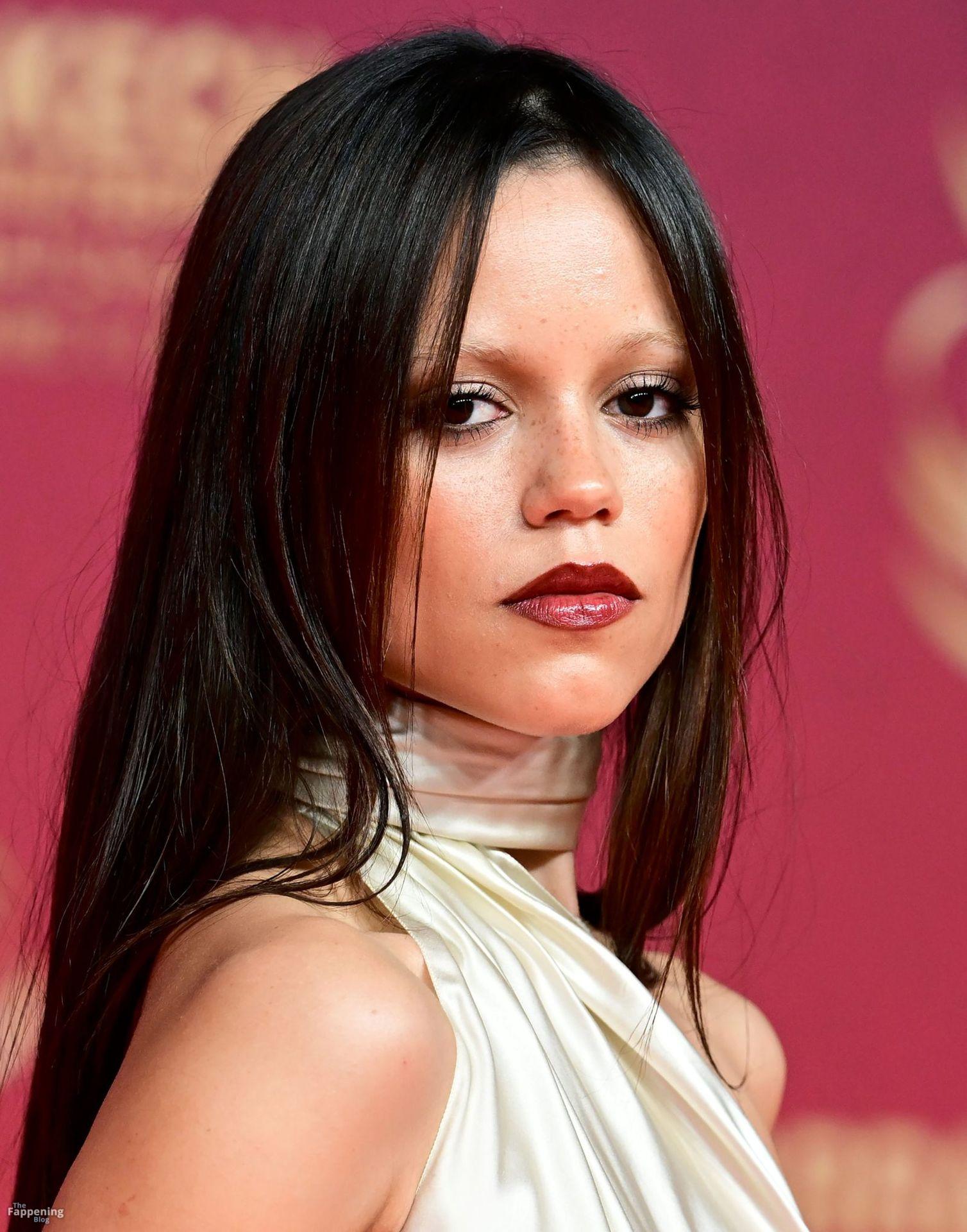 Actress Jenna Ortega was pictured at the Marrakech Film Festival. She posed in a silk gown with no bra.