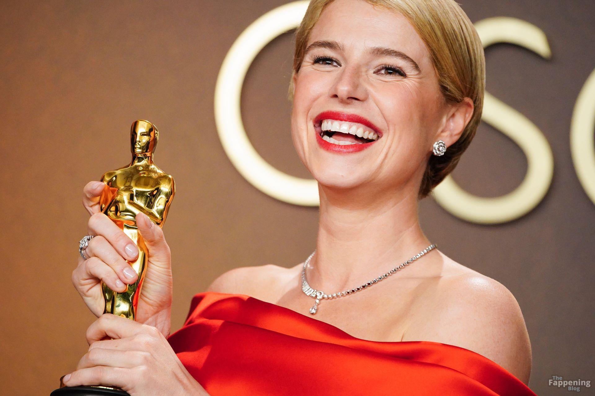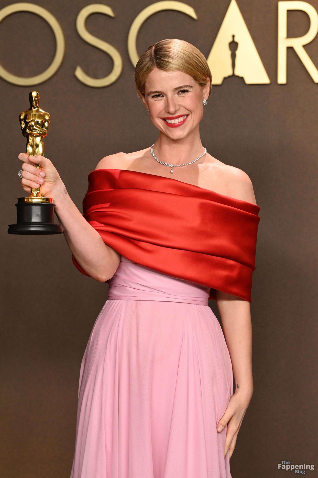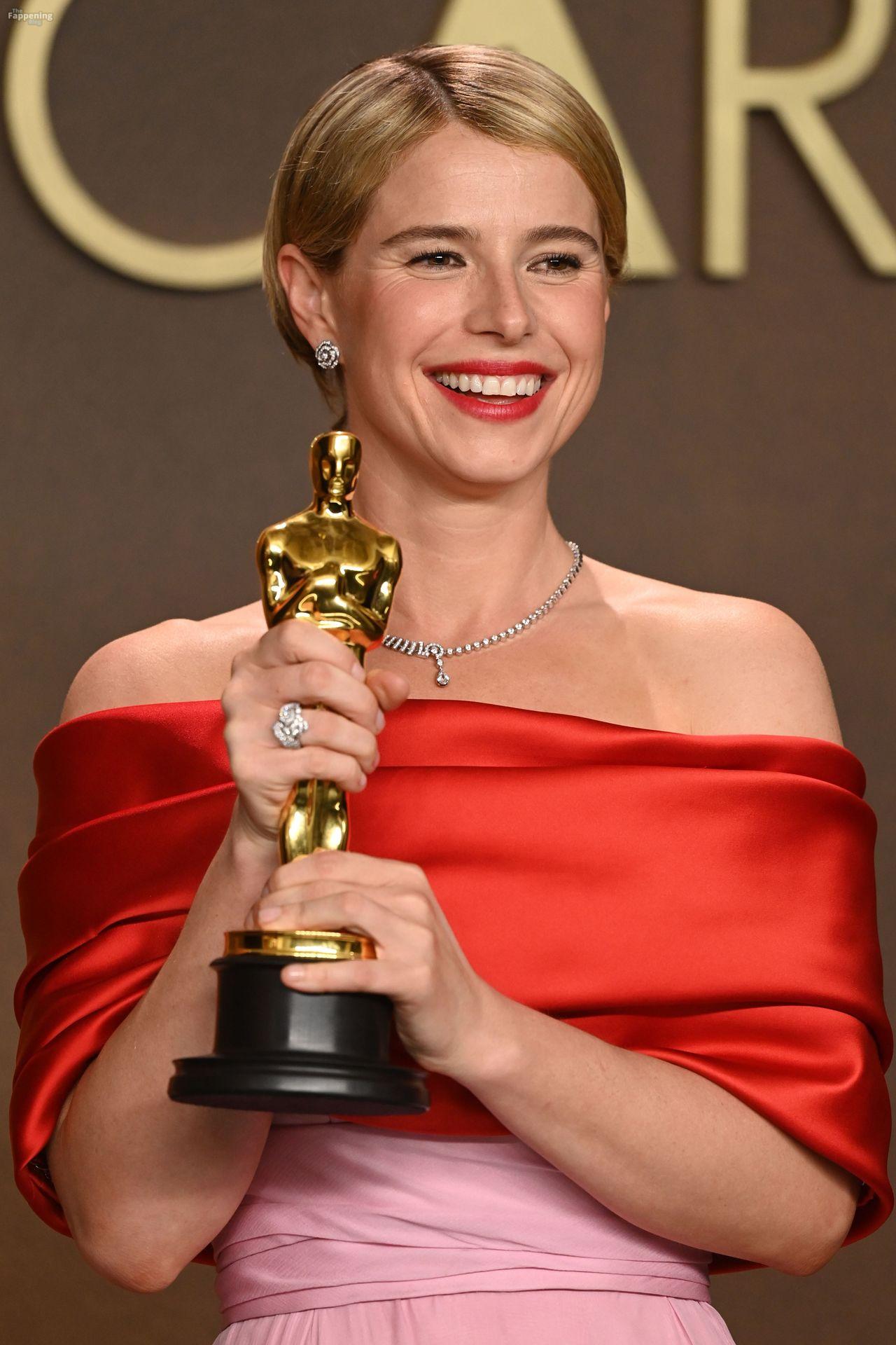 Irish beauty Jessie Buckley, the winner of the Best Actress Award for “Hamnet”, poses in during the 98th Oscars at Dolby Theatre in Hollywood, California.