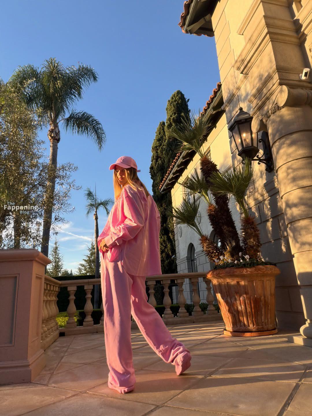 The Fappening Star Joy Corrigan poses braless in a tiny pink crop top and pants. Check out her pokies and toned abs in this social media shoot.