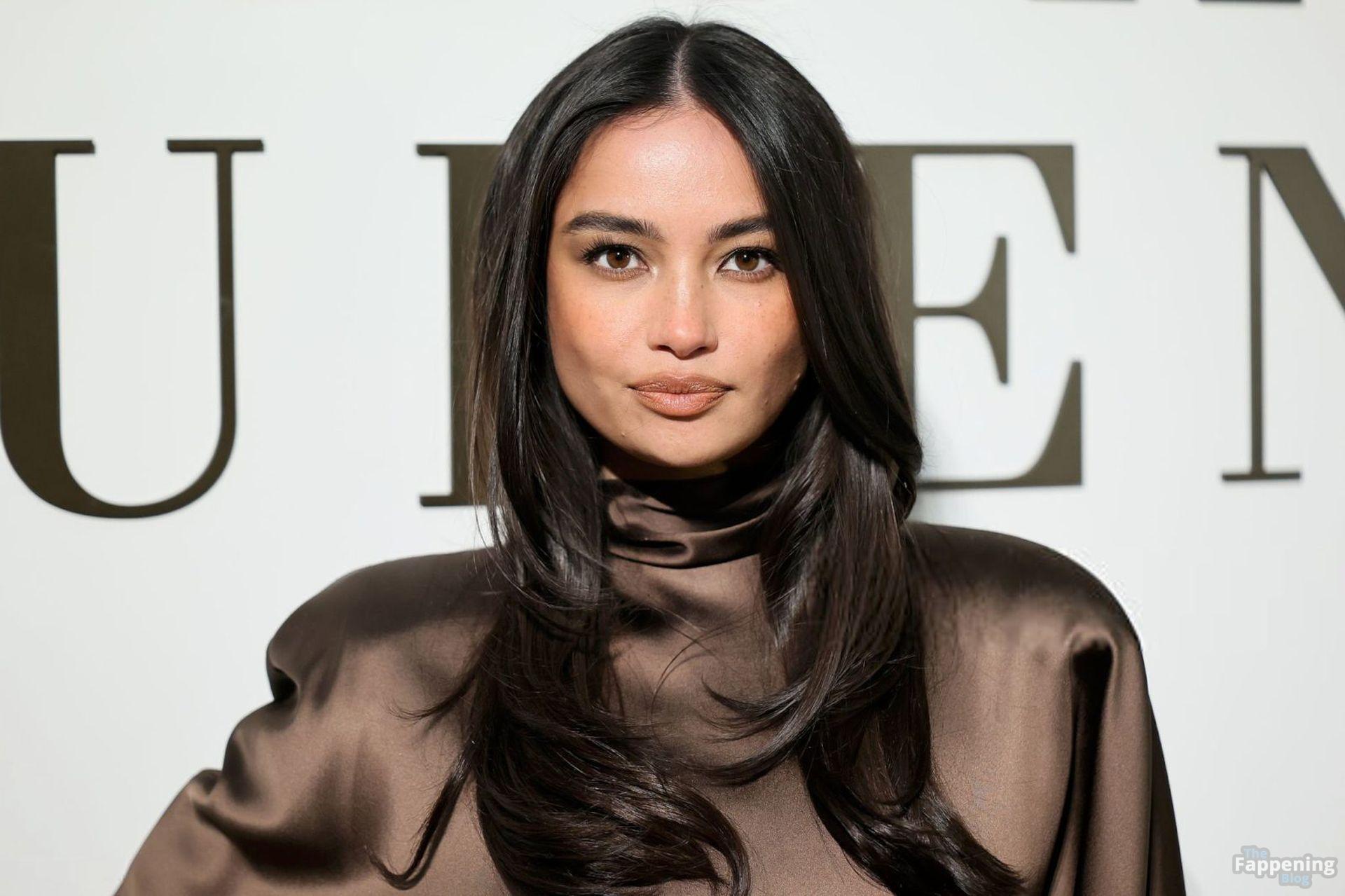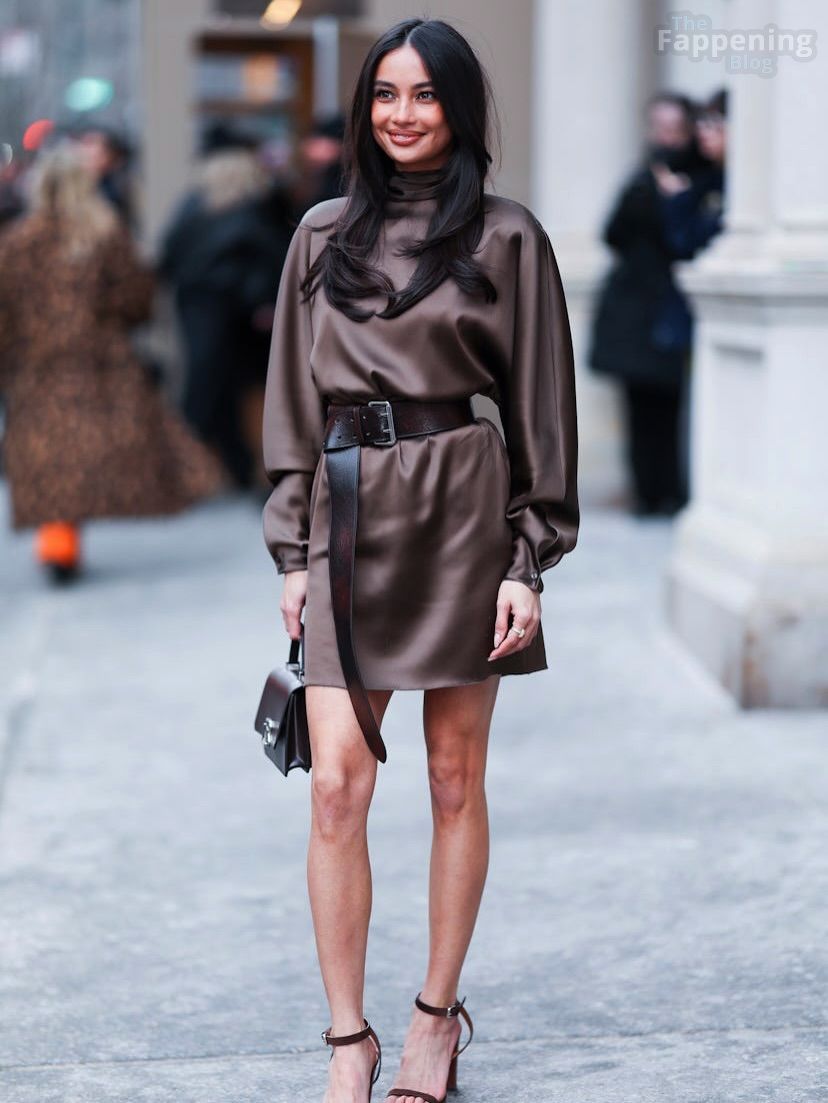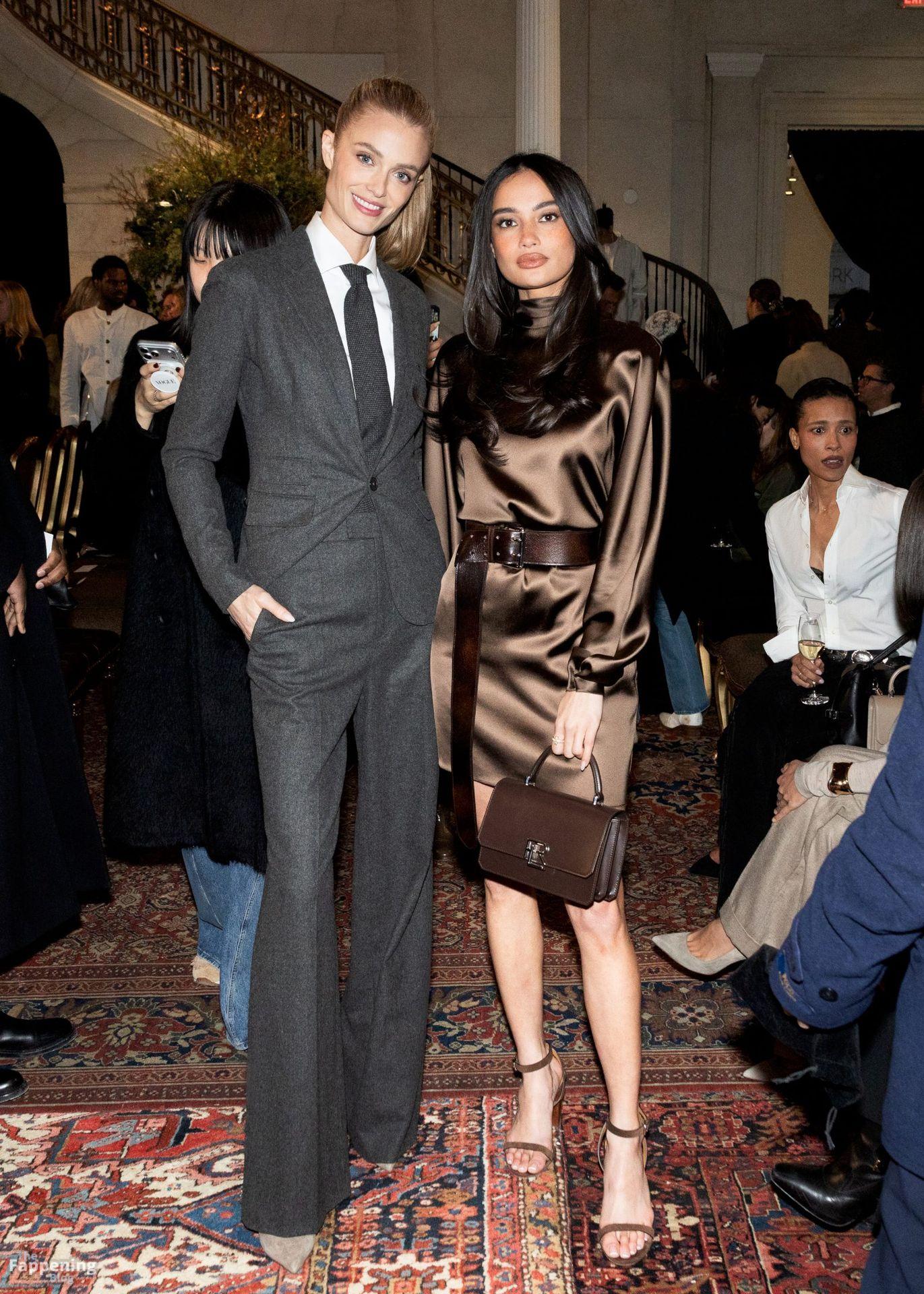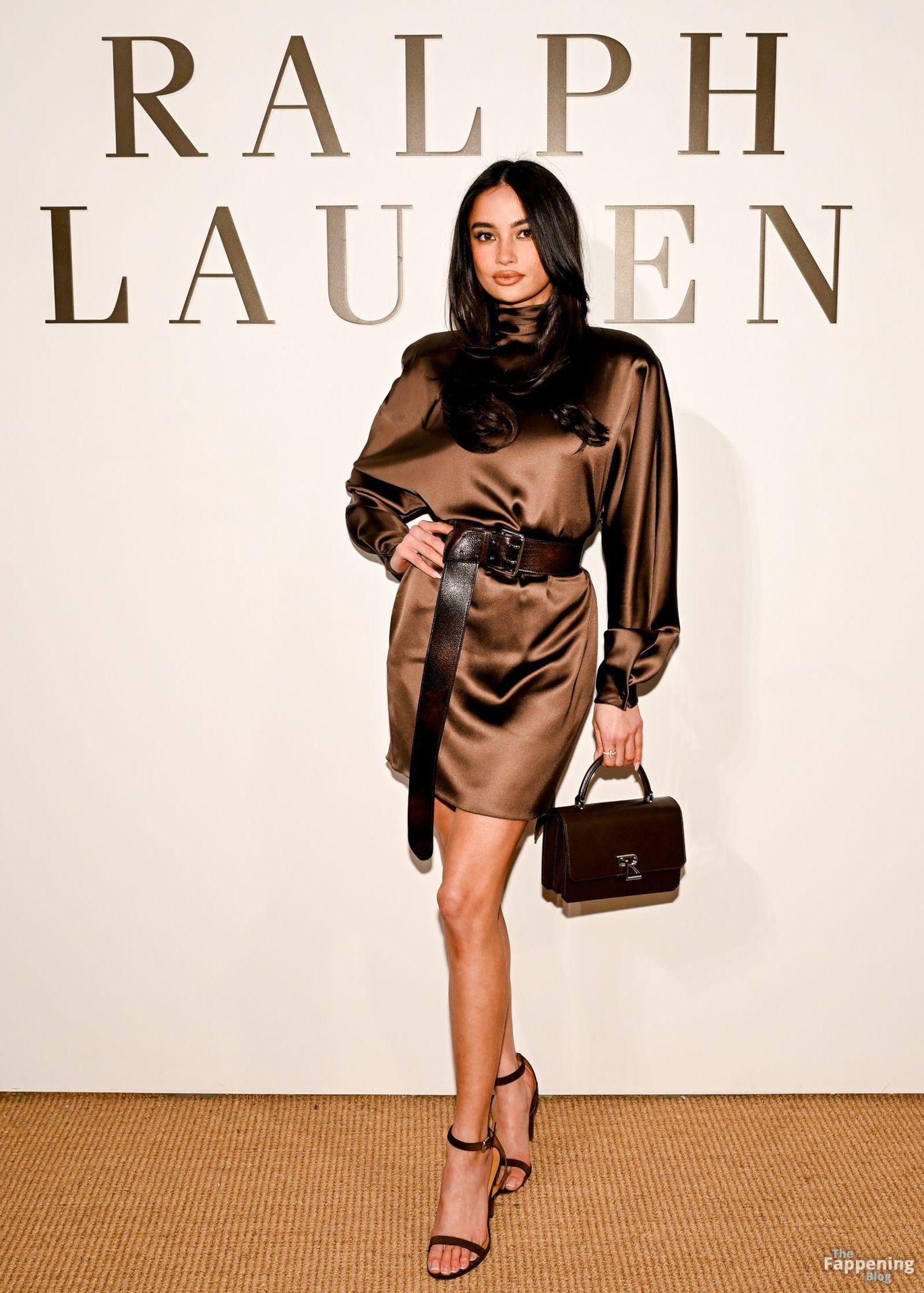 Filipino model Kelsey Merritt is pictured in a satin brown dress at the Ralph Lauren Fashion show in New York.