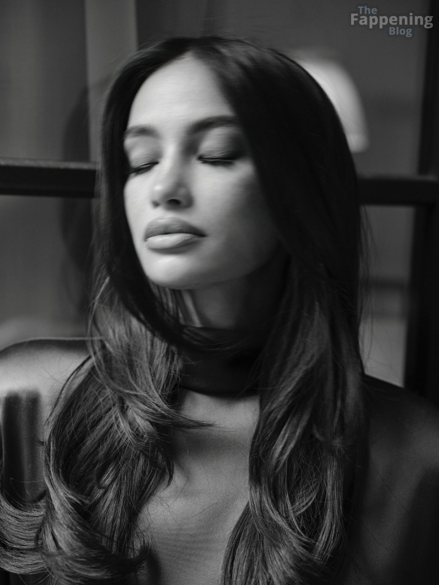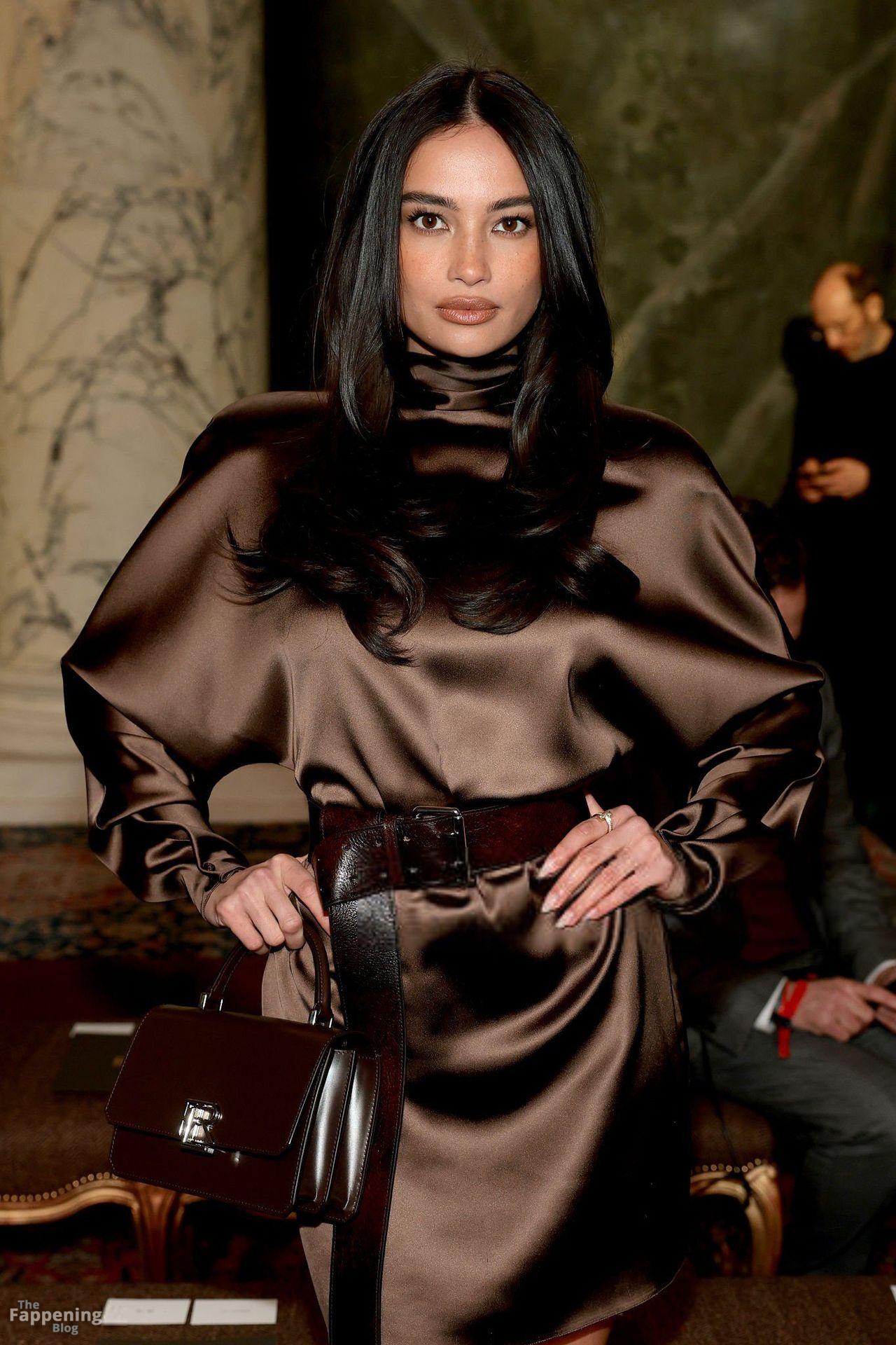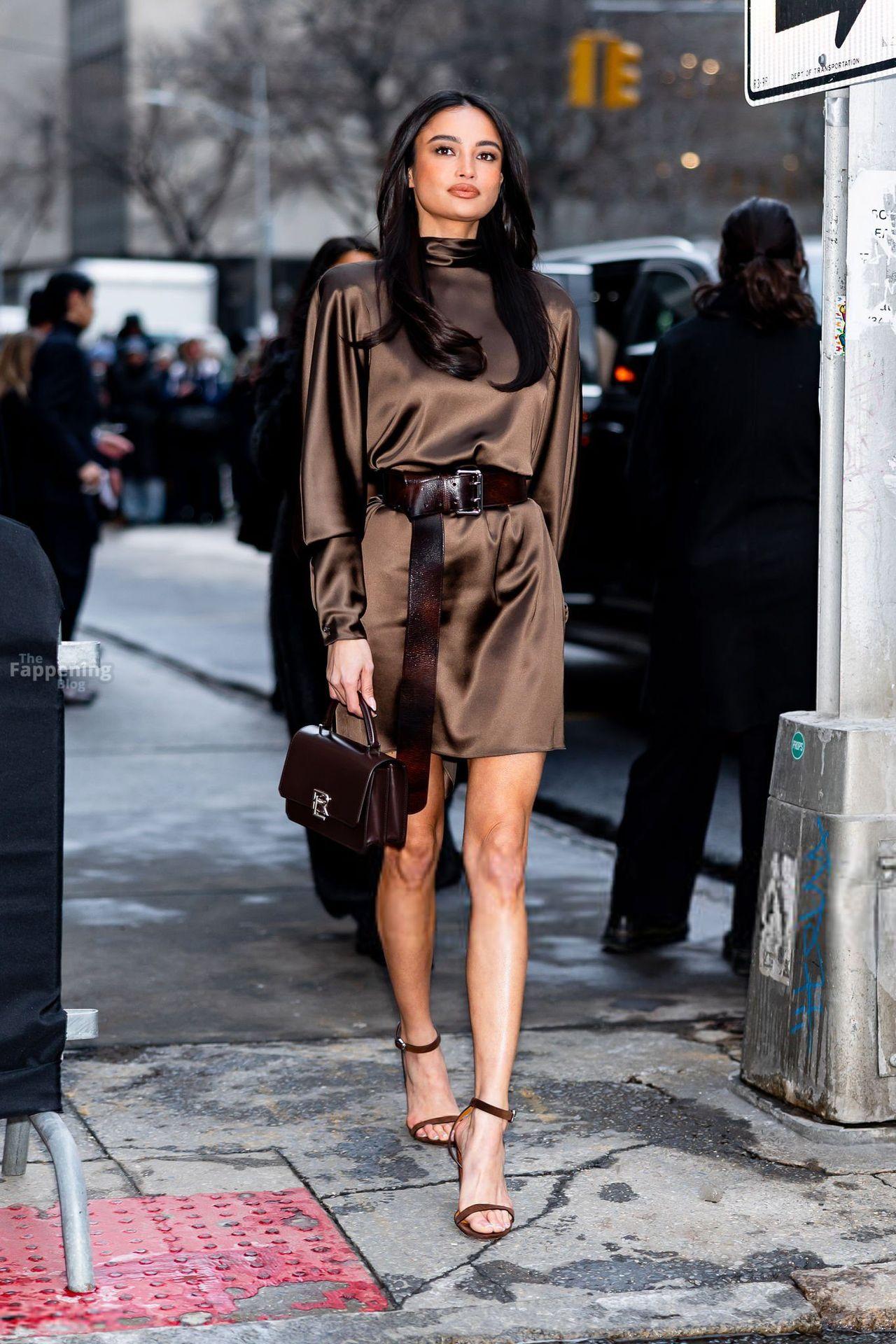 Filipino model Kelsey Merritt is pictured in a satin brown dress at the Ralph Lauren Fashion show in New York.