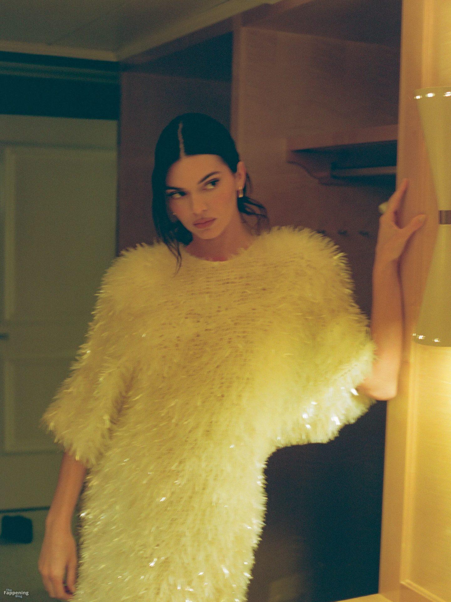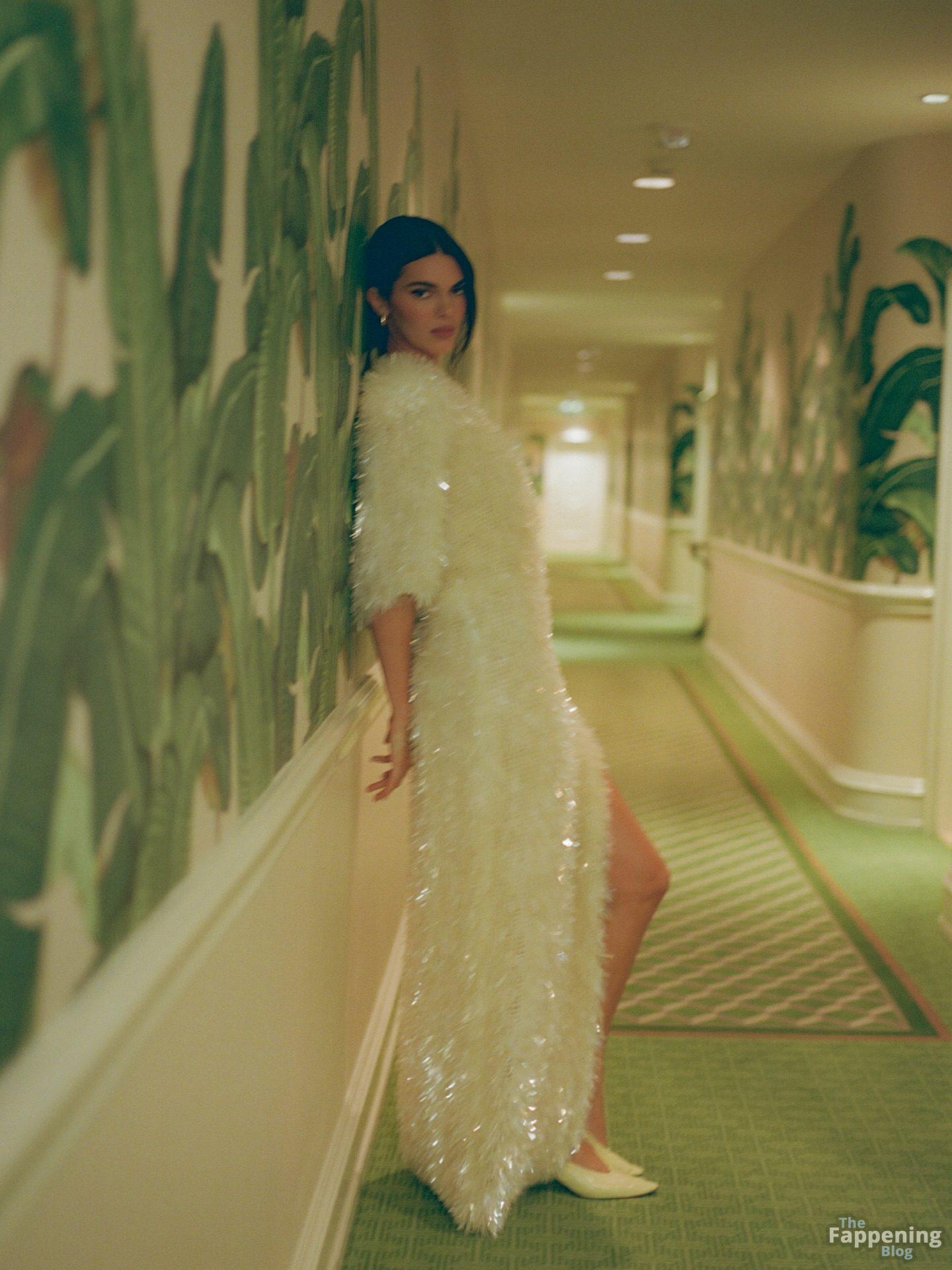Kendall Jenner poses in a luxurious high‑slit gown, showin’ her elegant legs. Adrian Martin’s lens captures her new sexy shoot.