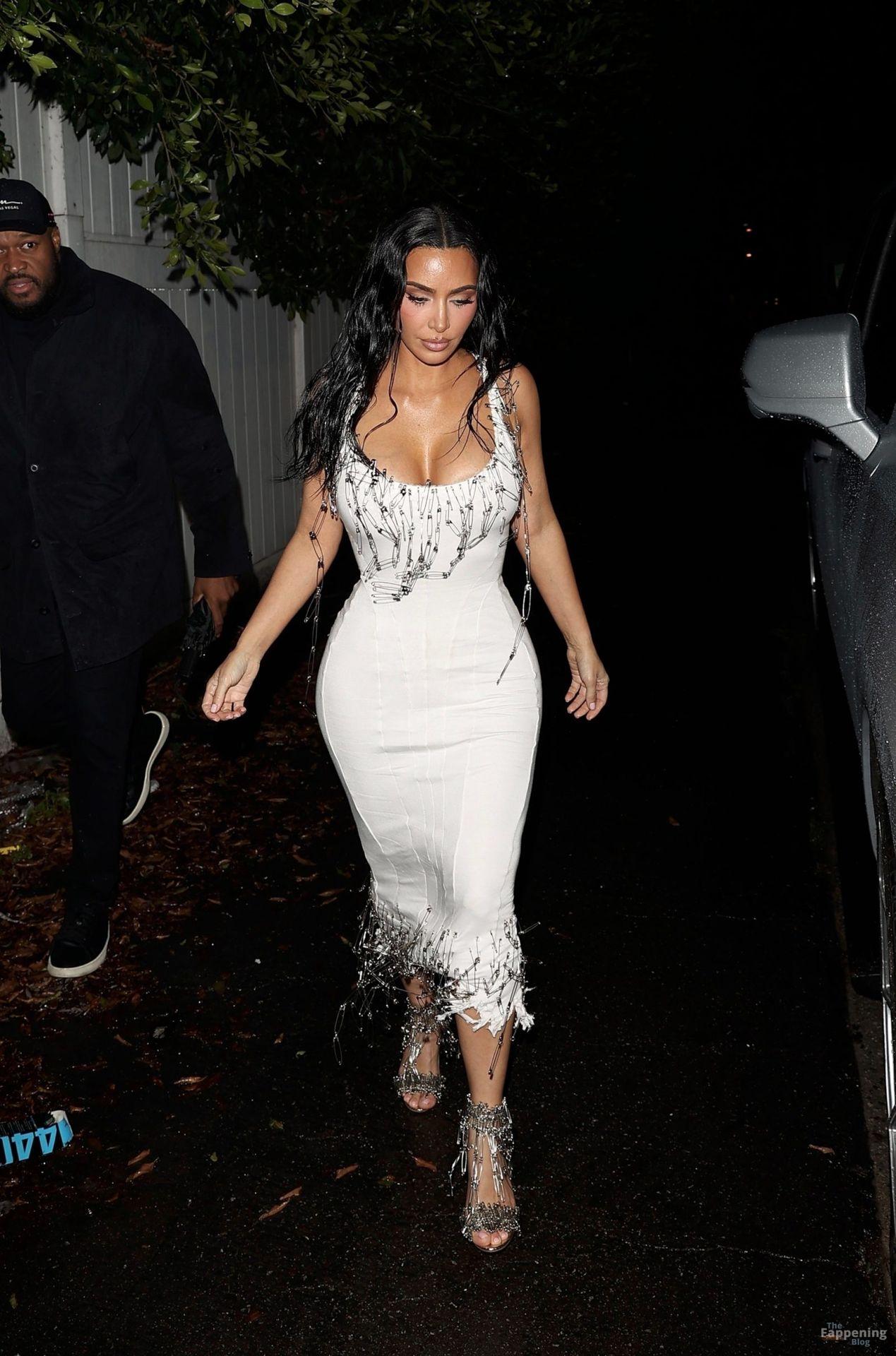 Reality TV star Kim Kardashian was seen in a white dress at Petra Collins’ LA bash.