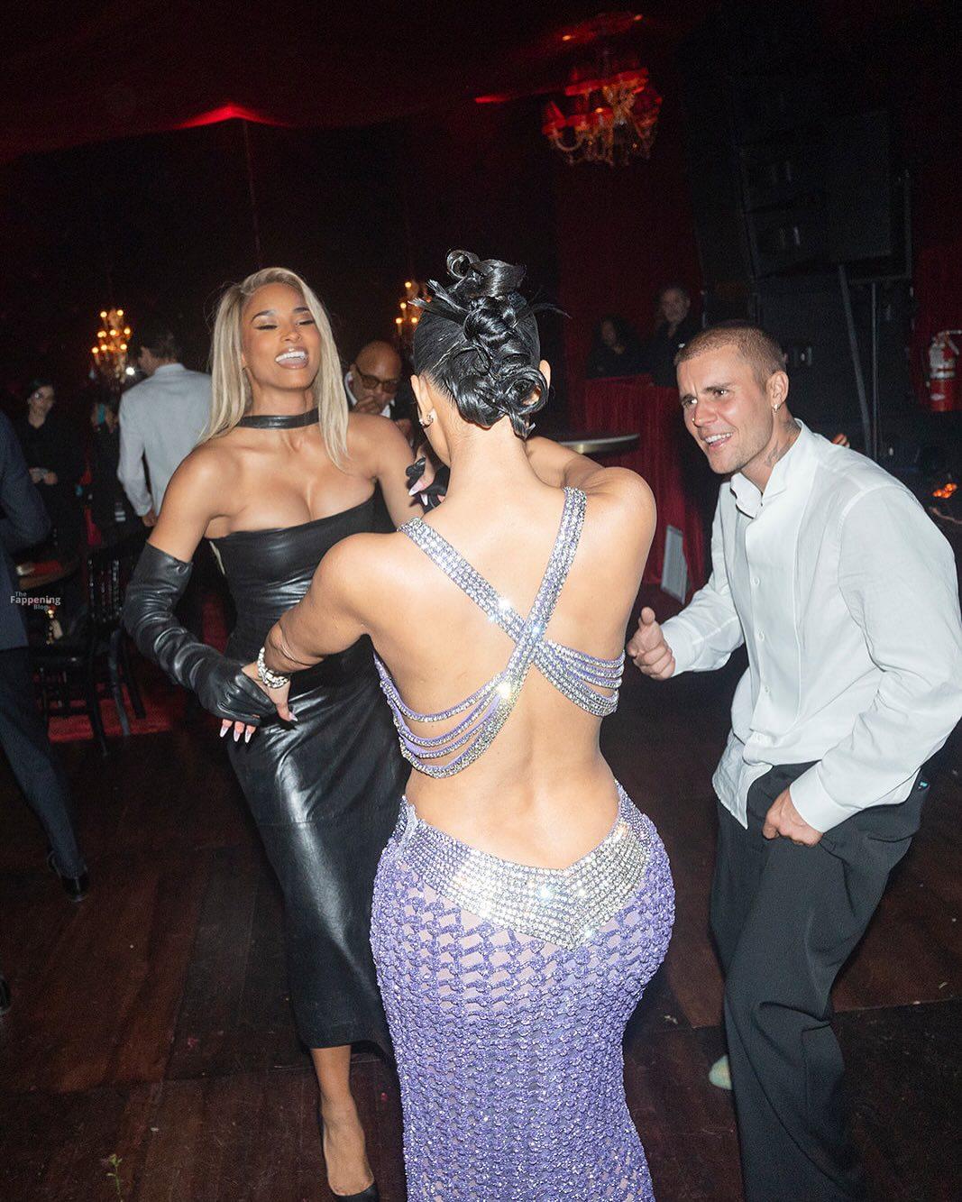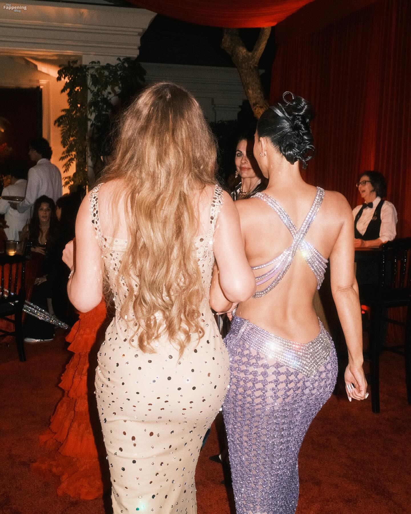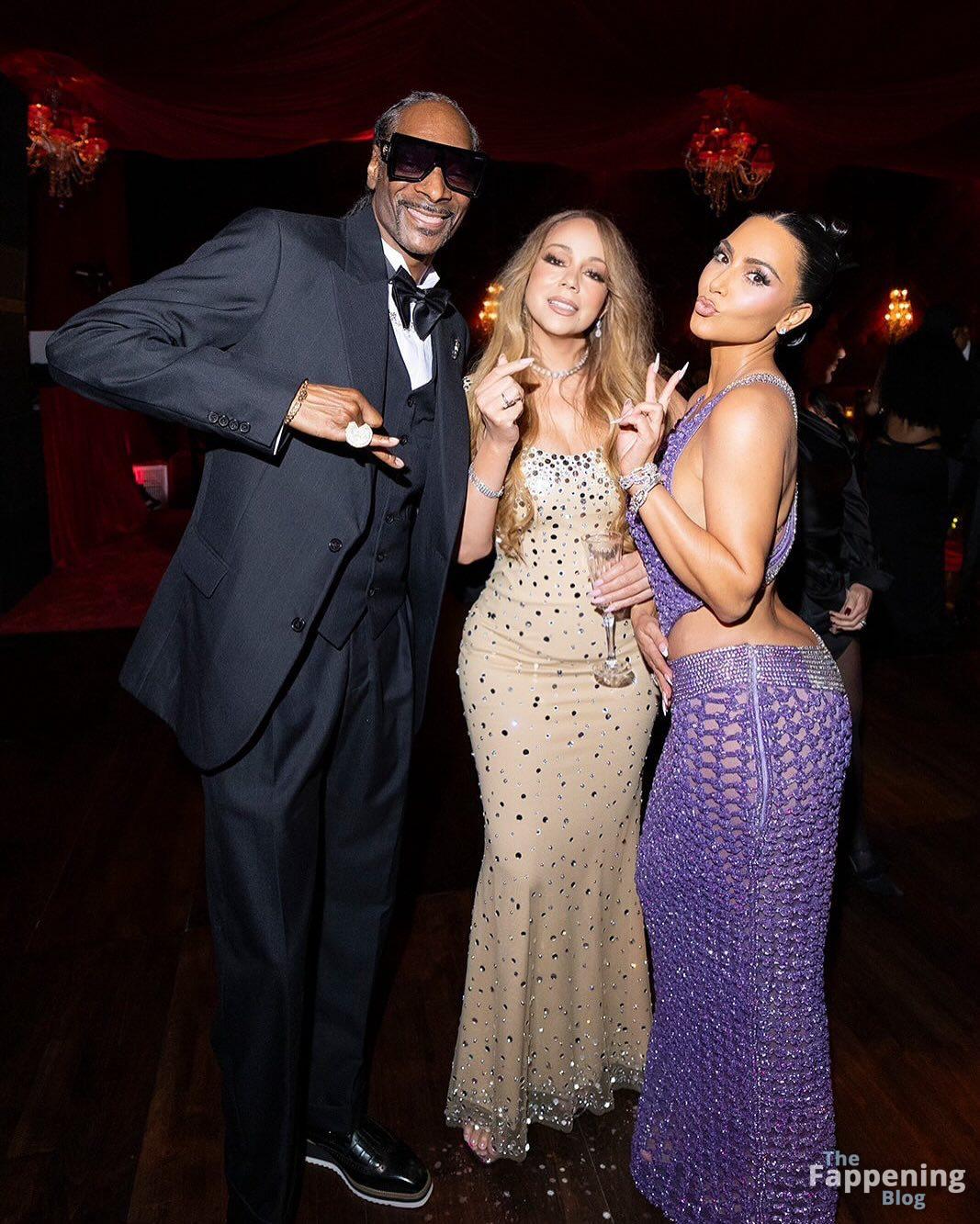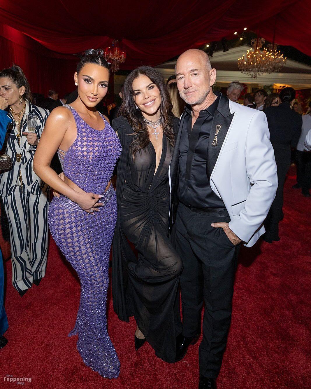 Kim Kardashian rocks a see-through purple mesh dress, showin’ her ass and boobs at a packed celeb party.